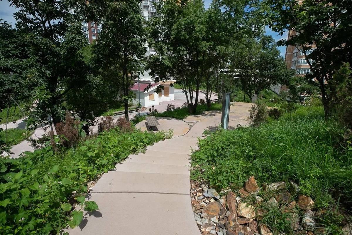 С сопки Орлиное Гнездо открывается красивый вид на бухту Золотой Рог. На нижней площадке сопки провели комплексное благоустройство. Здесь сделали пешеходные дорожки, установили малые архитектурные формы, провели озеленение, установили детскую площадку.