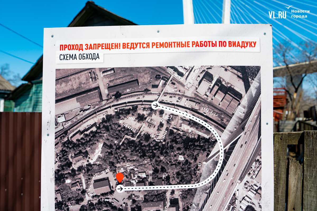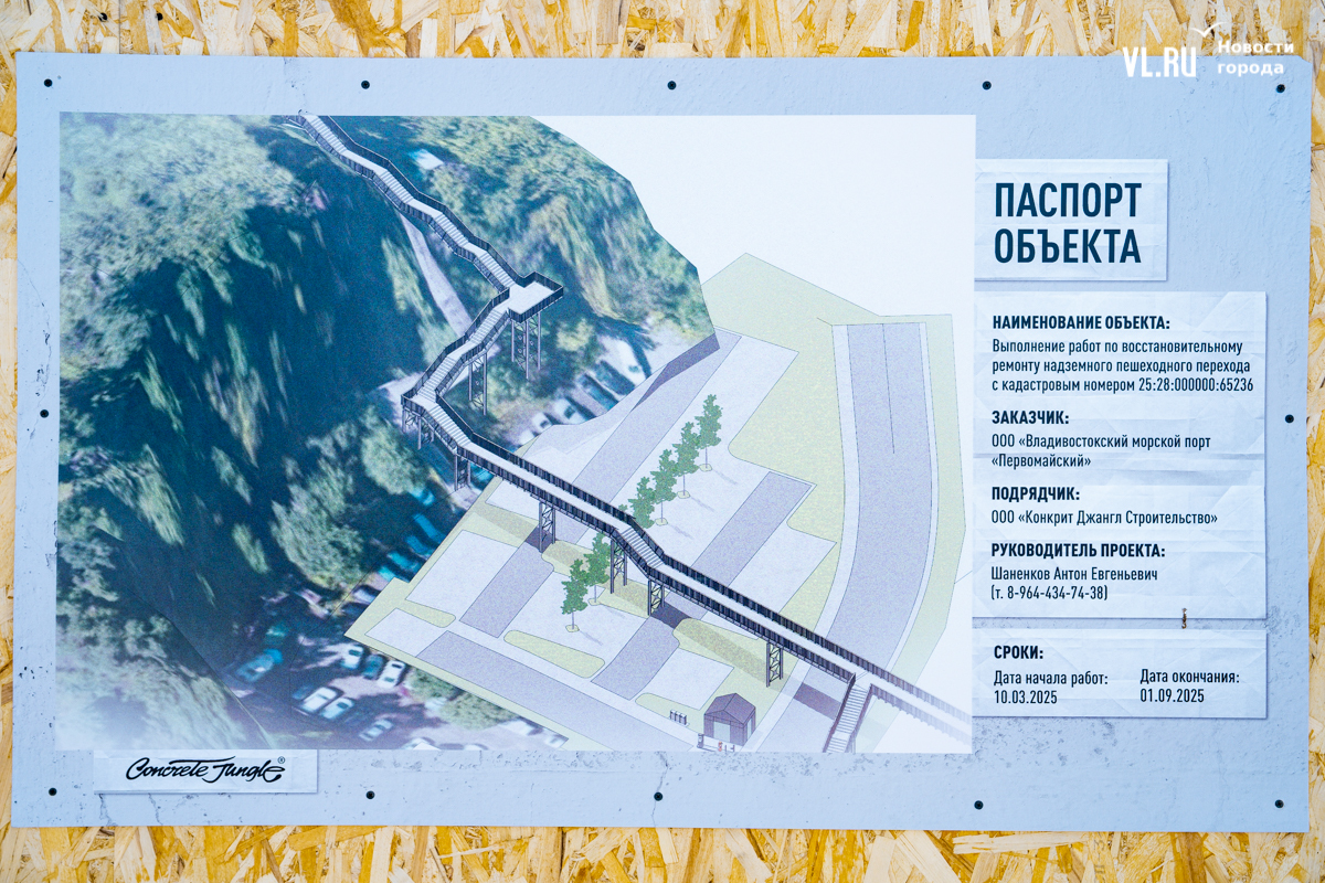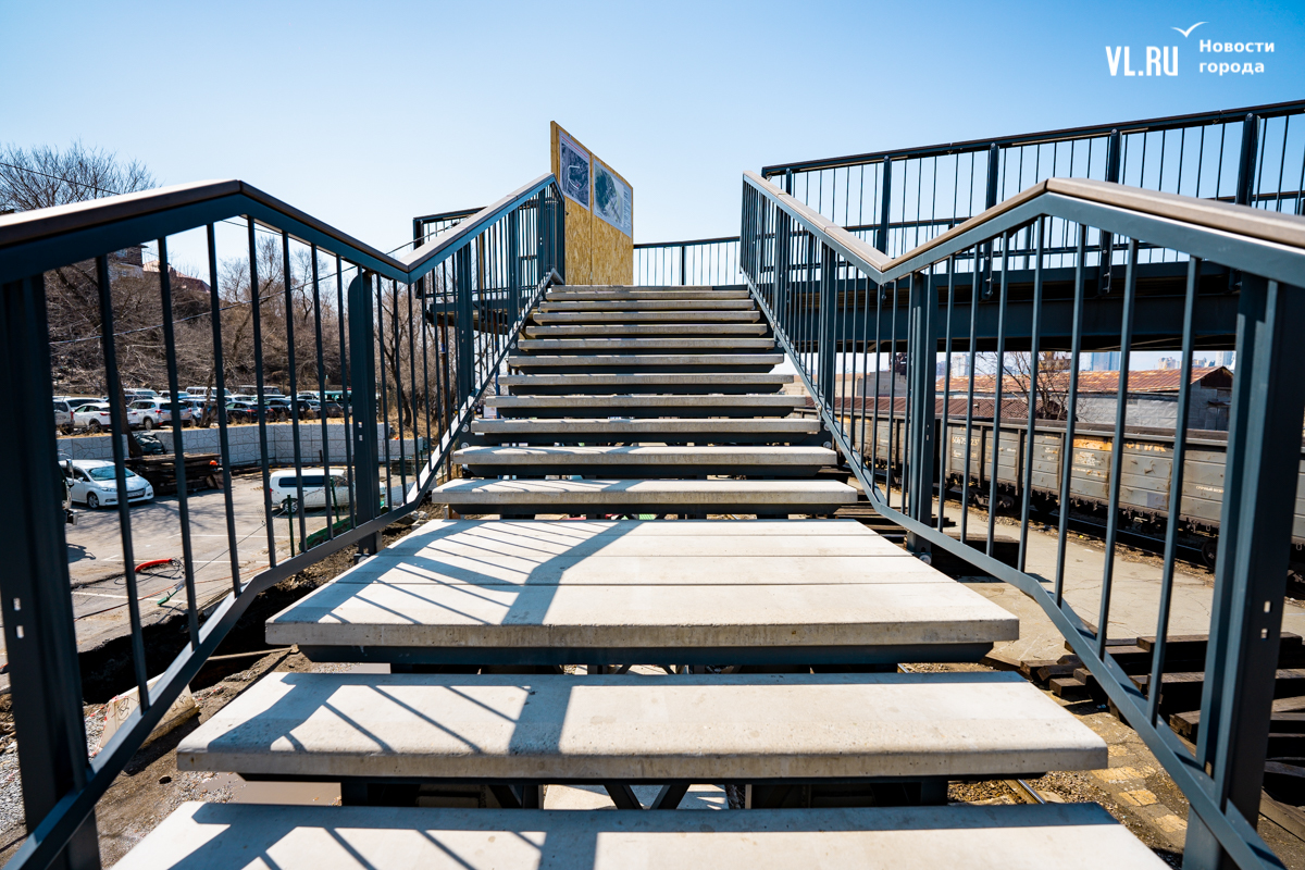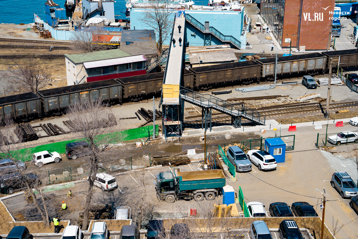 Заказчиком восстановления надземного перехода выступает ООО «Владивостокский морской порт «Первомайский», над которым непосредственно и располагается этот виадук. Завершиться работы должны 1 сентября этого года.