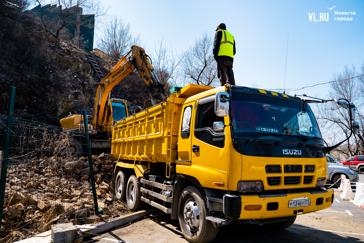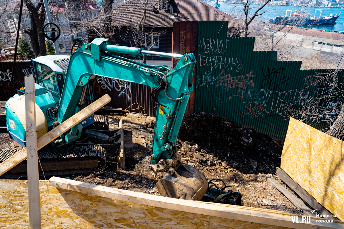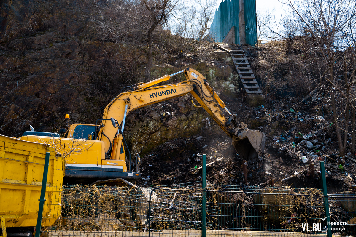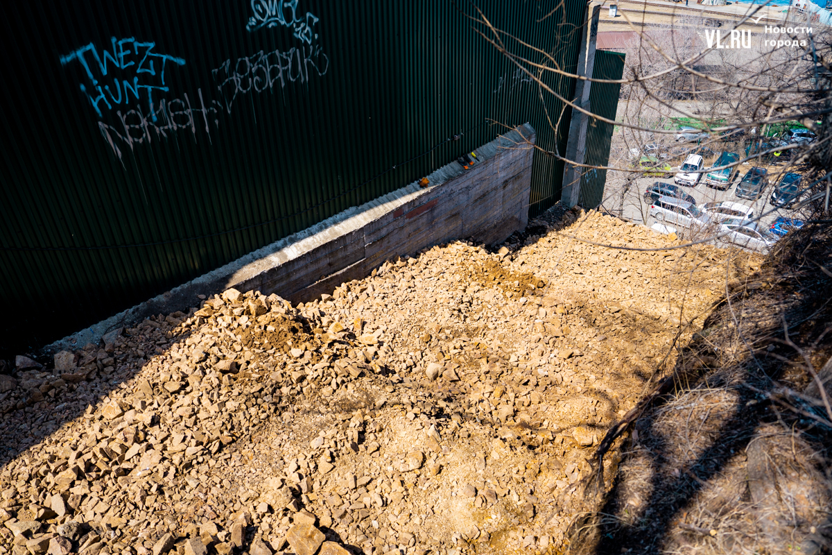 «Вот видите, где две опоры стоят бетонные? – показывает корреспонденту Новостей VL.ru руководитель проекта Антон Шаненков. – Здесь была такая башня из металлоконструкции, из рельса. Было достаточно проблематично её демонтировать. В целом не сказал бы, что ломать сложнее. Наоборот, строить всё-таки сложнее, потому что нужно будет на вот этом вот перепаде, на склоне возводить конструкции».