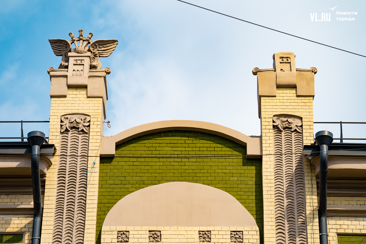 – По реставрации есть несколько очень хороших примеров. Например, отлично отдраили специальными растворами фасады ФТИ – Светланская, 40. Как отлично заиграли эти кирпичики, плитки. Есть пример сохранения здания хотя бы в общем виде. Не то, чтобы это была реставрация, скорее, капитальный ремонт. Светланскую, 111 перед тем, как она должна была уже развалиться окончательно, всё-таки выдернули из забвения. Опять же, Борис Дьяченко к этому руку приложил. Это зелёное здание почти на Дальзаводе, там сейчас ЦБ. Хотелось бы вернуть ему, конечно, некоторые детали на фасад. Например, там была над фронтоном скульптура медведя. Китайцы этот дом так и называли – «Дом с медведем».