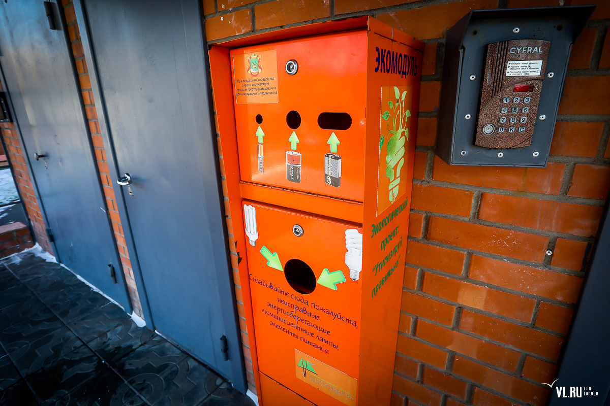 Карты RecycleMap и 2ГИС показывают около 40 адресов, где как будто можно сдать батарейки. Но это всё небольшие частные инициативы либо оранжевые контейнеры экологического проекта «Утилизируй правильно». Большинство из них находится в подъездах или на контейнерных площадках многоквартирных домов, и их содержание оплачивают сами жители, поэтому подкидывать туда свои батарейки как-то не по-христиански. Есть одна точка в здании Управления муниципальной собственности администрации Владивостока – несколько штук туда можно подкинуть без зазрения совести, раз уж его обслуживают на бюджетные деньги. Устанавливает контейнеры компания «Примтехнополис». Такие боксы заказывали, к примеру, DNS, «Технодром», ДВФУ и собственно сама мэрия.