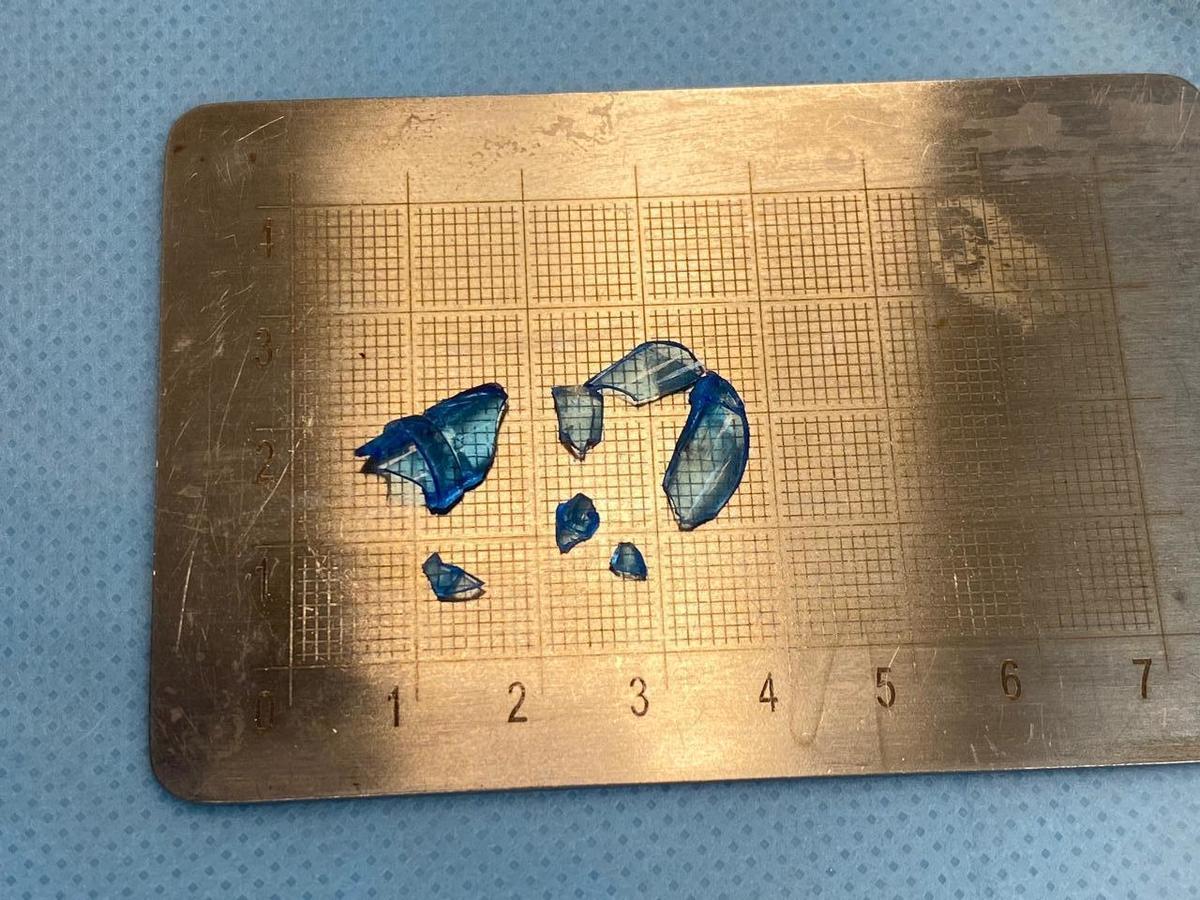 Эндоскопическая операция длилась почти четыре часа. Сначала лор-хирурги провели тщательную ревизию всех пазух носа, обнаружили осколки на противоположной от места ранения стороне и аккуратно достали 7 фрагментов ручки общей длиной 4 см.