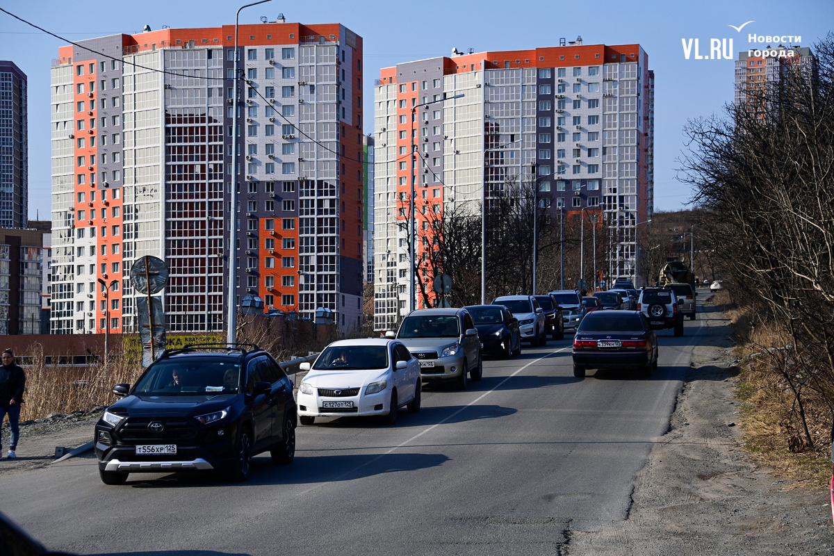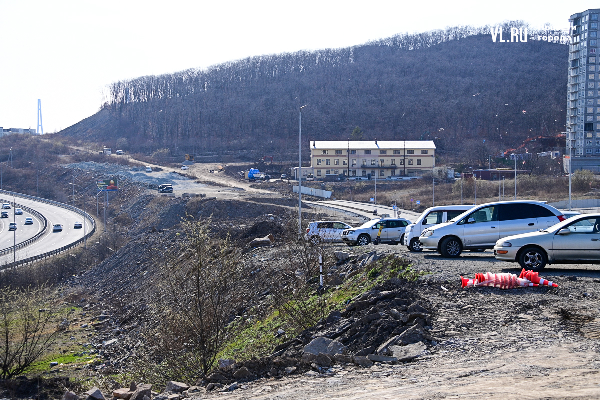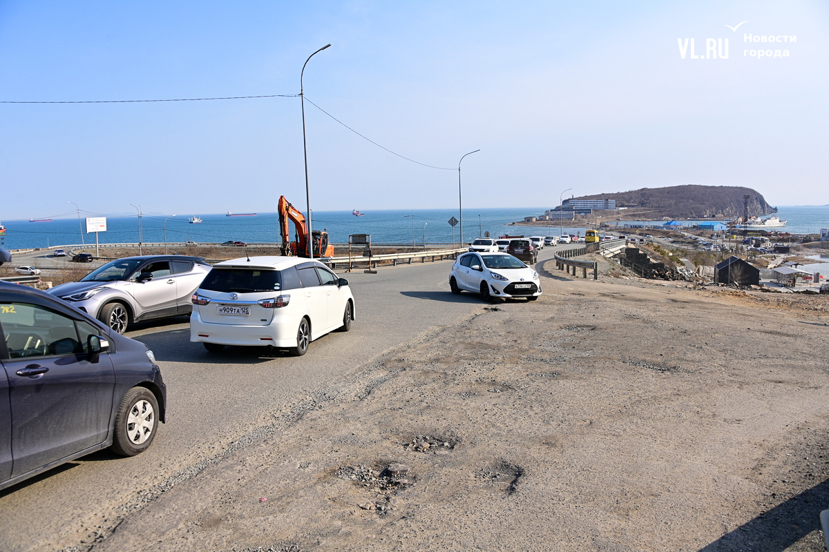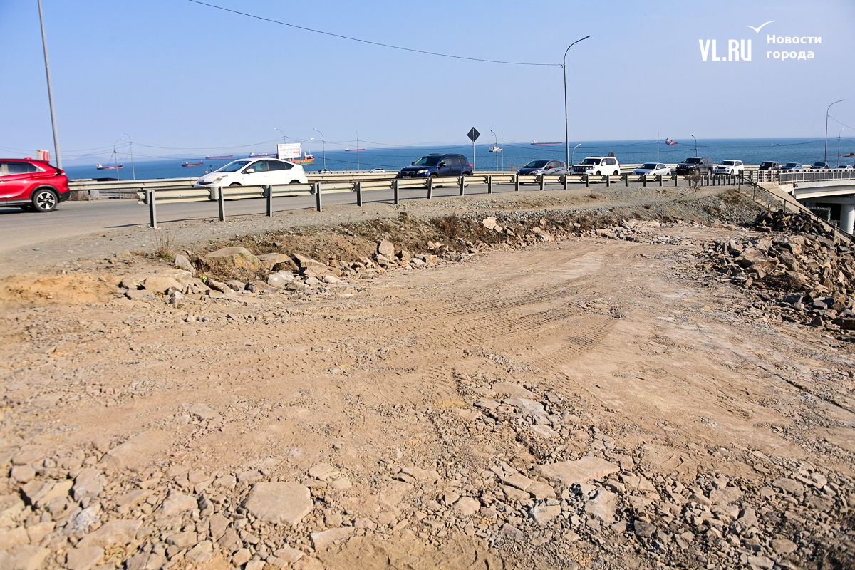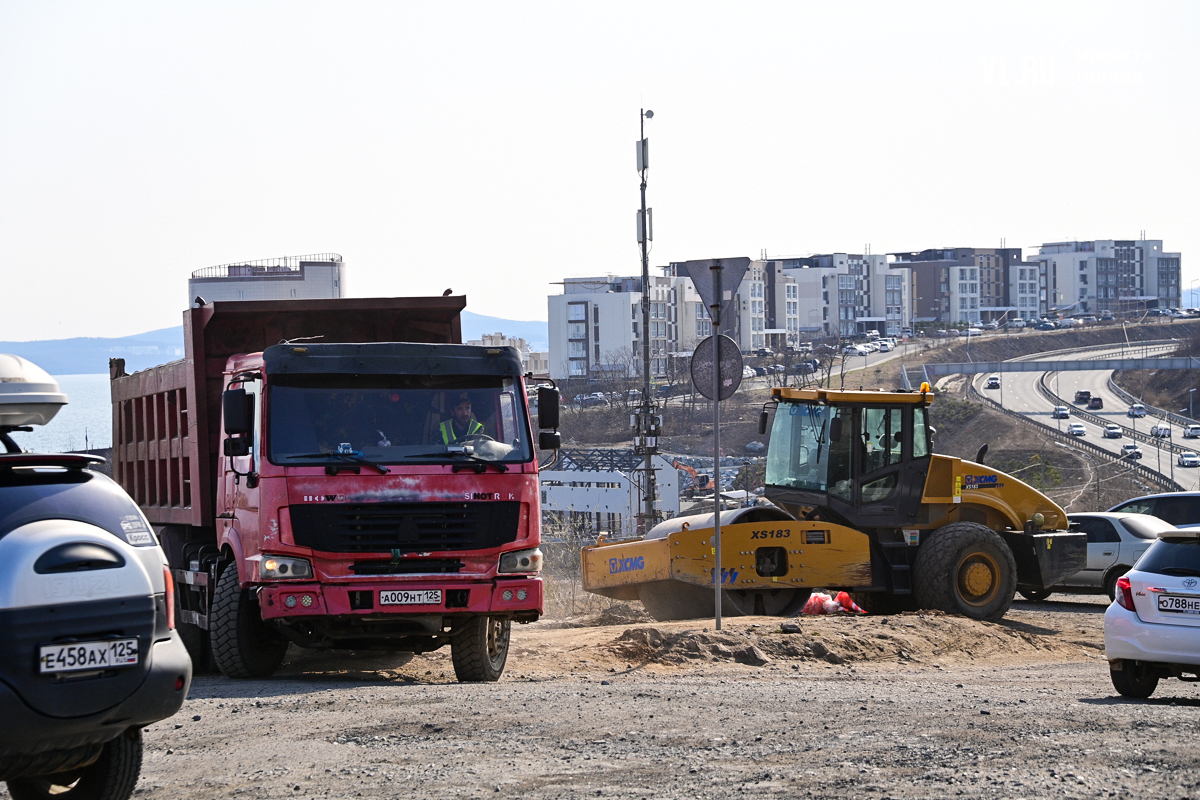 По словам корреспондента Новостей VL.ru, периодически на участок привозят скалу. На время выгрузки приходится ненадолго перекрывать некоторые полосы, и движение почти останавливается. Кроме того, тут находится автобусная остановка, её никуда не переносили – людей приходится высаживать там же, где выгружают скалу.