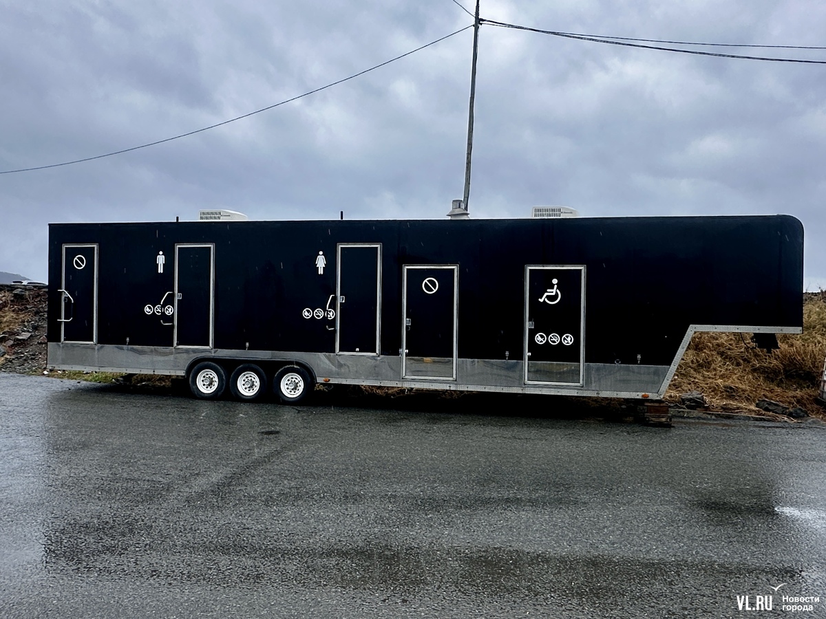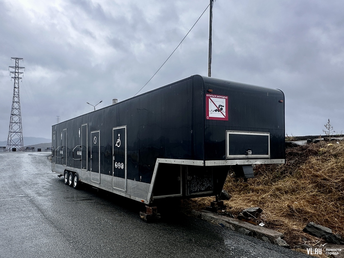 В одном из главных туристических мест Владивостока появился передвижной биотуалет. Санузел представляет собой переоборудованный фургон для большегруза с тремя кабинками: мужской, женской и для маломобильных граждан. Правда, по всей видимости, он пока не работает – к дверям нет никаких лестниц, да и сами они закрыты на ключ. Когда это чудо техники распахнёт двери нуждающимся, в мэрии оперативно сказать не смогли. Пока же рядом стоят привычные синие биокабинки. Но они тоже не работают.