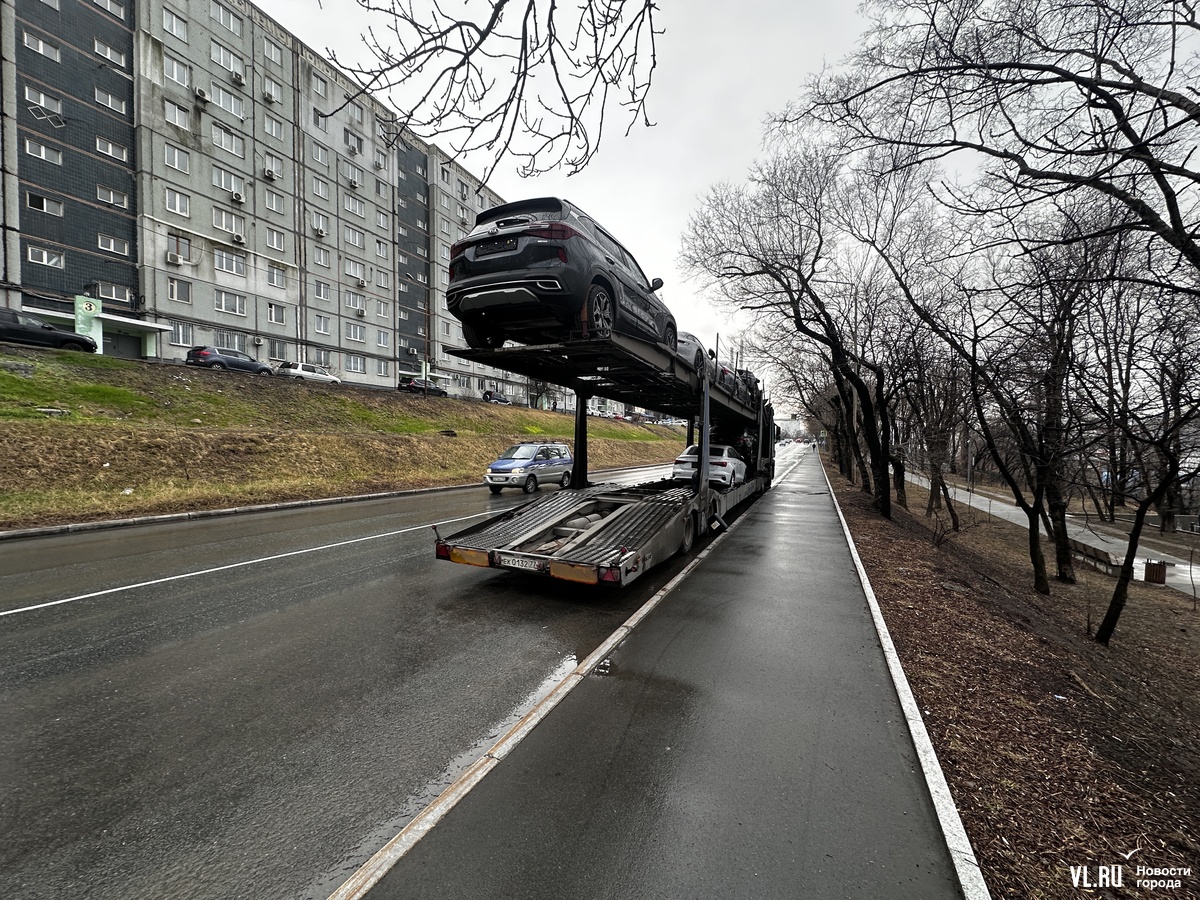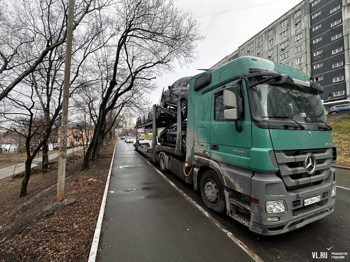 Водители автовозов приезжают в Приморский край, как правило, из других регионов. Дальнобойщик из Рязани, который передвигается на московских номерах, ответил корреспонденту, что понимает: погрузка на автовозы на городских улицах может не нравиться местным жителям, но во Владивостоке нет удобных стоянок или они маленькие. Говорит, планировал встать на стоянке за зоомагазином, напротив заправки. Но места для него не хватило. Поэтому встал около 28-го дома на улице Калинина, а машины на погрузку отгоняет по одной к автовозу.