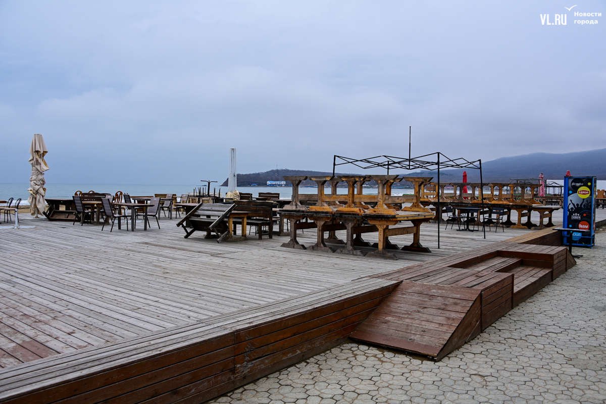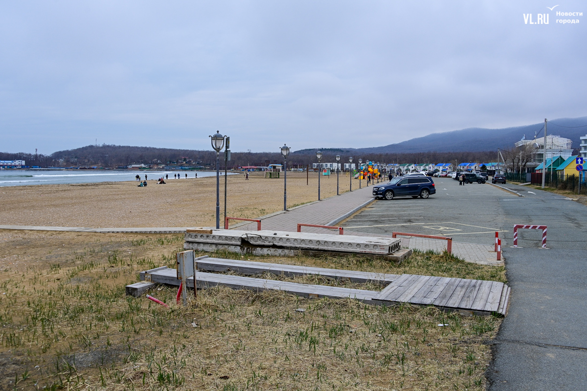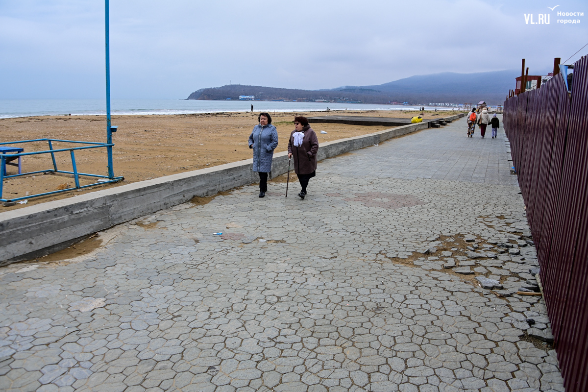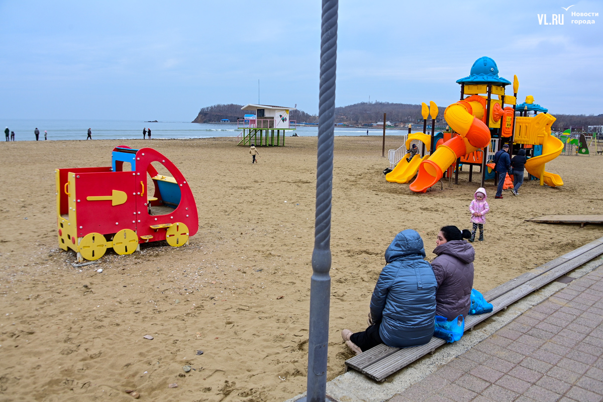 Переступая мусор, проходимся от первого пляжа ко второму по мосту – здесь всё так же грустно. Летом на променаде пересекаются толпы горожан и туристов в купальниках и с варёной кукурузой в руках. Весной же корреспондентам Новостей VL.ru встретились только несколько молодых родителей с колясками и пожилые женщины, идущие парочками под руку.