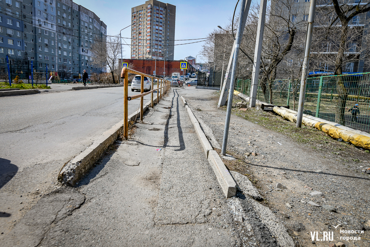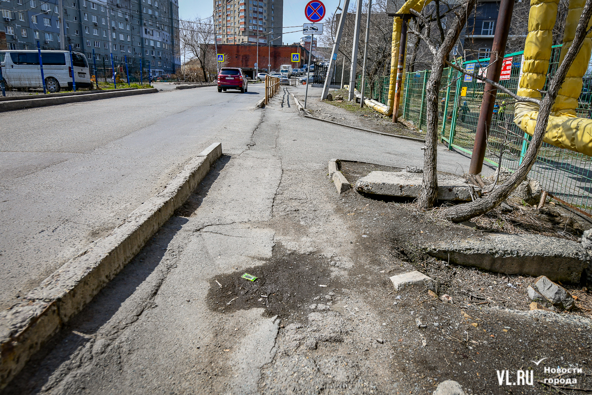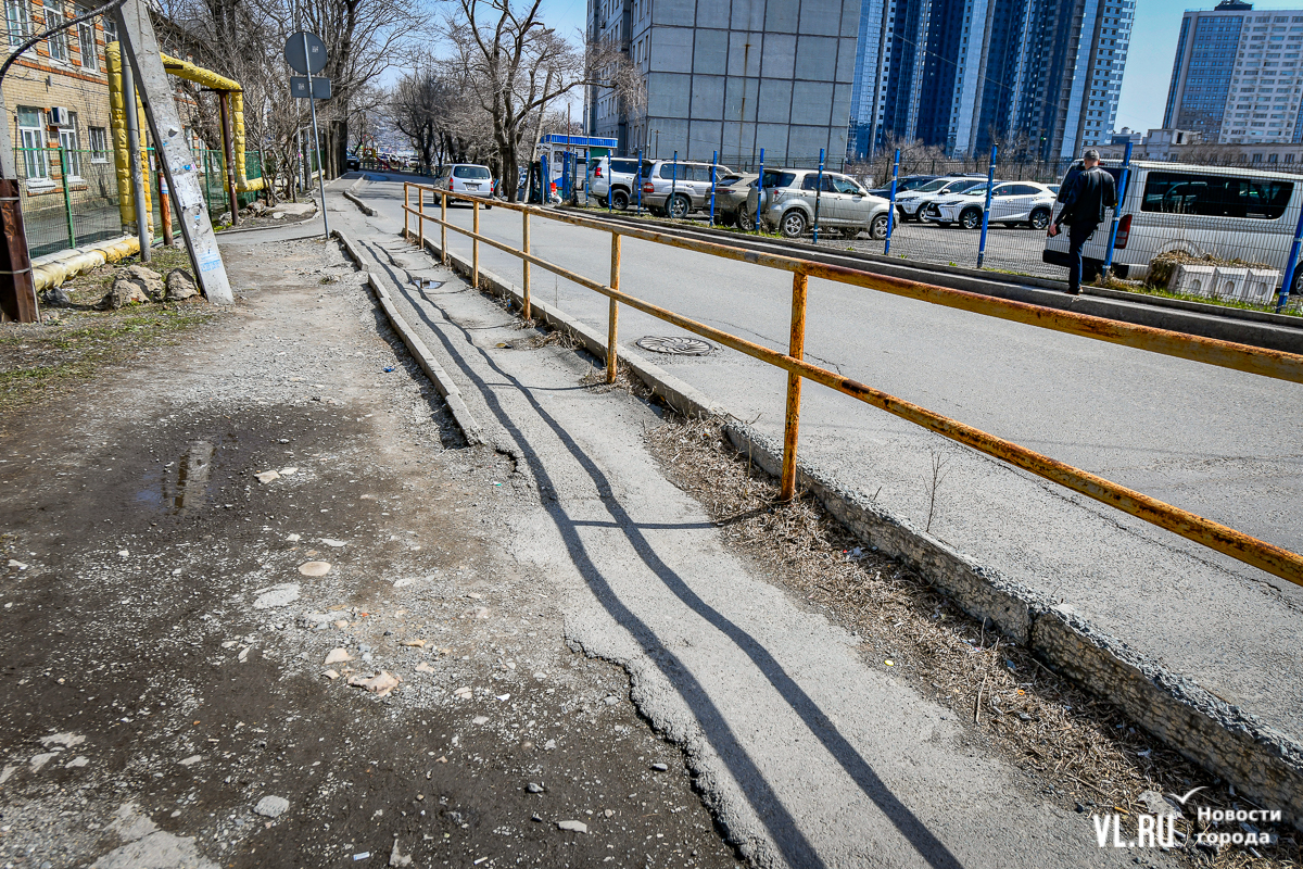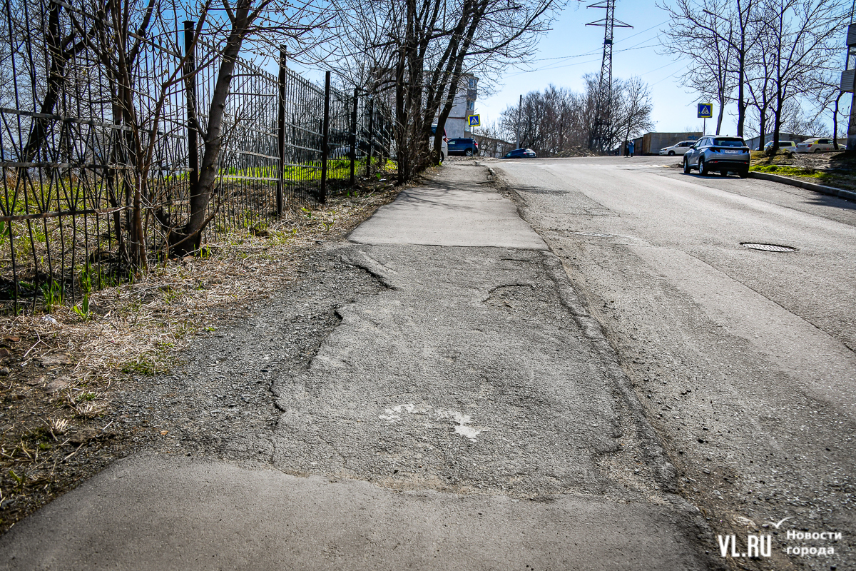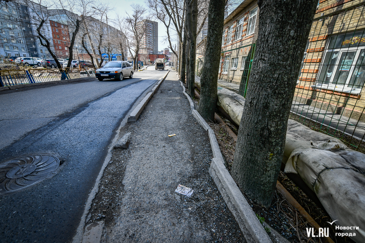 Тротуары возле школы № 62, от остановки «Диагностический центр» к детскому саду № 163, возле детского сада № 60 и по другим адресам отремонтируют в этом году. Управление дорог Владивостока уже объявило о поиске компании-подрядчика за 21,7 млн рублей со сроком исполнения до конца августа.