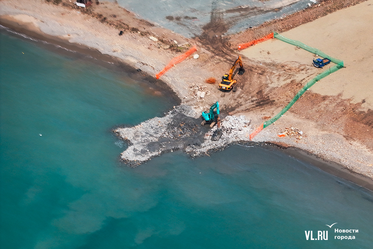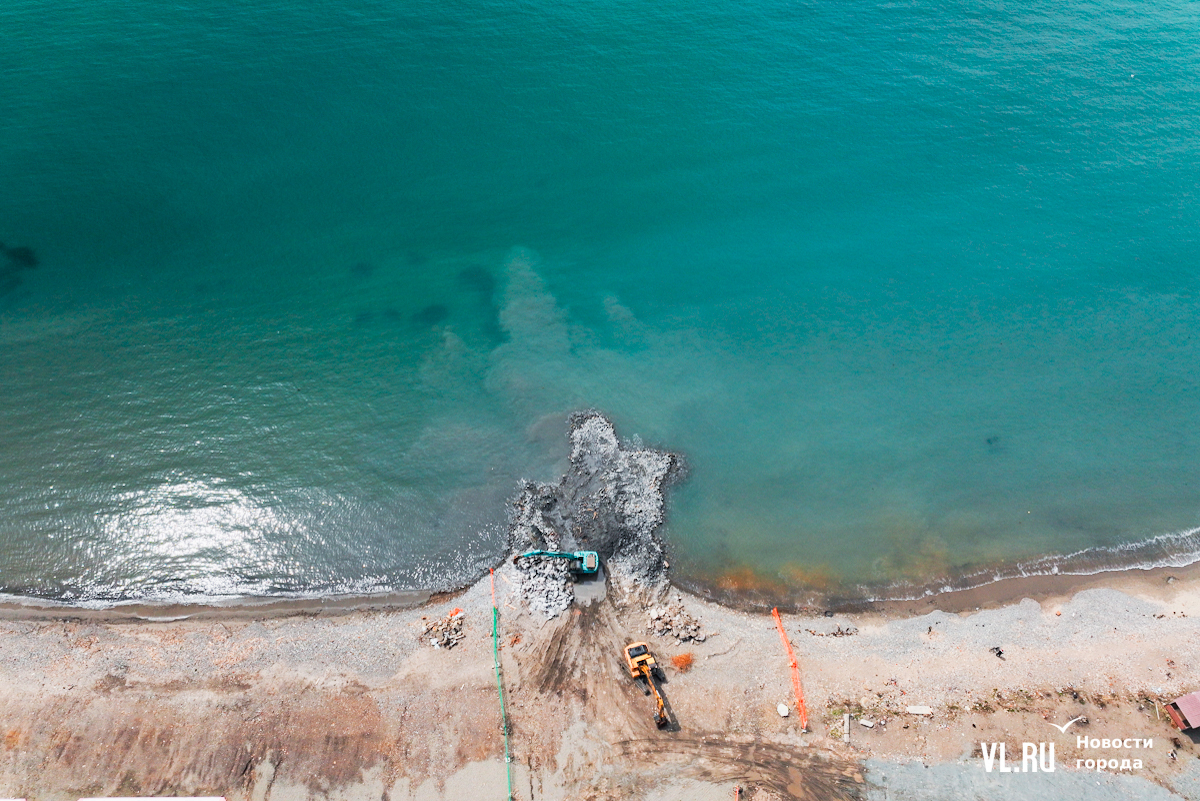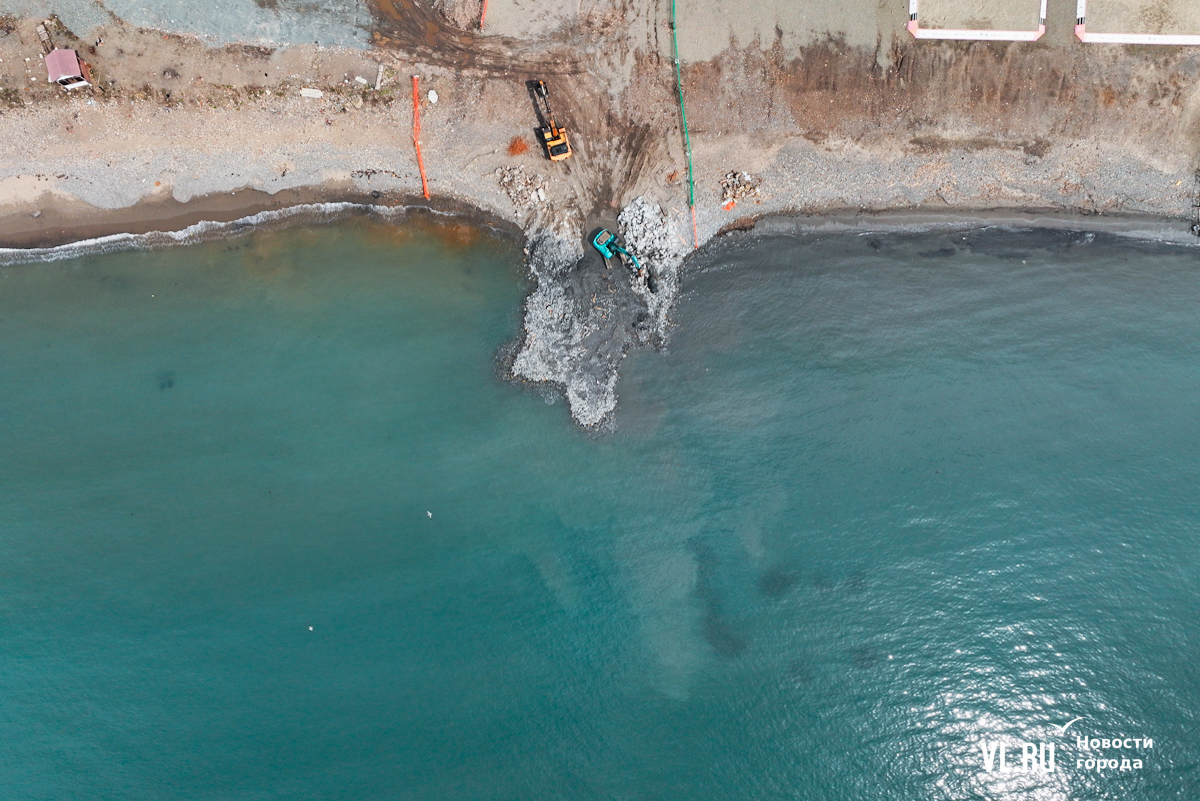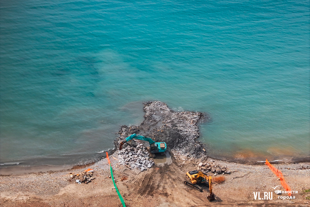 В бухте Патрокл во Владивостоке продолжают обустраивать «лучший в России» общественный пляж. Ради этого чистят не только берег, но и море. Особенно сложным этапом стал демонтаж лежащих на дне остатков слипов – в прошлом веке по ним выезжали на берег гидросамолёты. Чтобы очистить дно, пришлось сделать в море специальные насыпи, по которым техника смогла добраться к старому разрушенному бетону. Со стороны могло показаться, что здесь создают «новый яхт-клуб», но временные дамбы уже разбирают.
