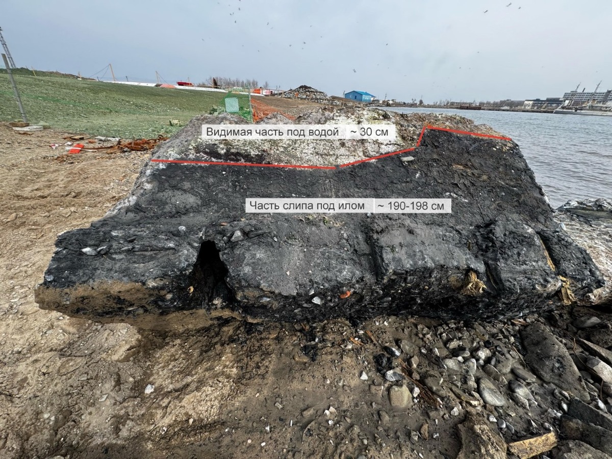 «Слипы, по которым гидросамолёты выбирались на берег, давно разрушены. Бетон где-то сломался, где-то раскрошился, из него торчит железо, – рассказывает президент группы компаний «ДНС» Дмитрий Алексеев. – Купаться там опасно. Соответственно, мы всё чистим. Бетон в слипах залит разным слоем: где-то толстым, где-то потоньше. Там, где просто лежали плиты, – их можно вытащить на берег. А там, где заливался бетон, – его надо раздолбить, прежде чем достать. Для этого нужно к таким местам подъехать. Делается насыпь, на неё заезжает экскаватор, разбивает бетон и всё вытаскивает на берег. После насыпь убирается».