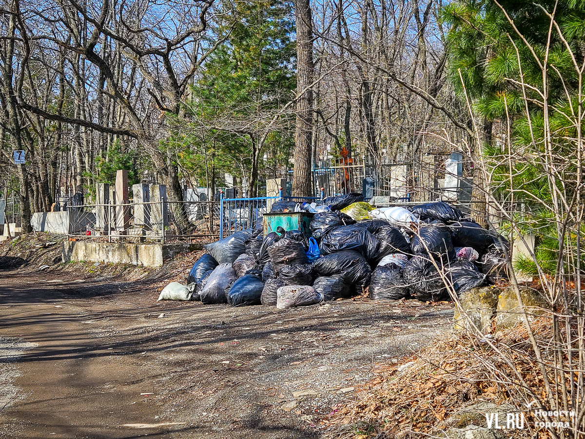 Первый после Пасхи Родительский день, или День поминовения, в этом году выпадает на вторник, 29 апреля. На Радоницу принято поминать усопших, посещая кладбища. Жители Владивостока обычно совмещают это с уборкой. Но – как происходит уже не первый год – посетителей на пути к участку встречают многочисленные свалки. Что на Лесном, что на Морском кладбищах горы мусора лежат вдоль дорог, собранные в пакеты, а ещё больше отходов таится в глубине участков между могил. Но всё же в этом году на обоих местах захоронений заметны следы уборок.