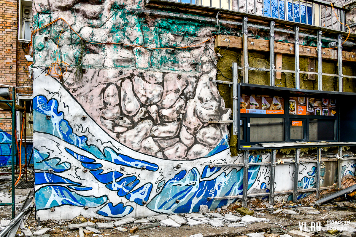 Но картина недолго была открыта глазу горожан. В рамках реконструкции морского фасада Владивостока стены здания на Батарейной обновили, и в 2011 году океанариум встречал 20-летний юбилей в более сдержанном виде, без волн и чаек.