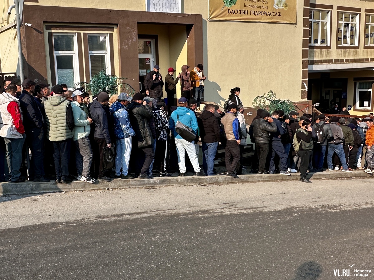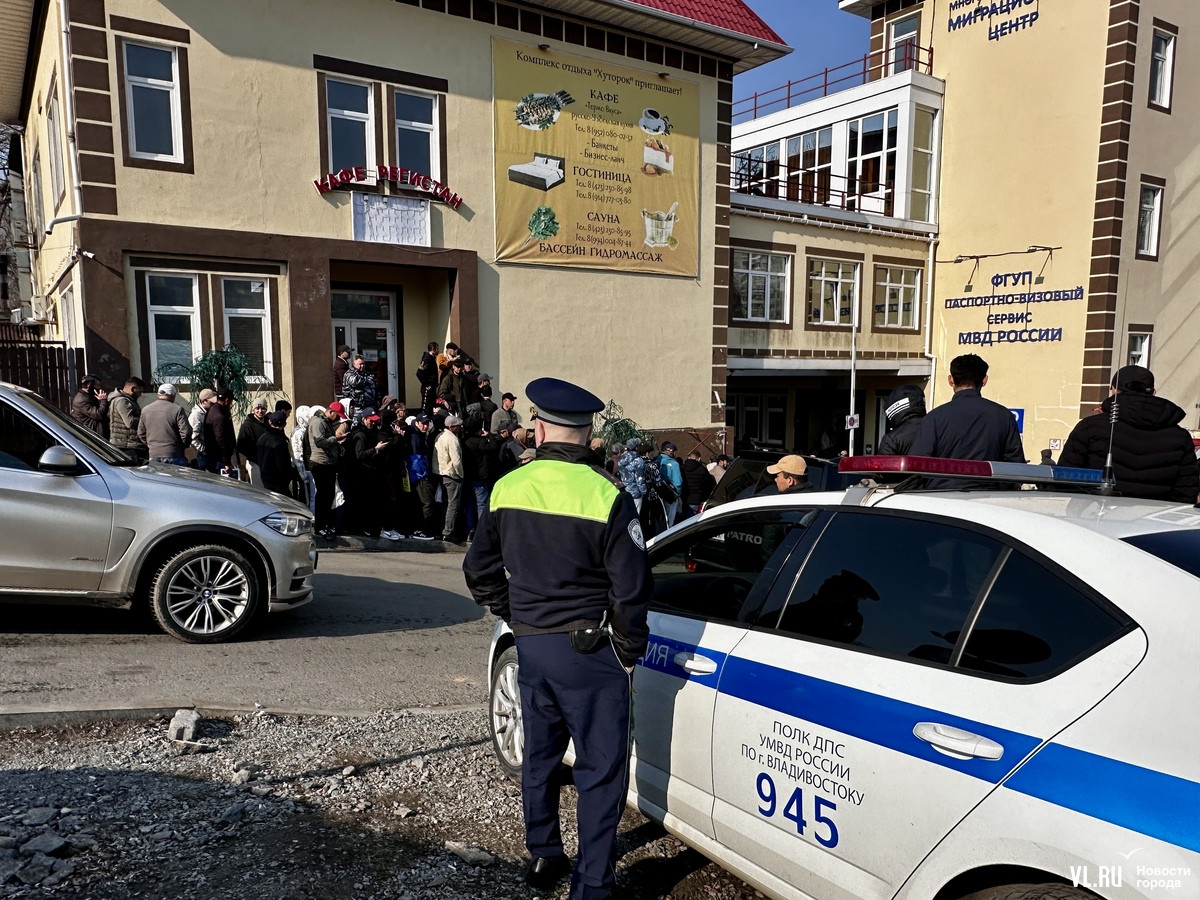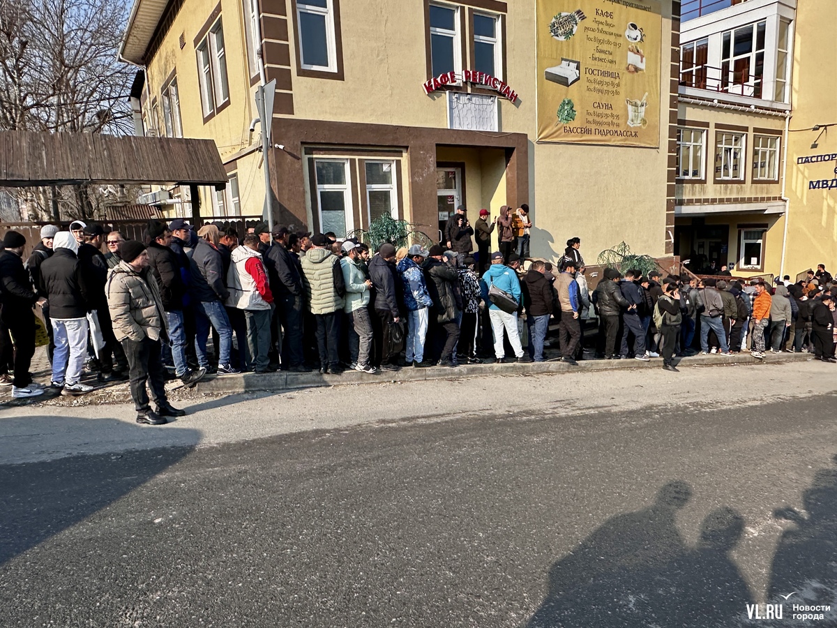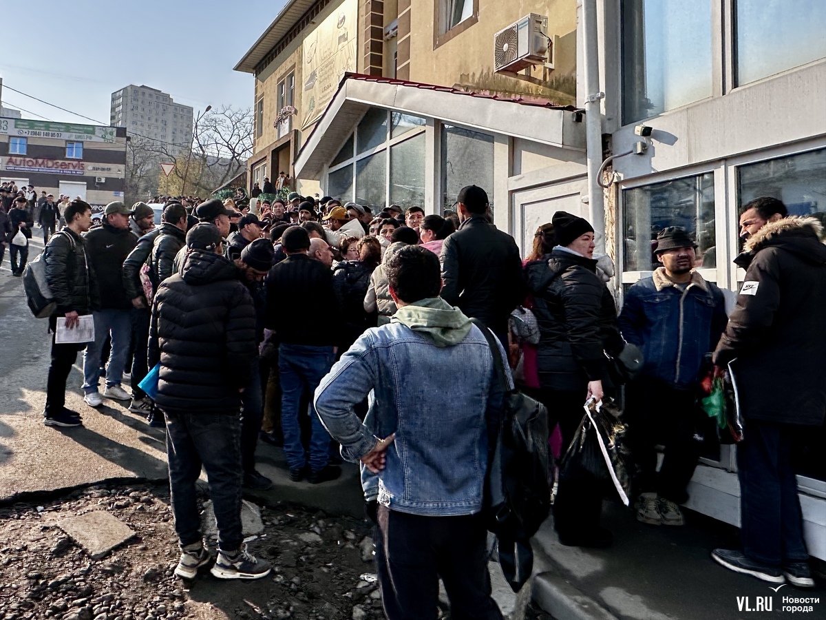 Толпы мигрантов собираются у паспортно-визового сервиса на Стрелковой. Большая часть из них – нелегалы, у которых осталось меньше недели, чтобы по «амнистии» узаконить своё положение в России – получить патенты или вид на жительство. Чтобы не пропустить очередь, некоторые ночуют на улице, поэтому вокруг теперь всё запарковано и в буквальном смысле загажено. Ведут они себя нагло и агрессивно, хамят, орут, угрожают расправой журналистам, устраивают давку. Для сдерживания их на место отправили полицию и ГИБДД. И эти люди – если заплатят штрафы за нелегальное пребывание здесь и предоставят необходимые документы – смогут остаться жить в Приморском крае.