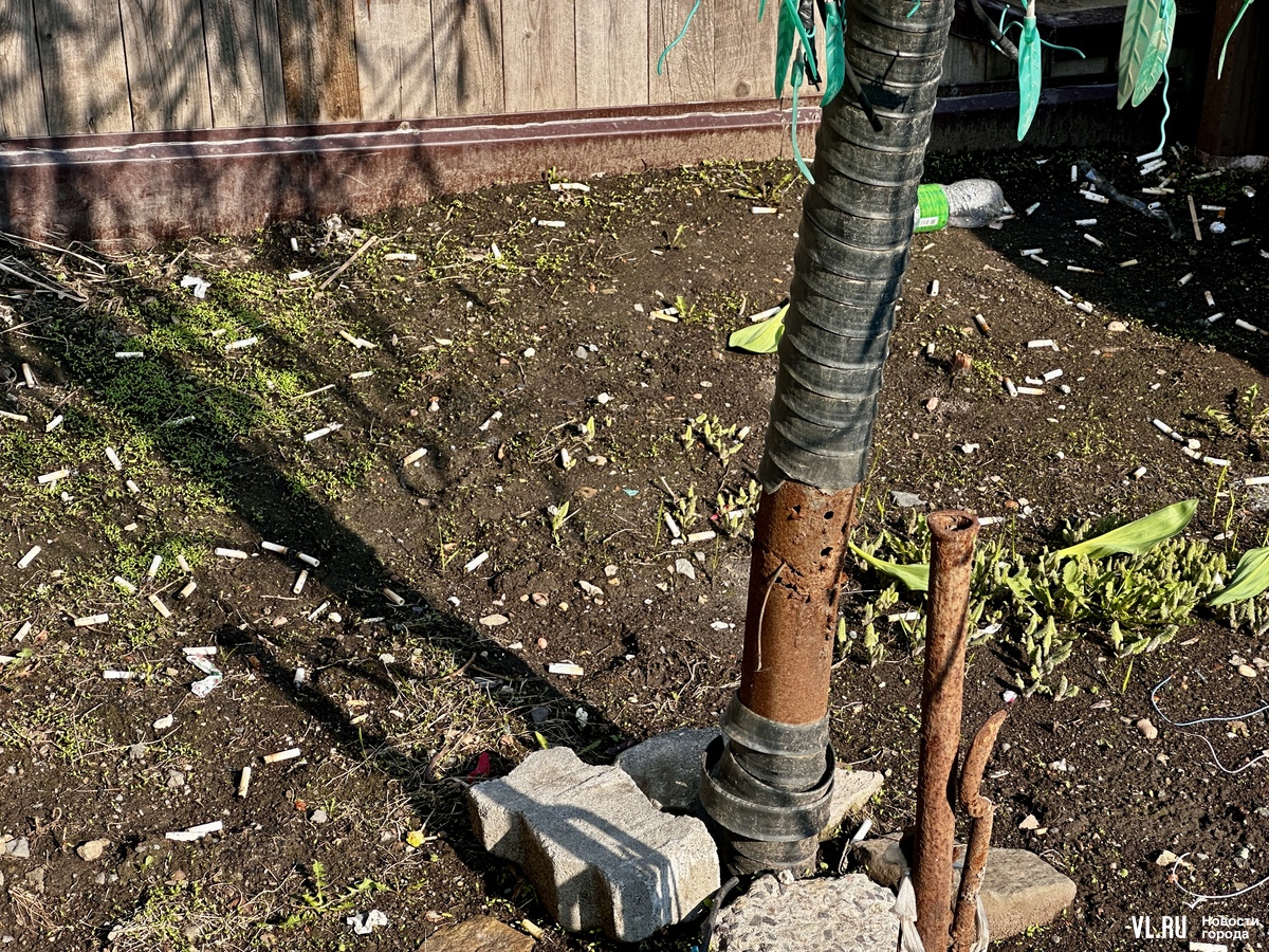 Территория вокруг здания начинает превращаться в большую помойку. В палисаднике у «Хуторка», где росли цветы, все затоптано и завалено бычками. В углах валяются пустые и смятые банки из-под энергетиков, а между гаражами можно найти даже человеческие экскременты. Видимо, это тех, кто теперь живёт на улице возле управления миграции.