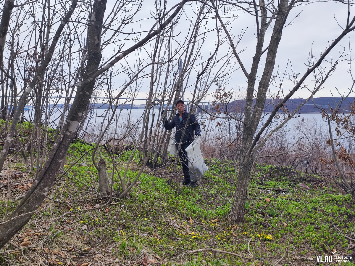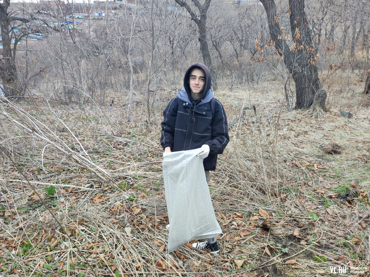 Субботнее утро в лесу решили провести более 30 человек. Навести порядок пришли пенсионеры, родители с детьми, школьники. Так, например, к уборке присоединился студент третьего курса ВВГУ Ильгар. По его словам, он не часто участвует в субботниках, но сегодня пришёл, потому что ему небезразлична судьба микрорайона.