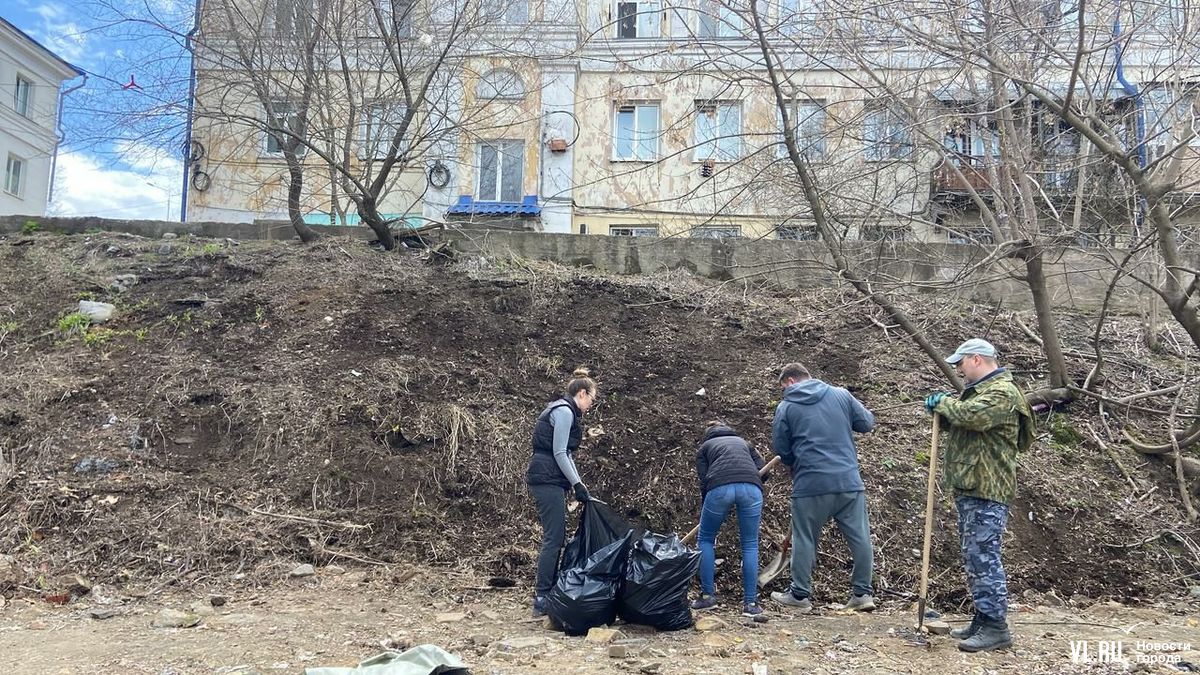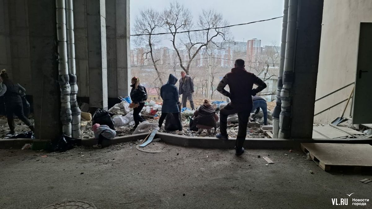 «Совет дома принял решение организовать 15-кубовый контейнер из средств собираемых УК, так как мусорной площадки администрация Приморского края (Фонд поддержки обманутых дольщиков) при сдаче дома так и не сделала. Хотя даже пару месяцев назад на дом приезжал вице-губернатор Блоцкий, который обещал, что организует процесс по её появлению, но так ничего и не случилось», – рассказывает Сергей, один из участников субботника. Сам он в дом ещё не въехал, но решил помочь очистить территорию.
