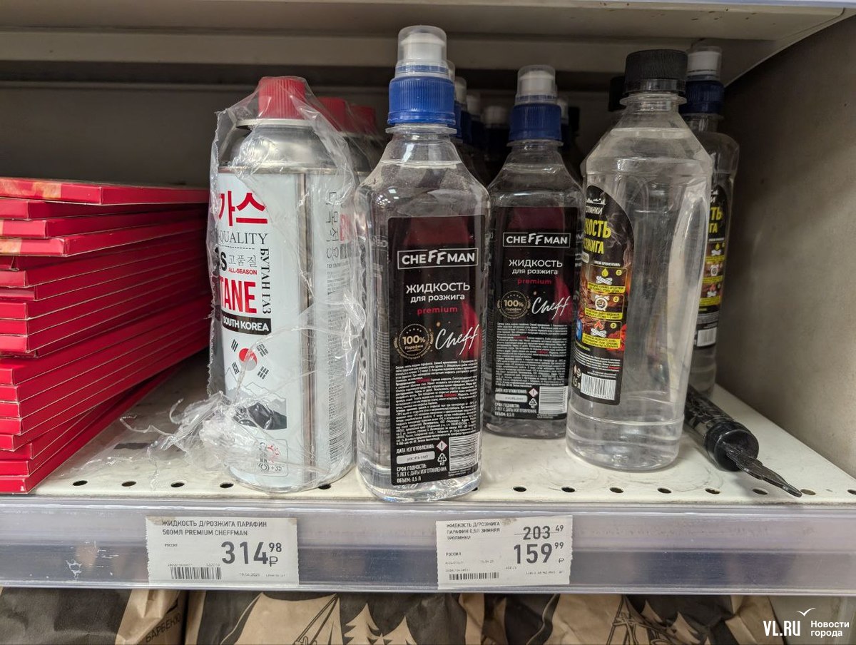 Пол-литра жидкости для розжига можно взять от 99 до 159 рублей, мешок угля – от 219 до 399 рублей в зависимости от объёма.