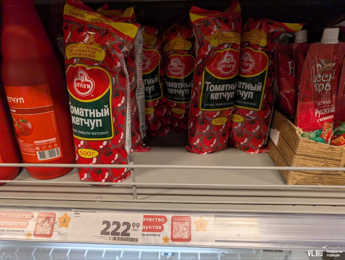 Лаваш берём армянский – от 45 до 72 рублей. Кетчуп корейский – 169 рублей за 300 г до 222 рублей за 500 г. Пятилитровку воды получилось найти только в «Пятёрочке» – за 149 рублей, в «Самбери» – 3 л за 104 рубля, в «Реми» – 6 л за 129 рублей.