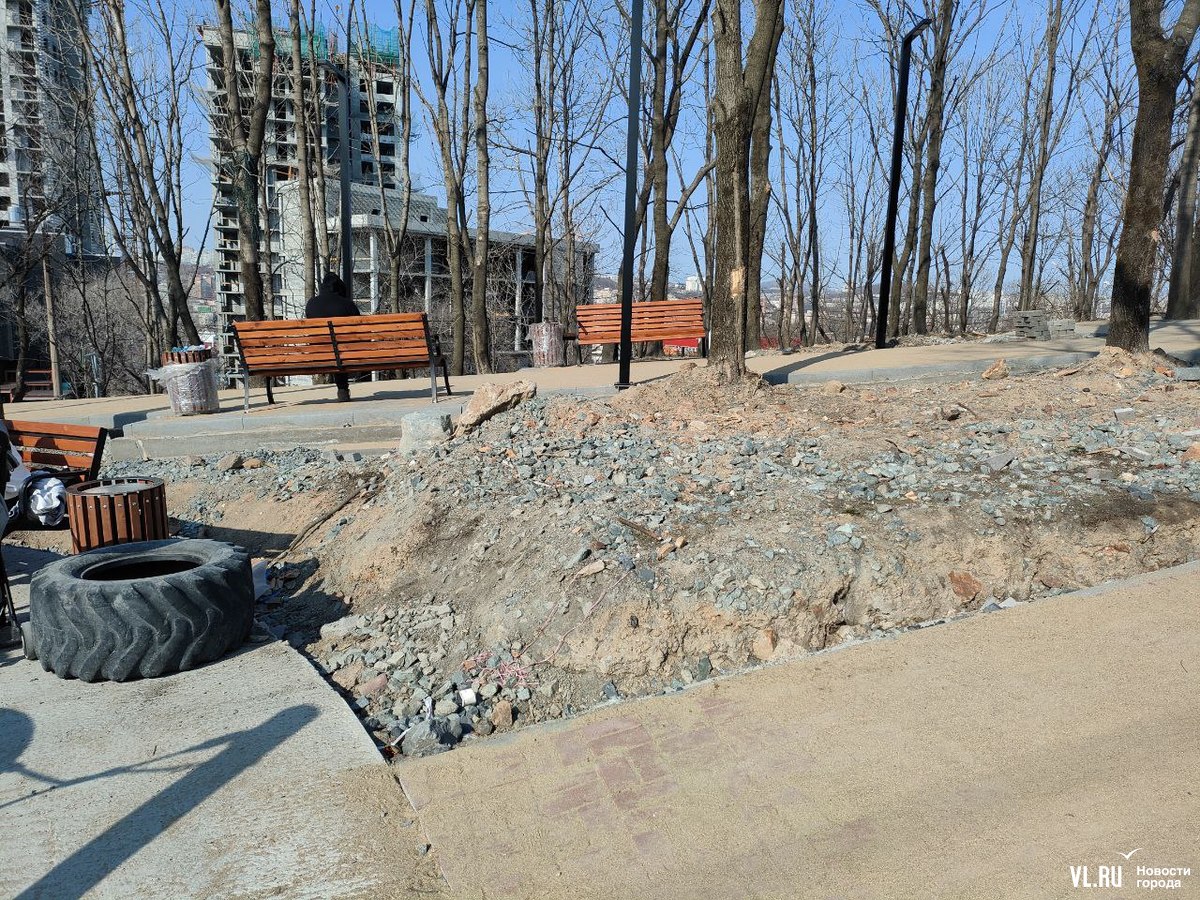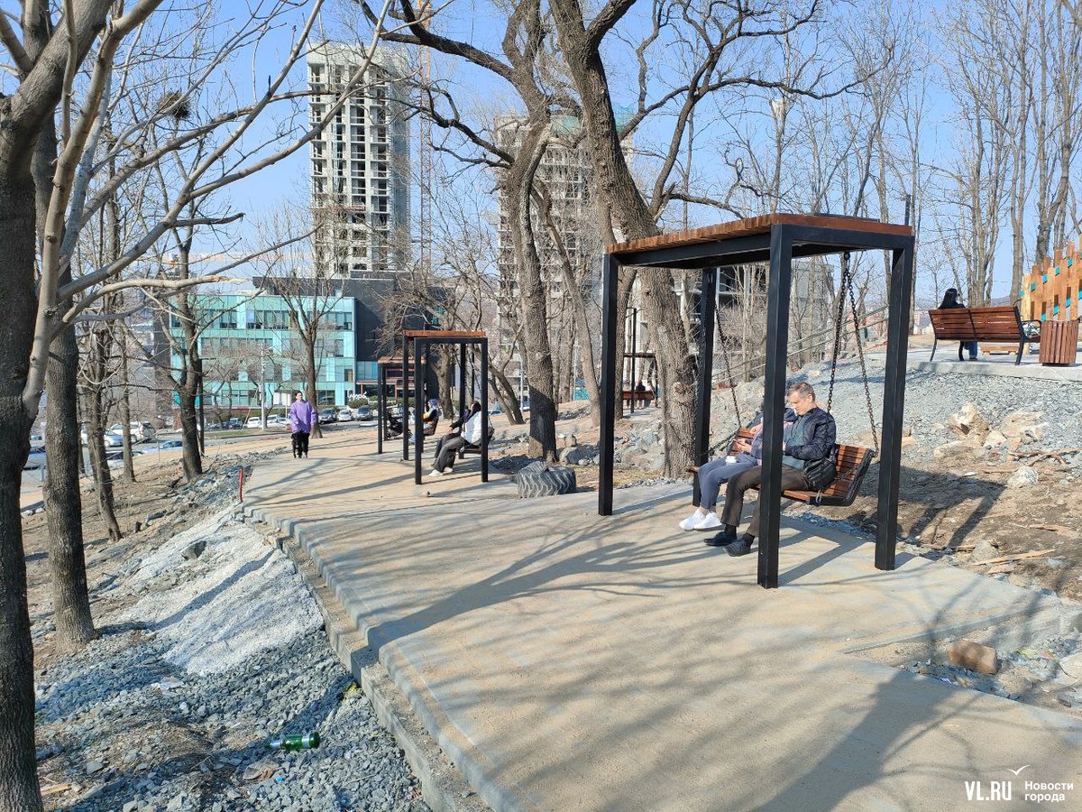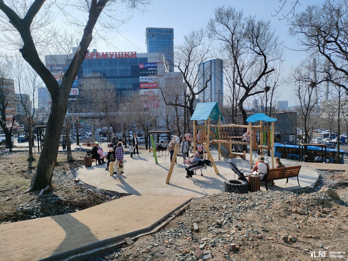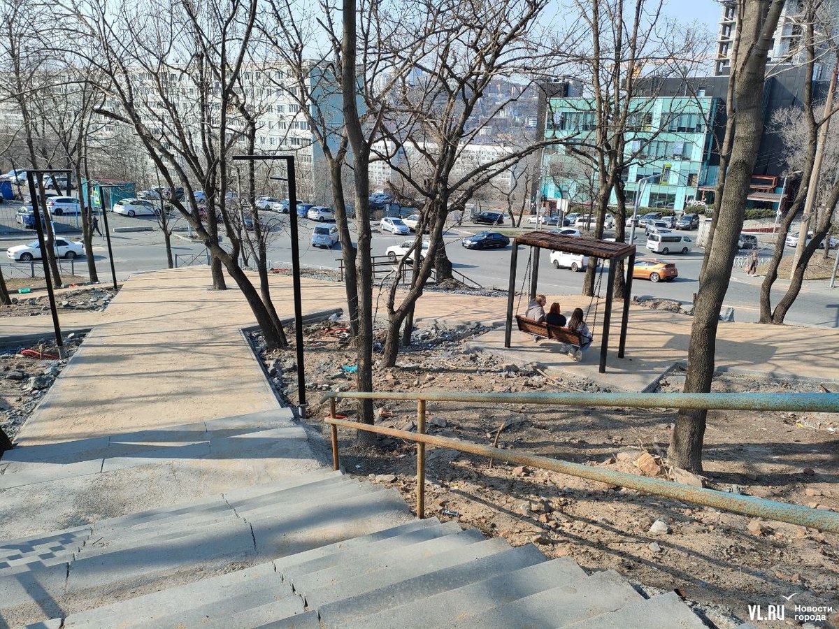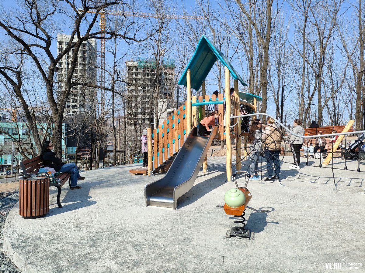 Теперь же здесь есть пешеходные дорожки, фонари, скамейки, горки, качели – и без всяких голосований. Оказалось, что инвестор и подрядчик всё же нашёлся – застройщик «Снеговая Девелопмент», который строит три многоэтажки на Пихтовой. На паспорте объекта указано, что заказчик благоустройства – управление городской среды администрации Владивостока.