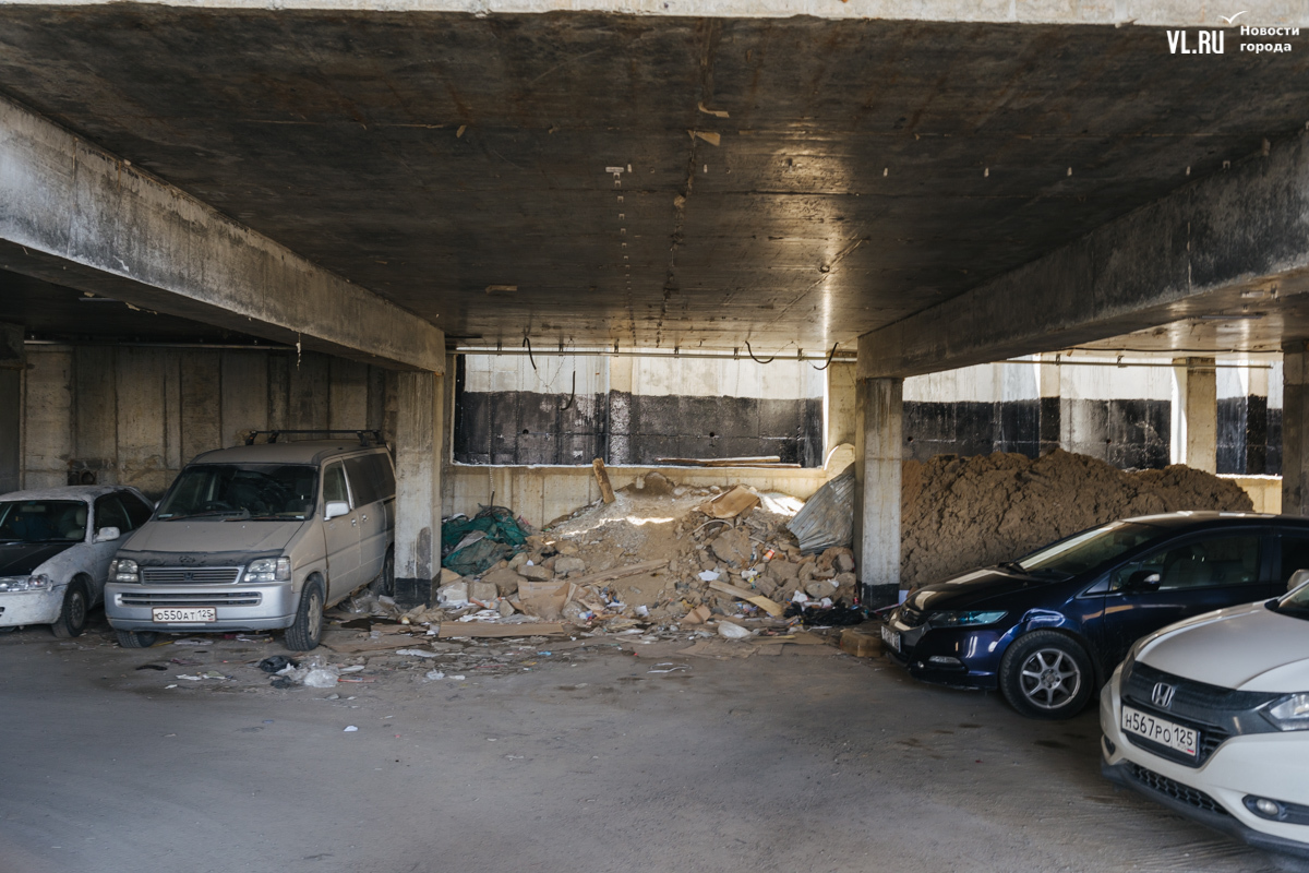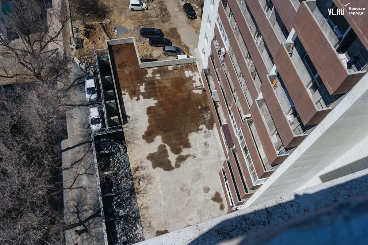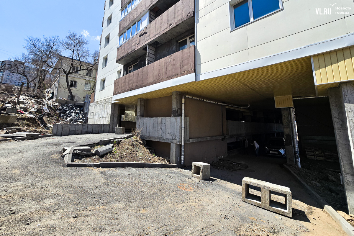 В декабре 2023 года правительство Приморского края отчиталось о том, что многоквартирный дом на Сафонова, 7, брошенный компанией «Аврора-Строй» экс-депутата Ищенко, сдадут в этом же месяце. Чуть позже оказалось, что речь шла о жилой части жилого комплекса «Сафонов». Спустя почти полтора года жители многоквартирного дома продолжают оставлять свои машины на устрашающего вида парковке, заходят в дом через пожарную дверь, потому что проход к главному входу до сих пор не отсыпан, борются с протекающими потолками, прибирают тонны мусора за подрядчиками, которые продолжают какой-то ремонт, и надеются, что новые названные сроки сдачи нежилой части дома наконец сбудутся.