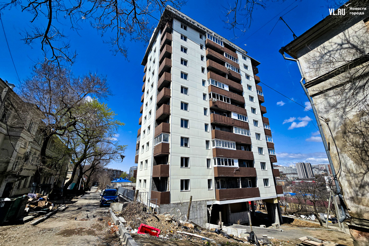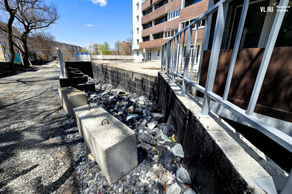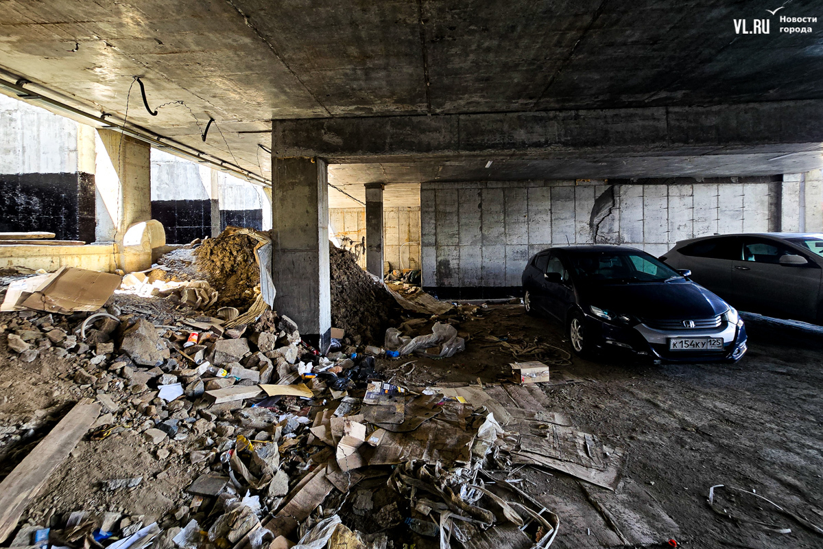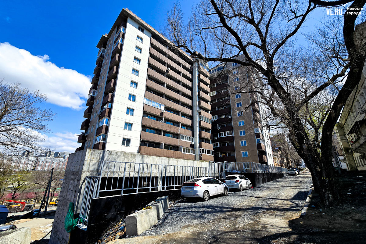 В декабре 2023 года правительство Приморского края отчиталось о том, что многоквартирный дом на Сафонова, 7, брошенный компанией «Аврора-Строй» экс-депутата Ищенко, сдадут в этом же месяце. Чуть позже оказалось, что речь шла о жилой части жилого комплекса «Сафонов». Спустя почти полтора года жители многоквартирного дома продолжают оставлять свои машины на устрашающего вида парковке, заходят в дом через пожарную дверь, потому что проход к главному входу до сих пор не отсыпан, борются с протекающими потолками, прибирают тонны мусора за подрядчиками, которые продолжают какой-то ремонт, и надеются, что новые названные сроки сдачи нежилой части дома наконец сбудутся.