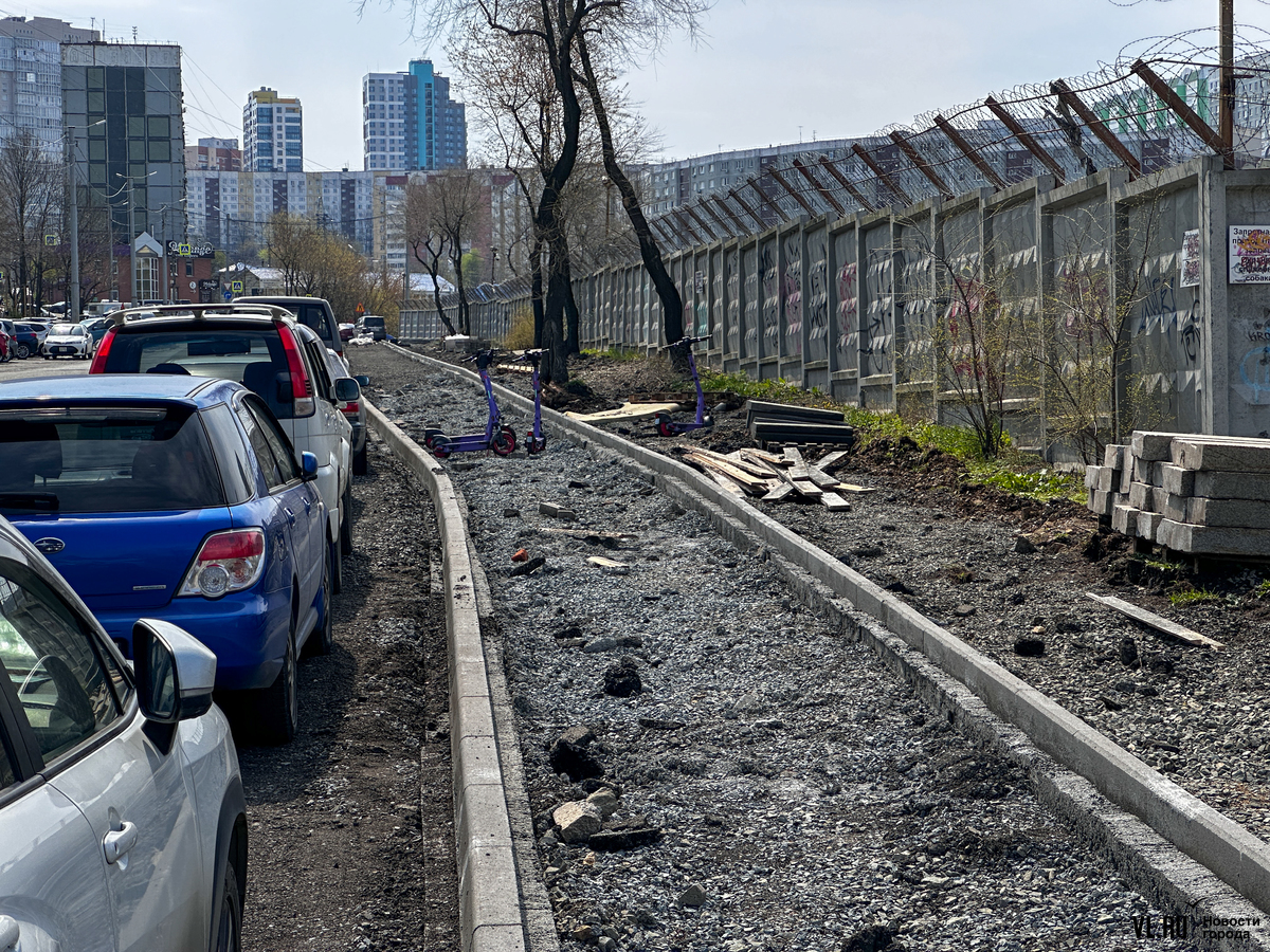 Пока же на участке, где был тротуар, паркуются машины, занимая почти всю его ширину. По словам начальника управления дорог Дмитрия Долгого, всего здесь будет более 270 парковочных мест – это не меньше, чем было до ремонта.
