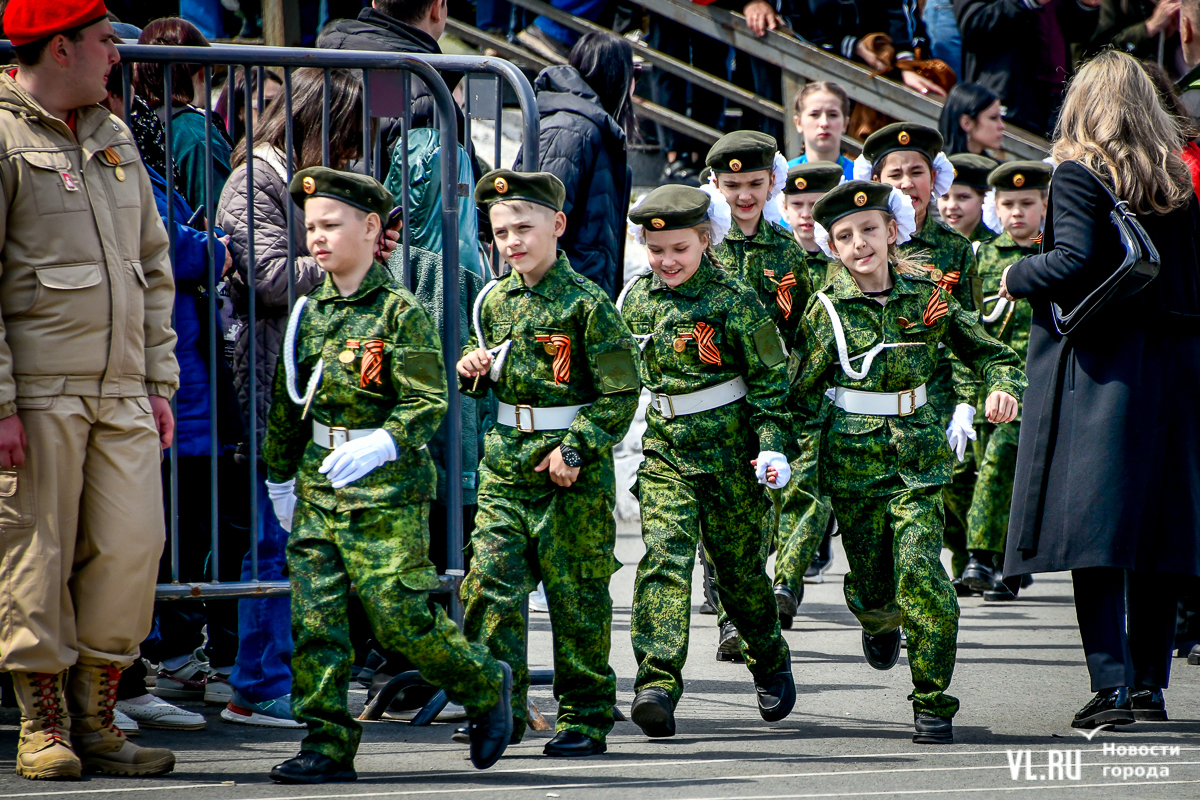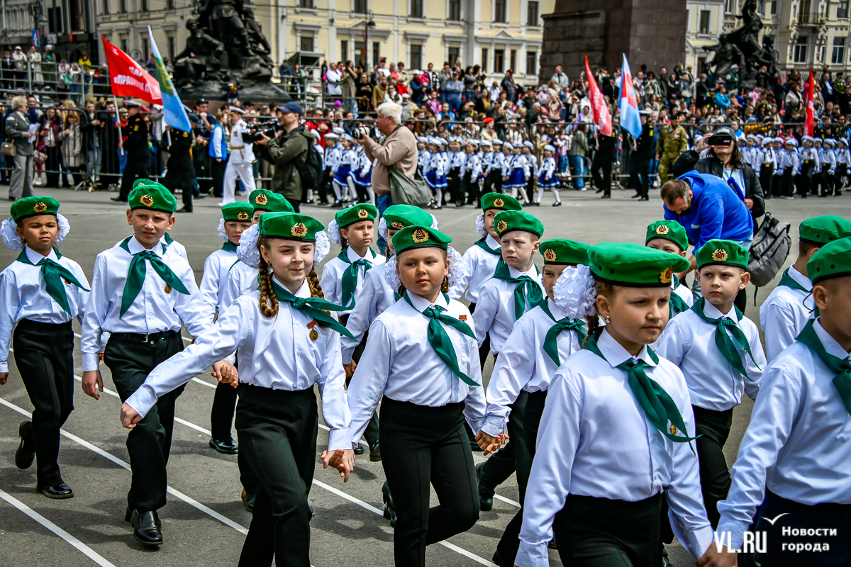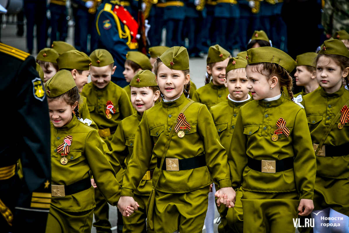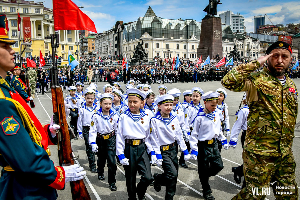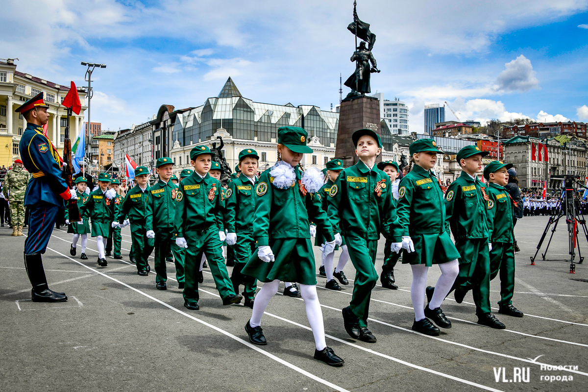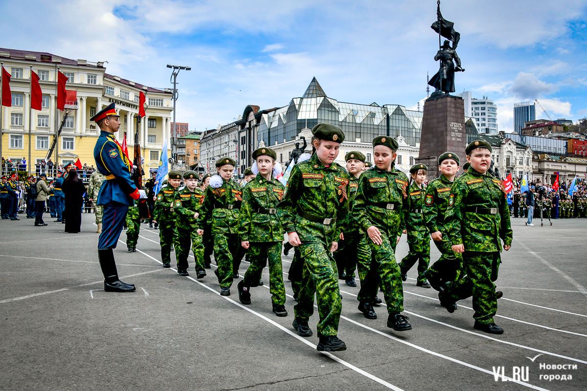 Около 1500 первоклассников со всех муниципальных образований Приморского края выступили в параде «Правнуки Победы» в воскресенье, 4 мая, на центральной площади Владивостока. Дети представляли разные виды войск: артиллерийские, мотострелковые, пограничные и другие. С трибун их поддерживали родители, учителя и ветераны Великой Отечественной.