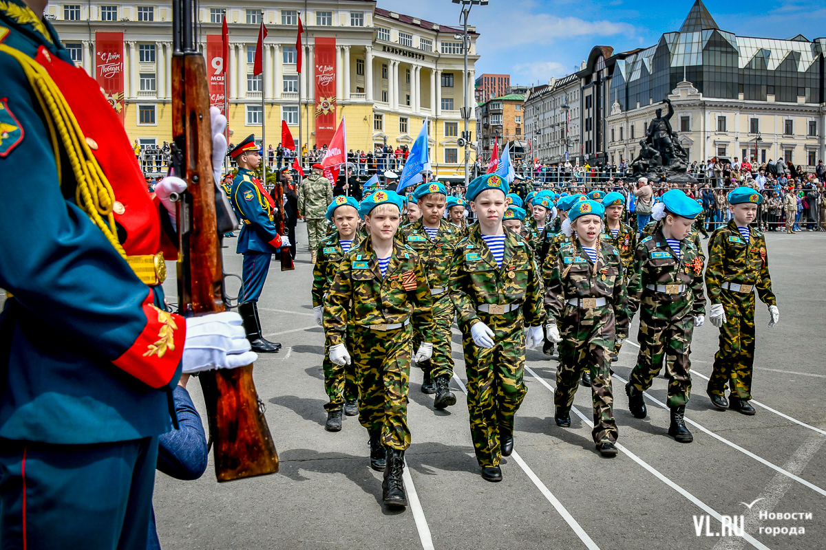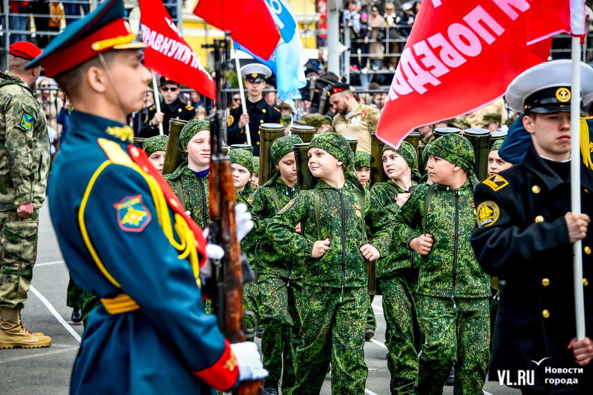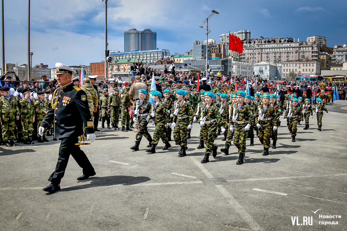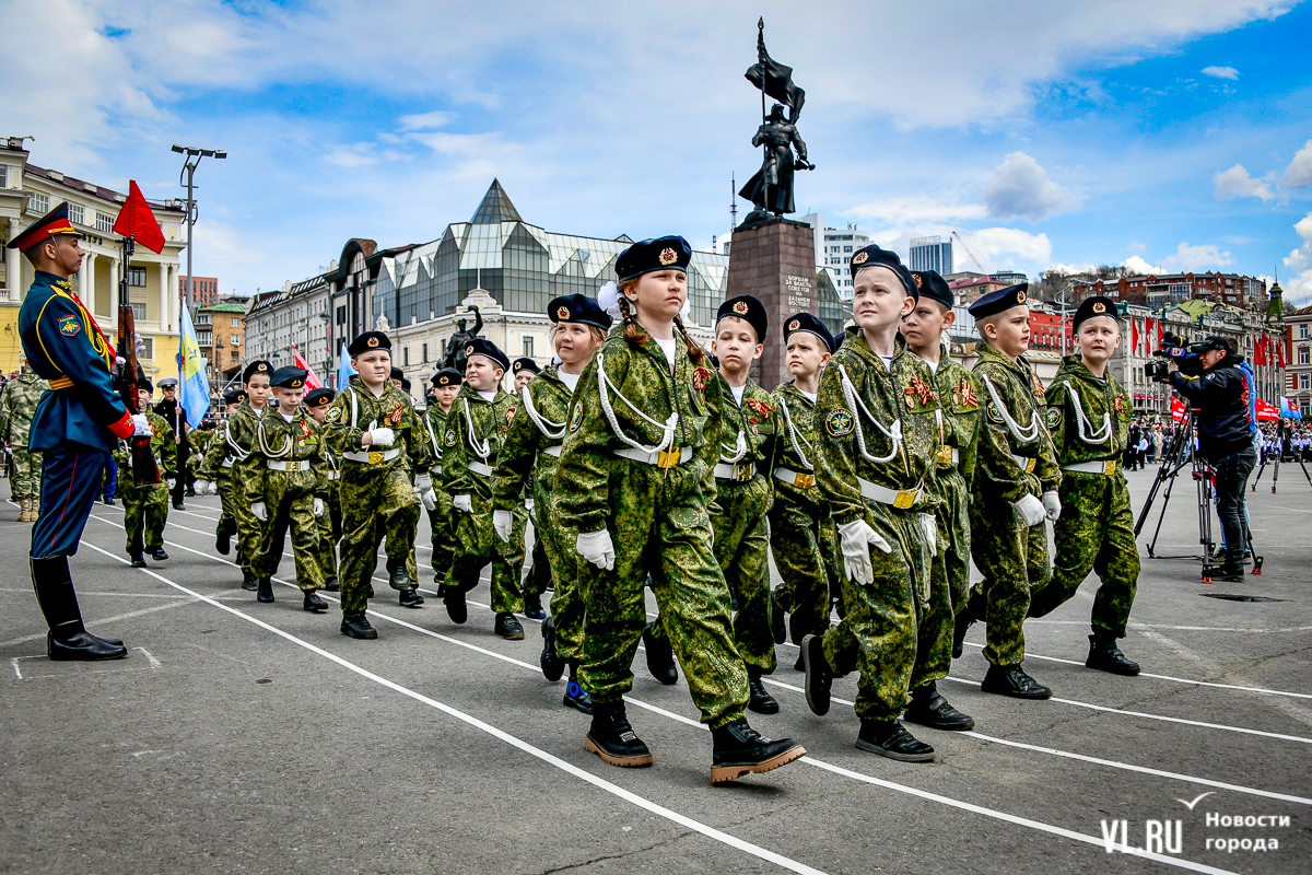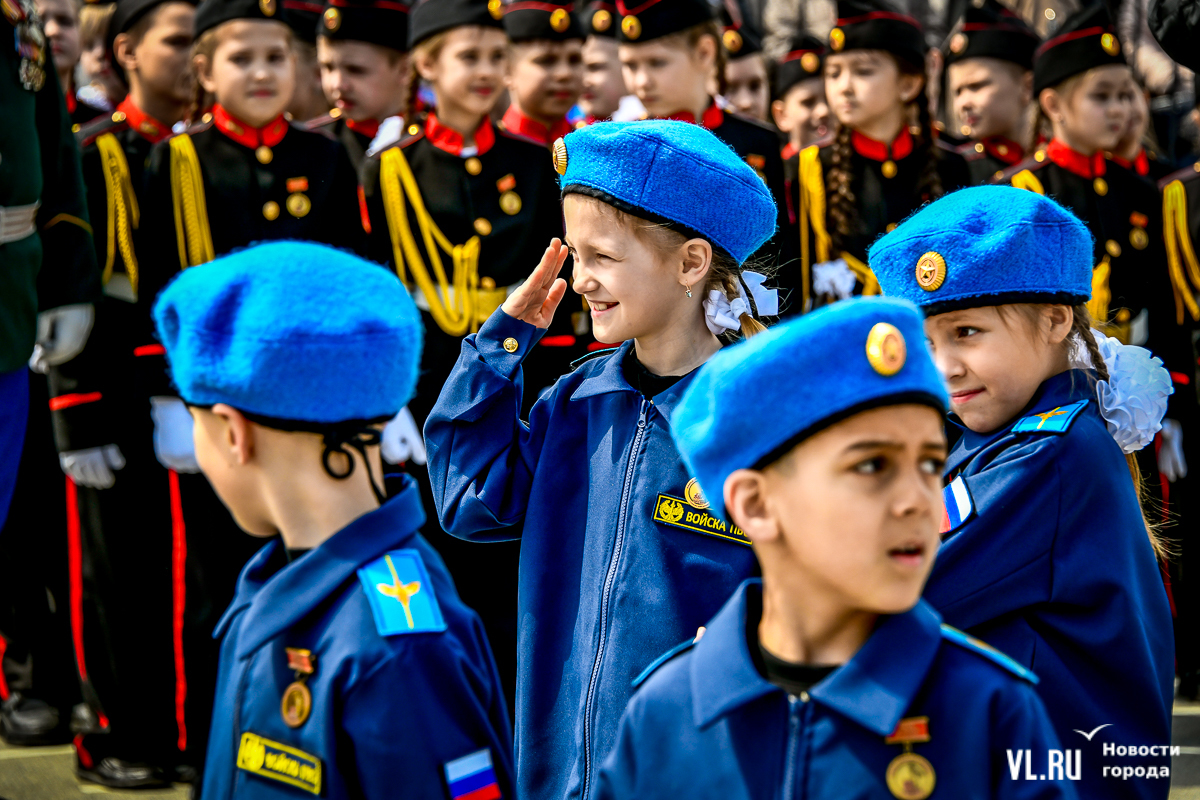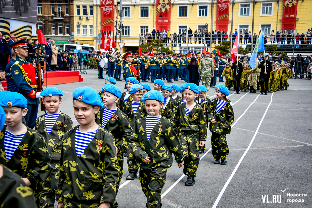 Около 1500 первоклассников со всех муниципальных образований Приморского края выступили в параде «Правнуки Победы» в воскресенье, 4 мая, на центральной площади Владивостока. Дети представляли разные виды войск: артиллерийские, мотострелковые, пограничные и другие. С трибун их поддерживали родители, учителя и ветераны Великой Отечественной.