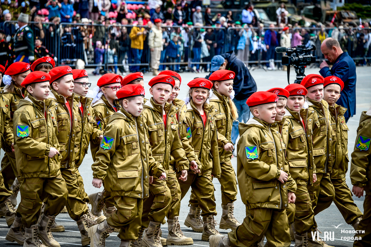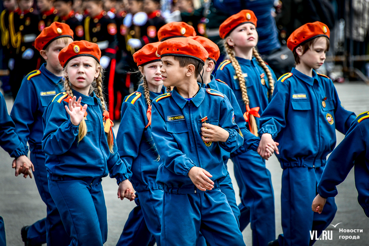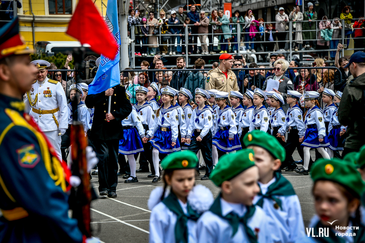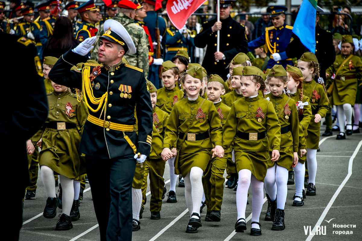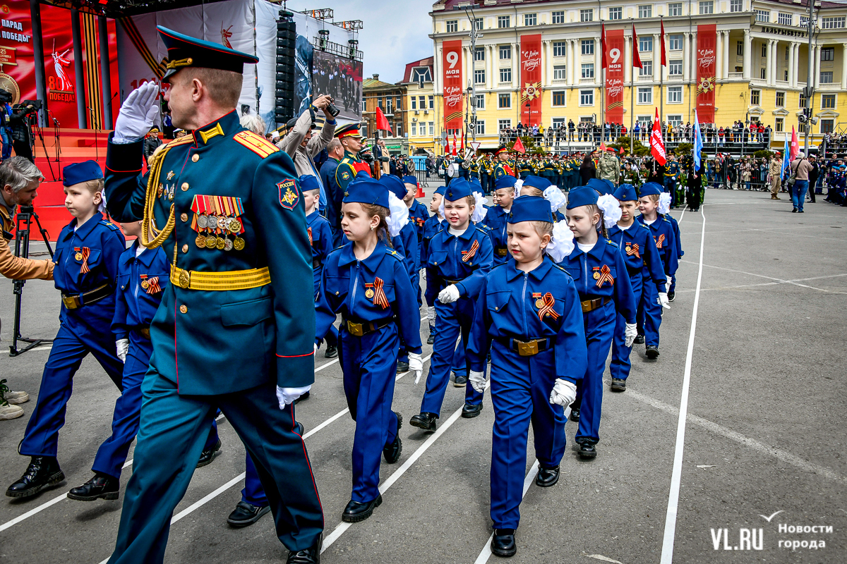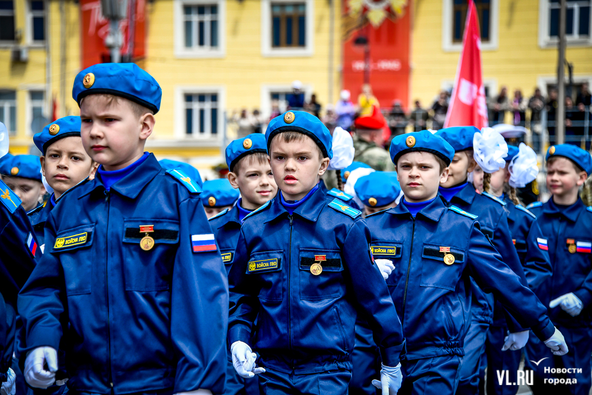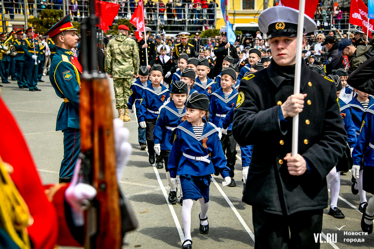Около 1500 первоклассников со всех муниципальных образований Приморского края выступили в параде «Правнуки Победы» в воскресенье, 4 мая, на центральной площади Владивостока. Дети представляли разные виды войск: артиллерийские, мотострелковые, пограничные и другие. С трибун их поддерживали родители, учителя и ветераны Великой Отечественной.