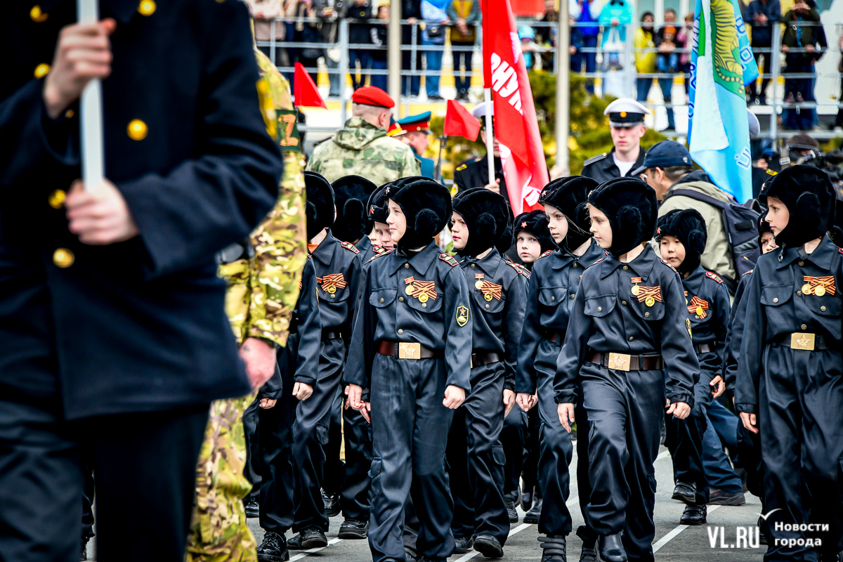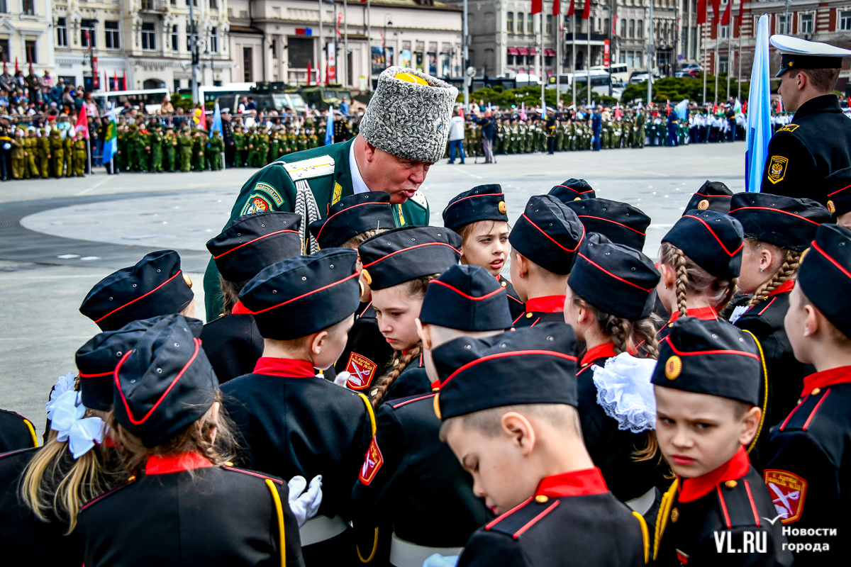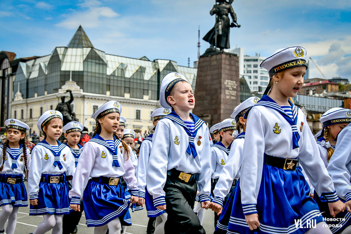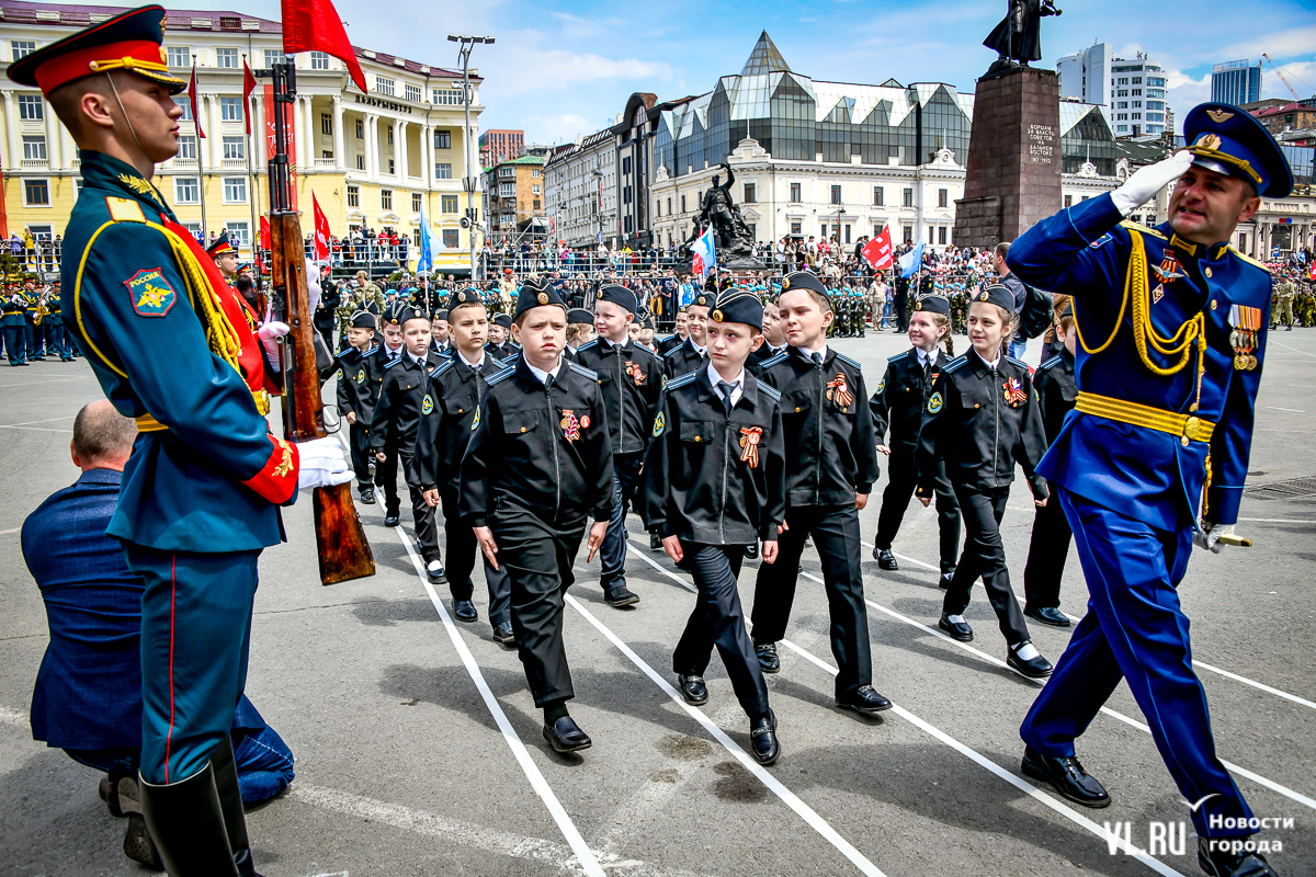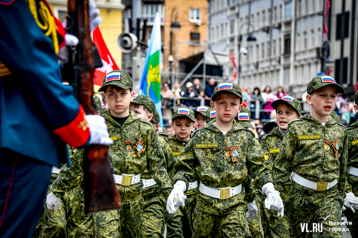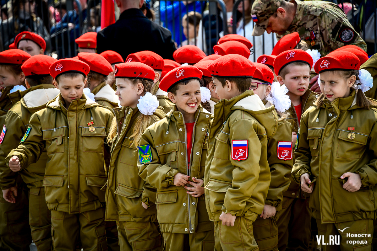 Около 1500 первоклассников со всех муниципальных образований Приморского края выступили в параде «Правнуки Победы» в воскресенье, 4 мая, на центральной площади Владивостока. Дети представляли разные виды войск: артиллерийские, мотострелковые, пограничные и другие. С трибун их поддерживали родители, учителя и ветераны Великой Отечественной.