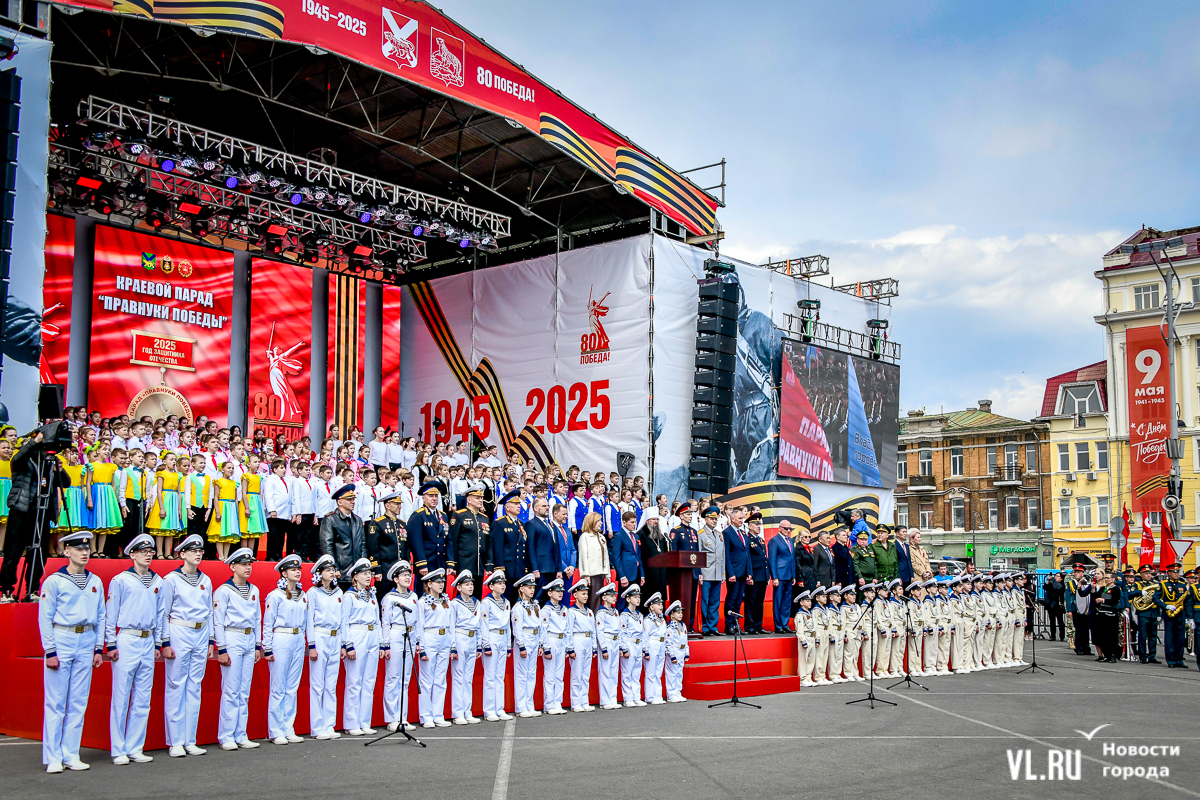 Парад приурочен к 80-летию Победы в Великой Отечественной войне. Всего к нему присоединились около 1500 первоклассников из всех 32 муниципалитетов Приморья.