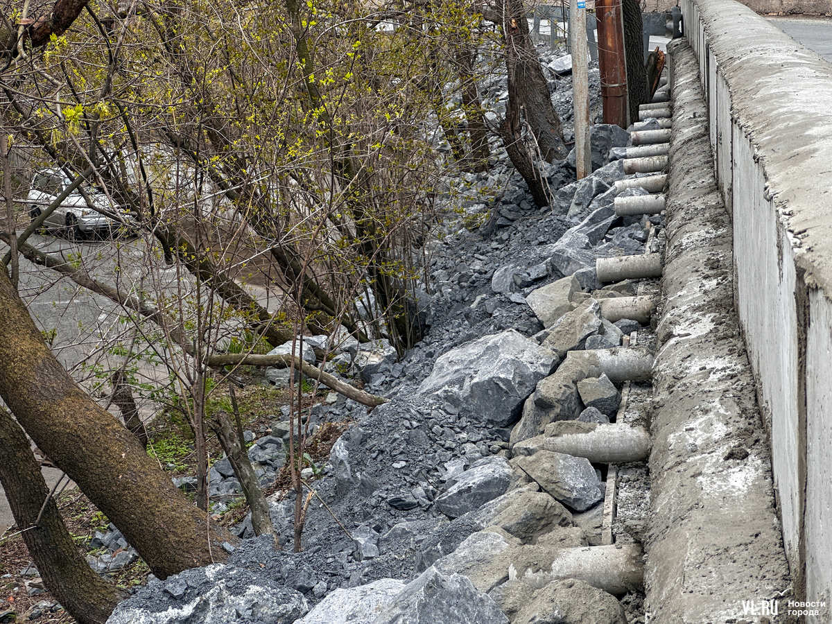 «Естественно, какие-то могут на краю лежать, но это мы всё соберём, уберём. Выложим откос. Это укрепление откоса от осадков. Здесь было два размытия больших, вся вода идёт прямо на этот откос. Поэтому его укрепили большими камнями. Обывателю кажется, что они могут упасть, но эти камни никуда не идут. Просто какие-то, наверное, попали на край стены», – пояснил Новостям VL.ru генеральный директор ООО «АртельСтройСнаб» Сергей Сурменко.