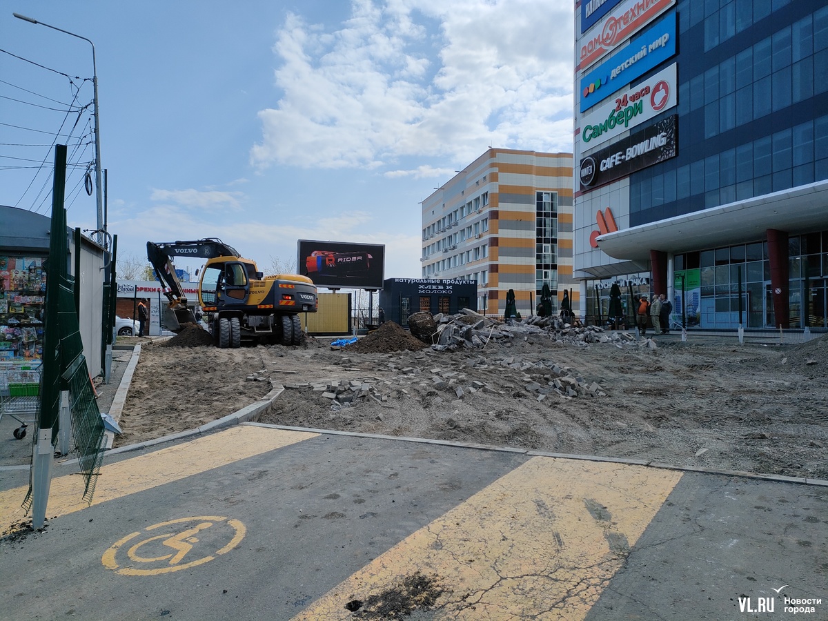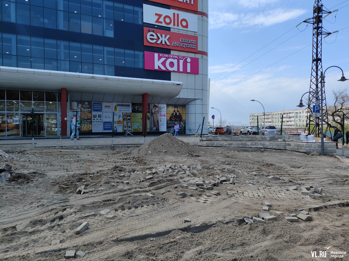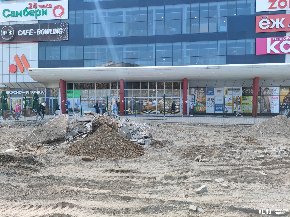 «У нас идёт реконструкция территории вокруг торгового центра. Изначально здесь была просто площадь с парой лавочек. Теперь появится полноценная зона отдыха. Поверхность будем полностью выравнивать. Постараемся сделать всё максимально быстро», – рассказали Новостям VL.ru в «Меридиан Девелопмент».