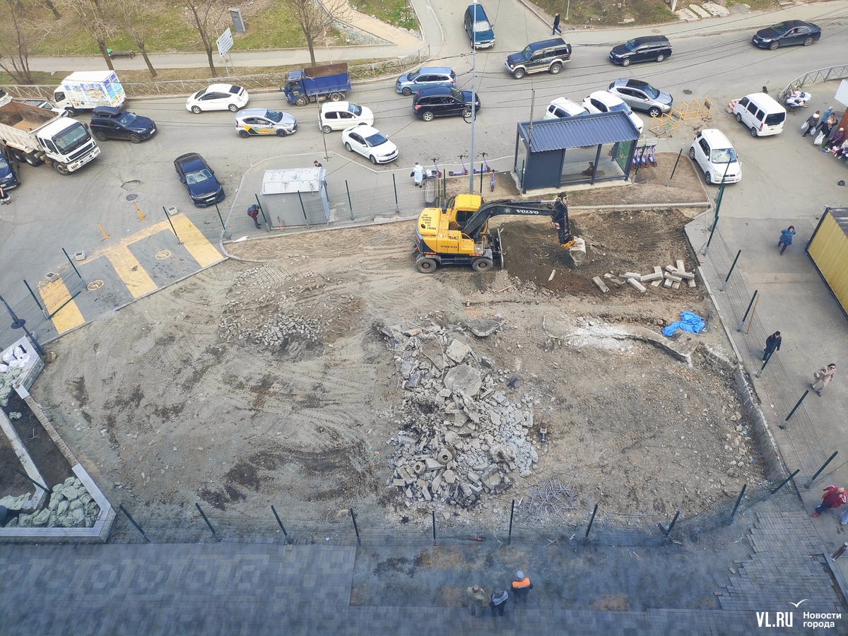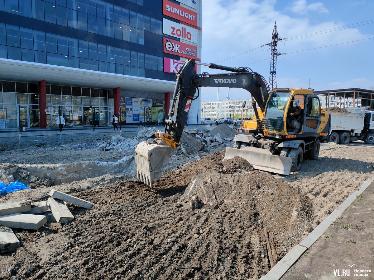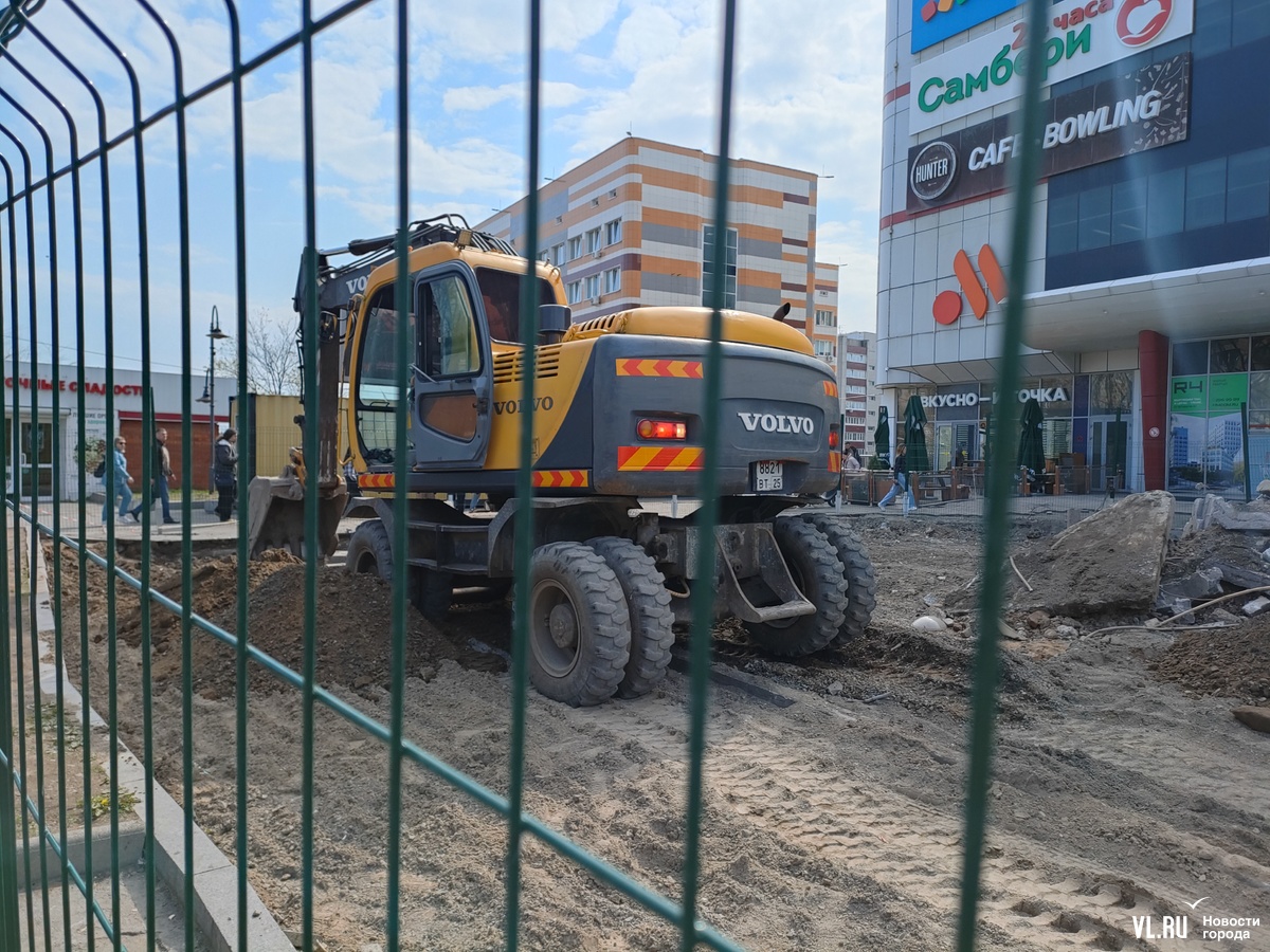 «У нас идёт реконструкция территории вокруг торгового центра. Изначально здесь была просто площадь с парой лавочек. Теперь появится полноценная зона отдыха. Поверхность будем полностью выравнивать. Постараемся сделать всё максимально быстро», – рассказали Новостям VL.ru в «Меридиан Девелопмент».