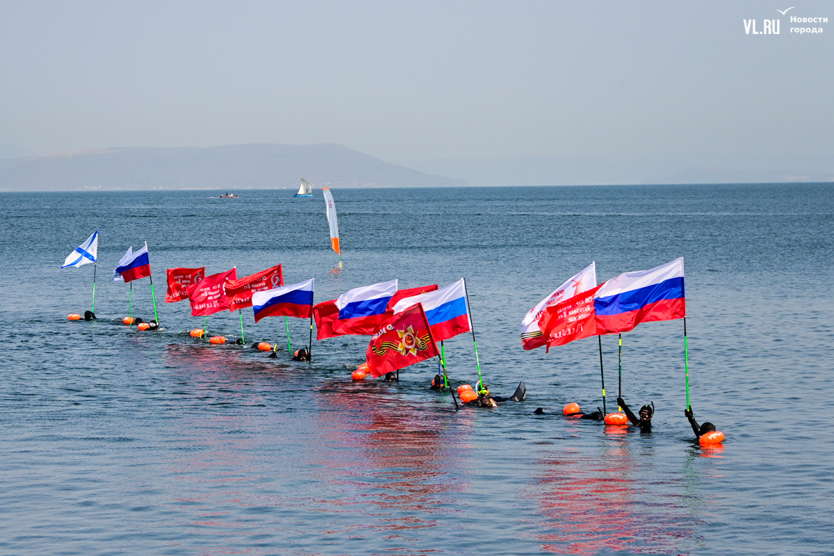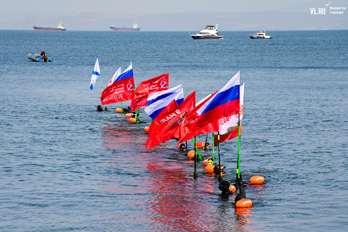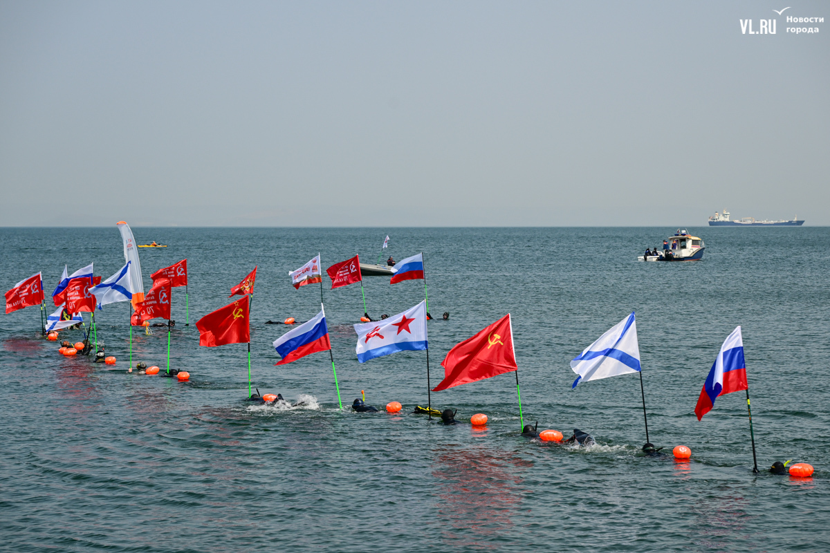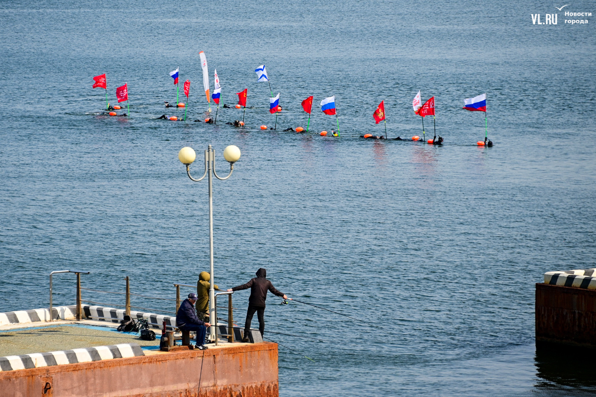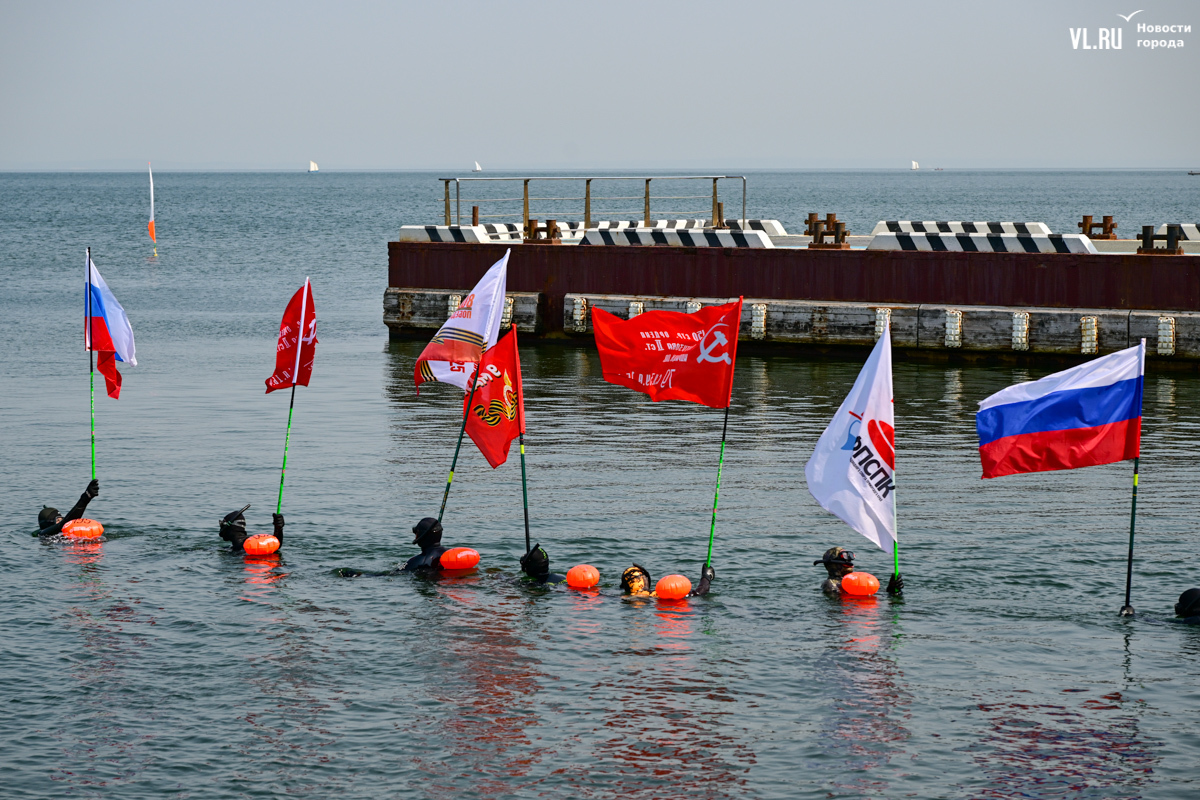 «Собралось 30 пловцов. Мы проводим этот заплыв в 10-й раз. В 2015 году был первый «Победный заплыв», это превратилось в хорошую традицию – у нас плавают и представители старшего поколения, рождённые в Советском Союзе и имеющие ближайших родственников, участвовавших в Великой Отечественной войне. Для них это символично – проплыть с флагом времён Великой Отечественной войны эту дистанцию и передать таким образом память о своих предках, победивших фашизм», – рассказал один из организаторов, президент Федерации подводного спорта Приморского края Дмитрий Анашкин.