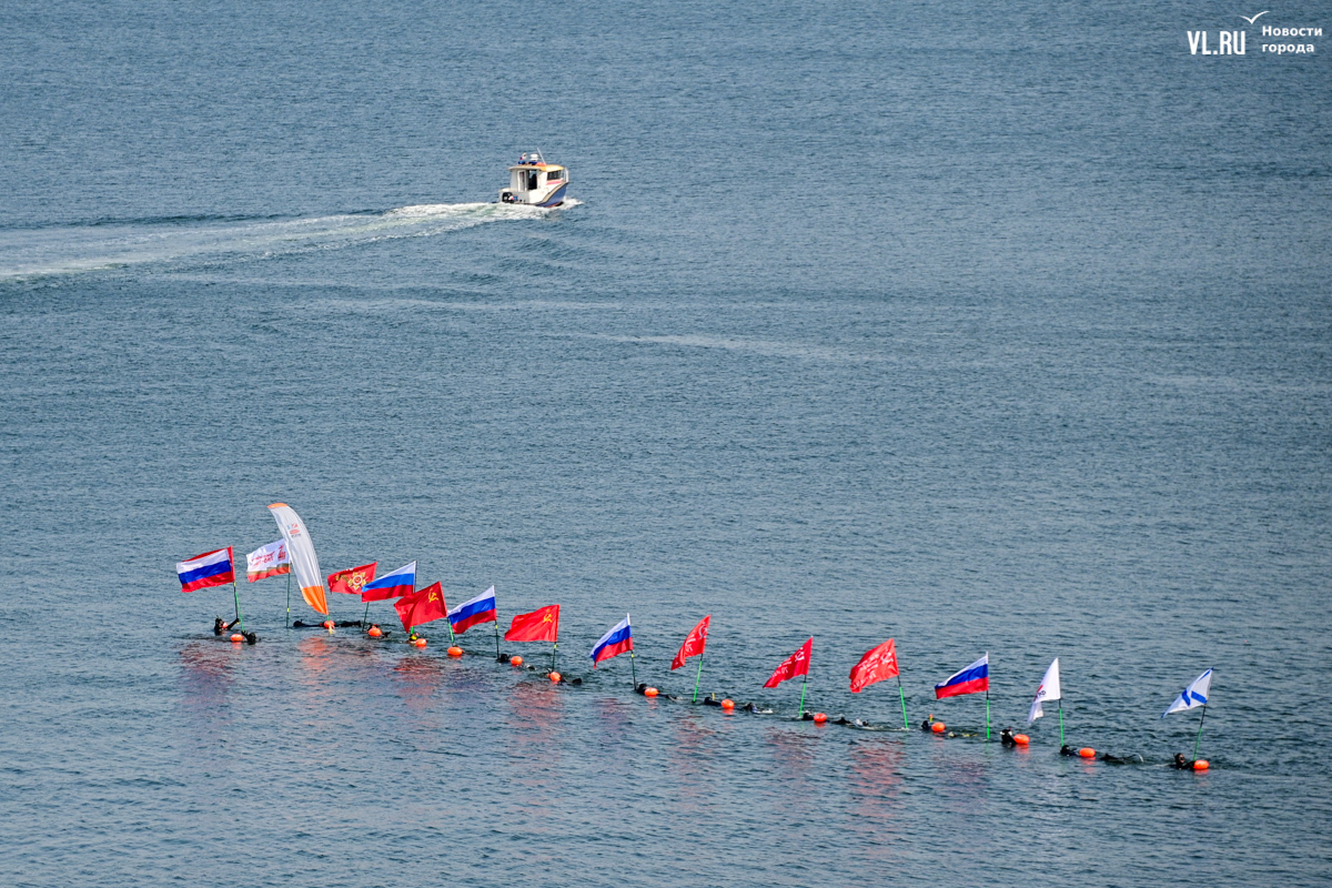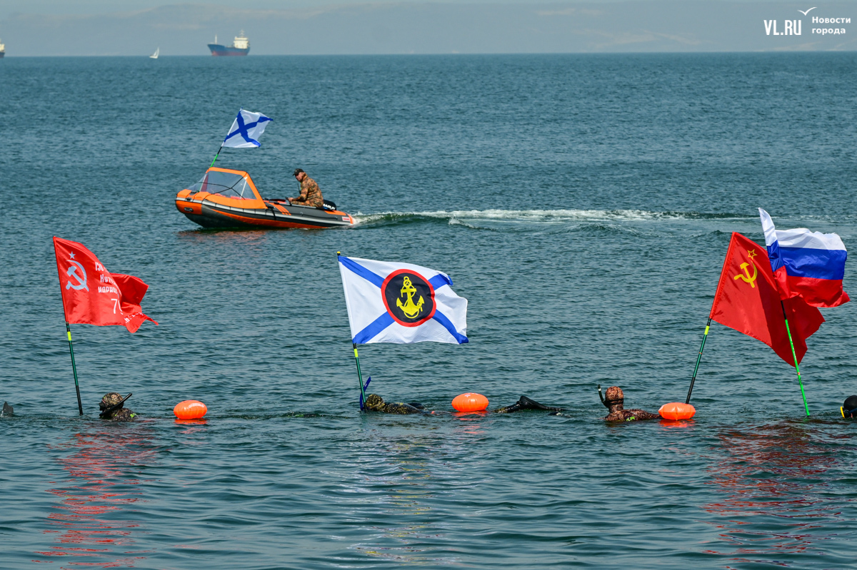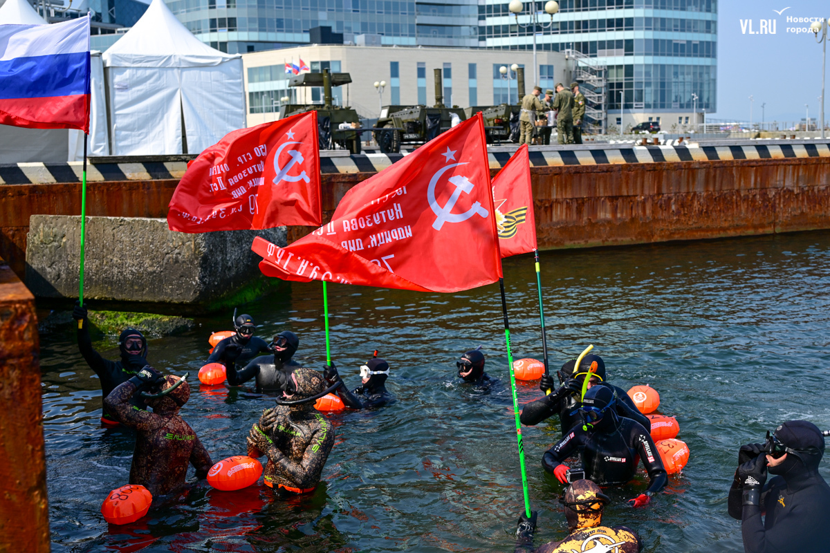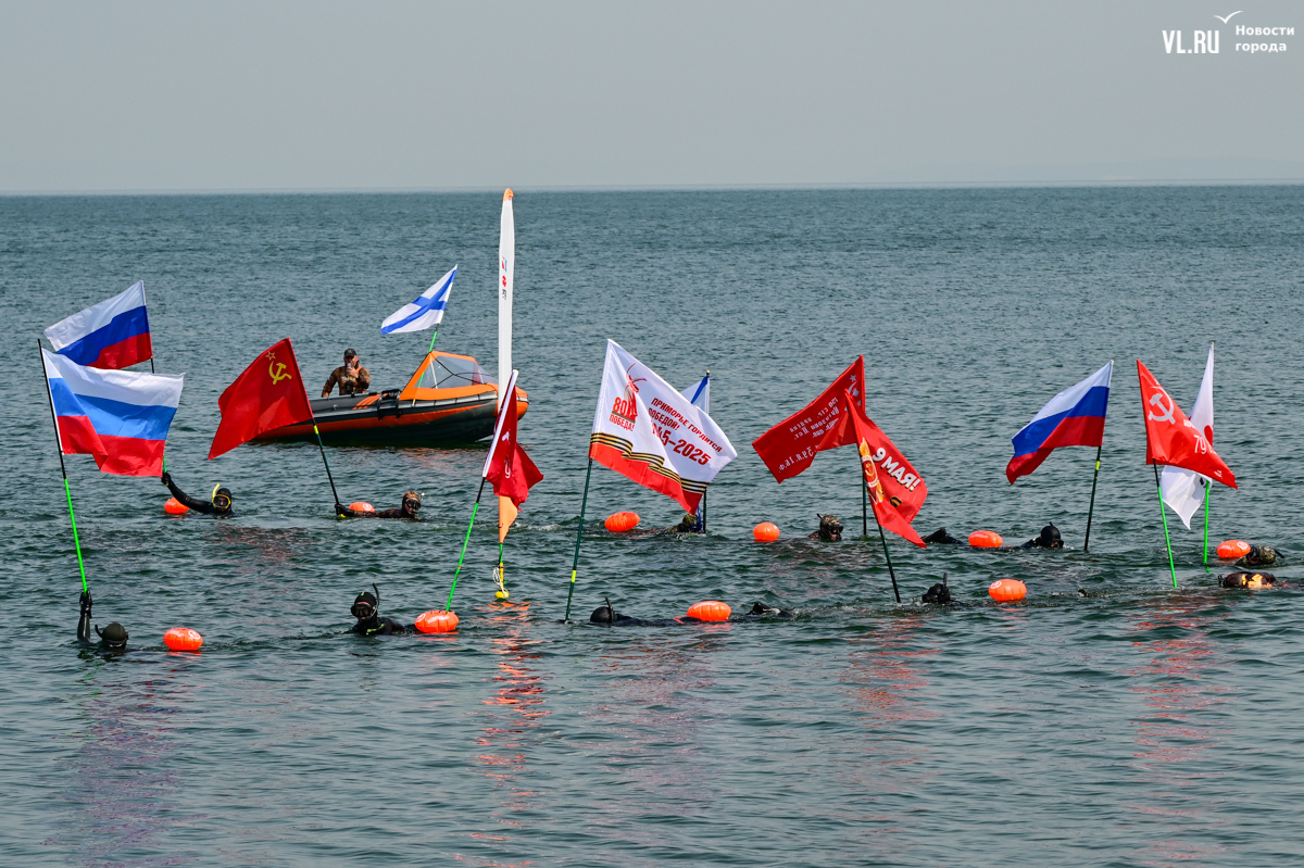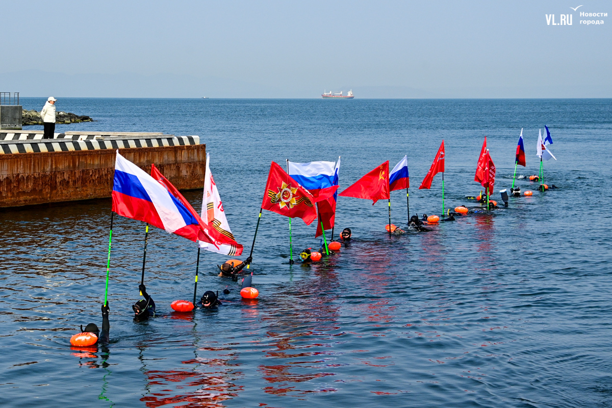 «Собралось 30 пловцов. Мы проводим этот заплыв в 10-й раз. В 2015 году был первый «Победный заплыв», это превратилось в хорошую традицию – у нас плавают и представители старшего поколения, рождённые в Советском Союзе и имеющие ближайших родственников, участвовавших в Великой Отечественной войне. Для них это символично – проплыть с флагом времён Великой Отечественной войны эту дистанцию и передать таким образом память о своих предках, победивших фашизм», – рассказал один из организаторов, президент Федерации подводного спорта Приморского края Дмитрий Анашкин.