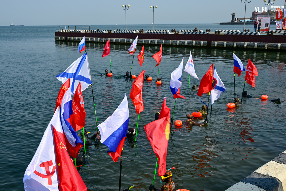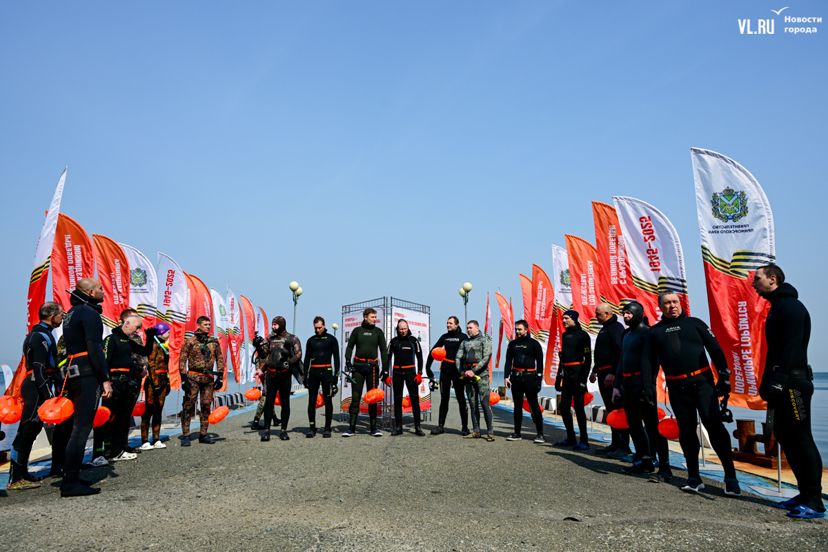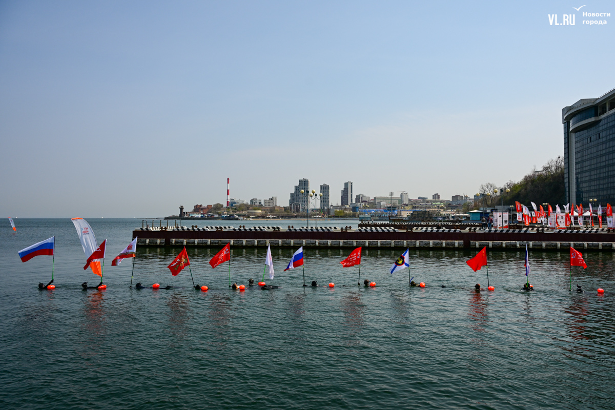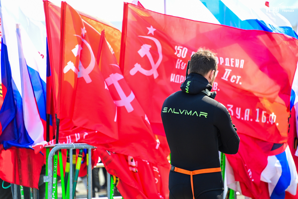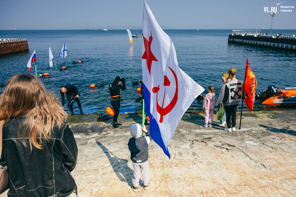 «Собралось 30 пловцов. Мы проводим этот заплыв в 10-й раз. В 2015 году был первый «Победный заплыв», это превратилось в хорошую традицию – у нас плавают и представители старшего поколения, рождённые в Советском Союзе и имеющие ближайших родственников, участвовавших в Великой Отечественной войне. Для них это символично – проплыть с флагом времён Великой Отечественной войны эту дистанцию и передать таким образом память о своих предках, победивших фашизм», – рассказал один из организаторов, президент Федерации подводного спорта Приморского края Дмитрий Анашкин.