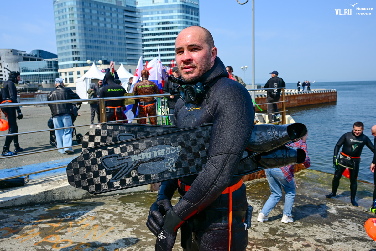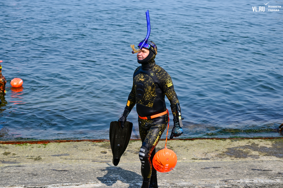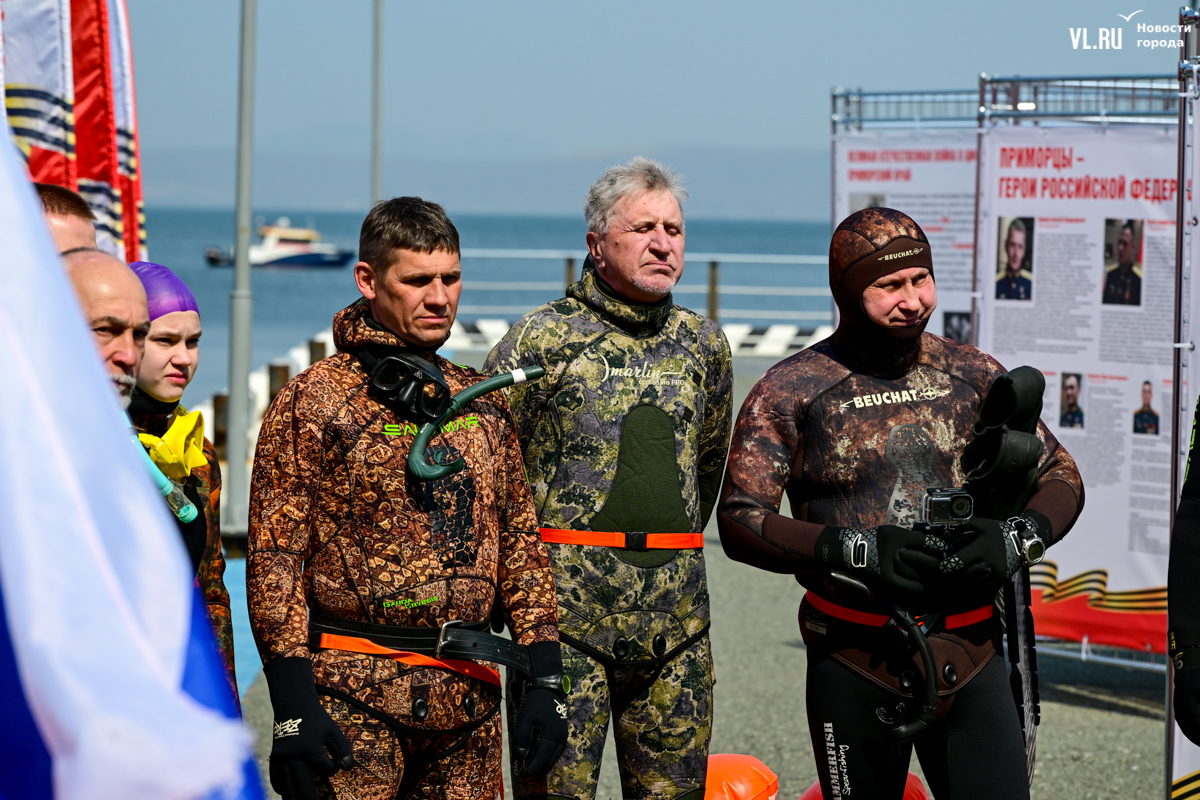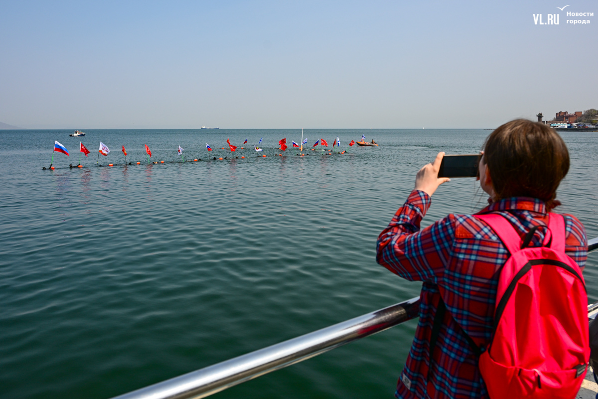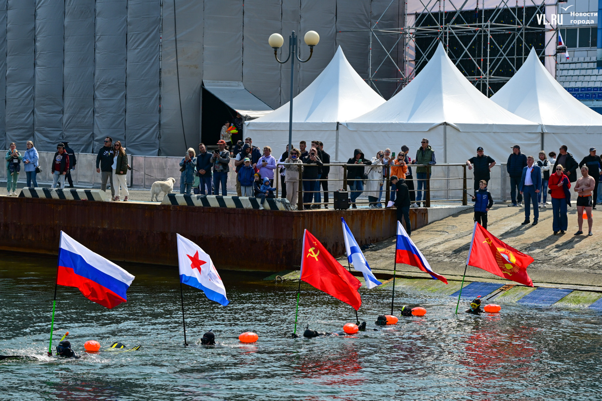 «Собралось 30 пловцов. Мы проводим этот заплыв в 10-й раз. В 2015 году был первый «Победный заплыв», это превратилось в хорошую традицию – у нас плавают и представители старшего поколения, рождённые в Советском Союзе и имеющие ближайших родственников, участвовавших в Великой Отечественной войне. Для них это символично – проплыть с флагом времён Великой Отечественной войны эту дистанцию и передать таким образом память о своих предках, победивших фашизм», – рассказал один из организаторов, президент Федерации подводного спорта Приморского края Дмитрий Анашкин.