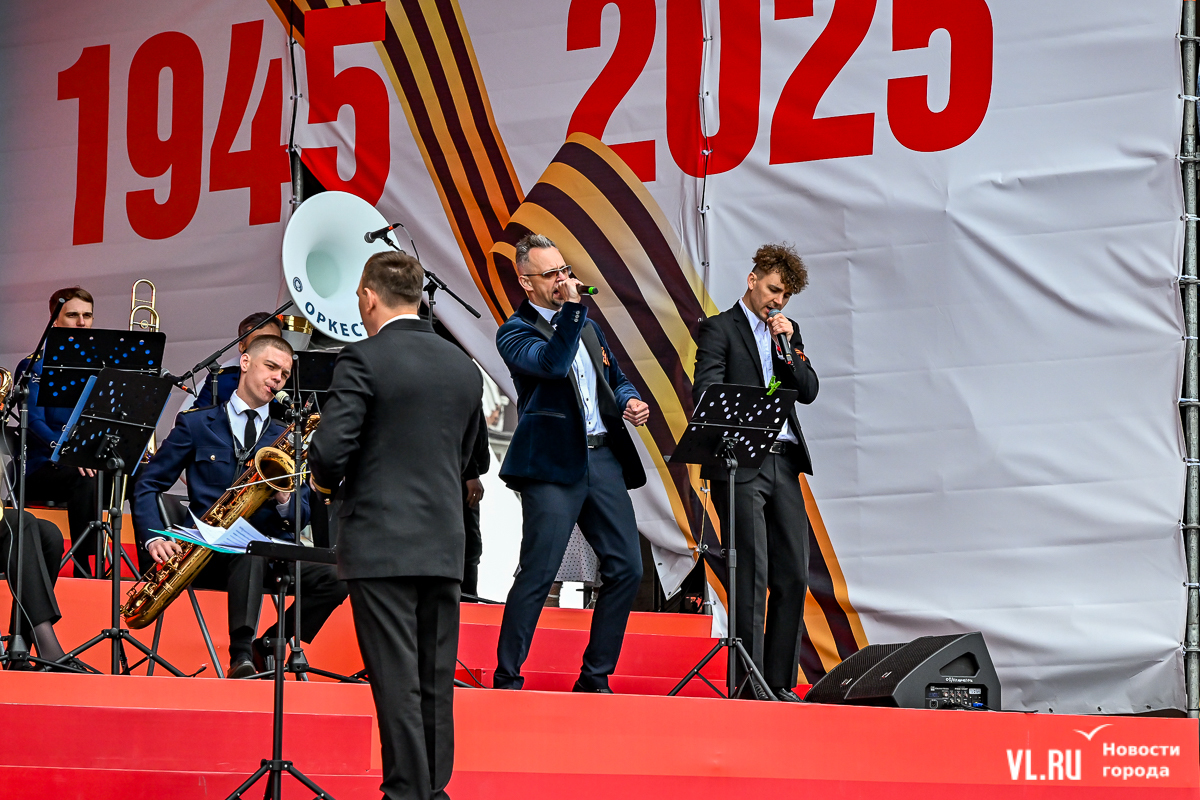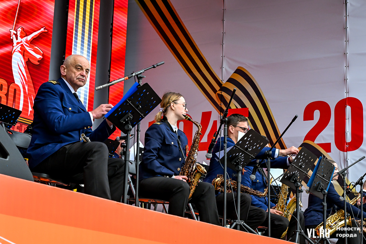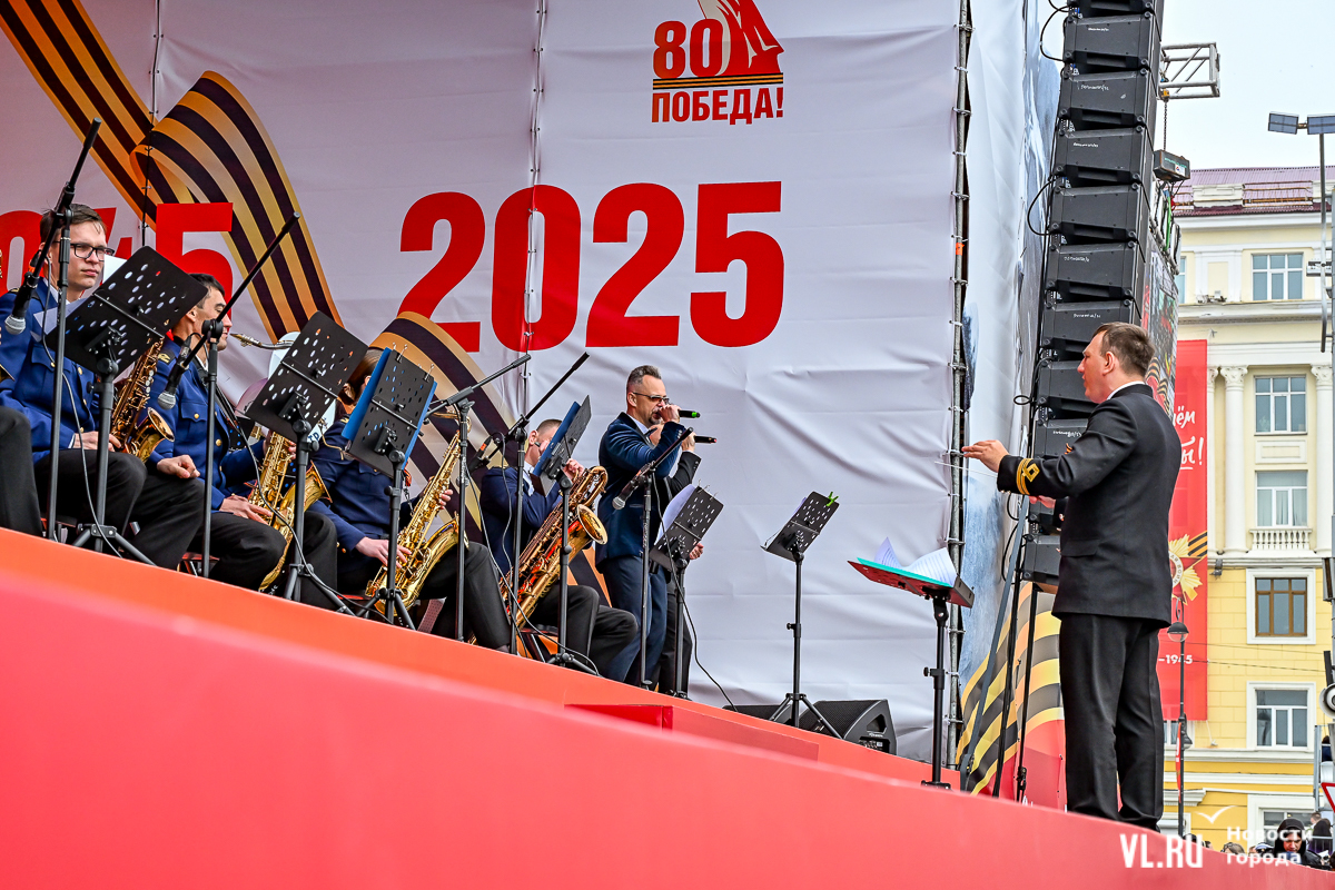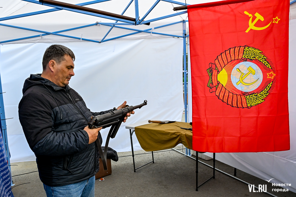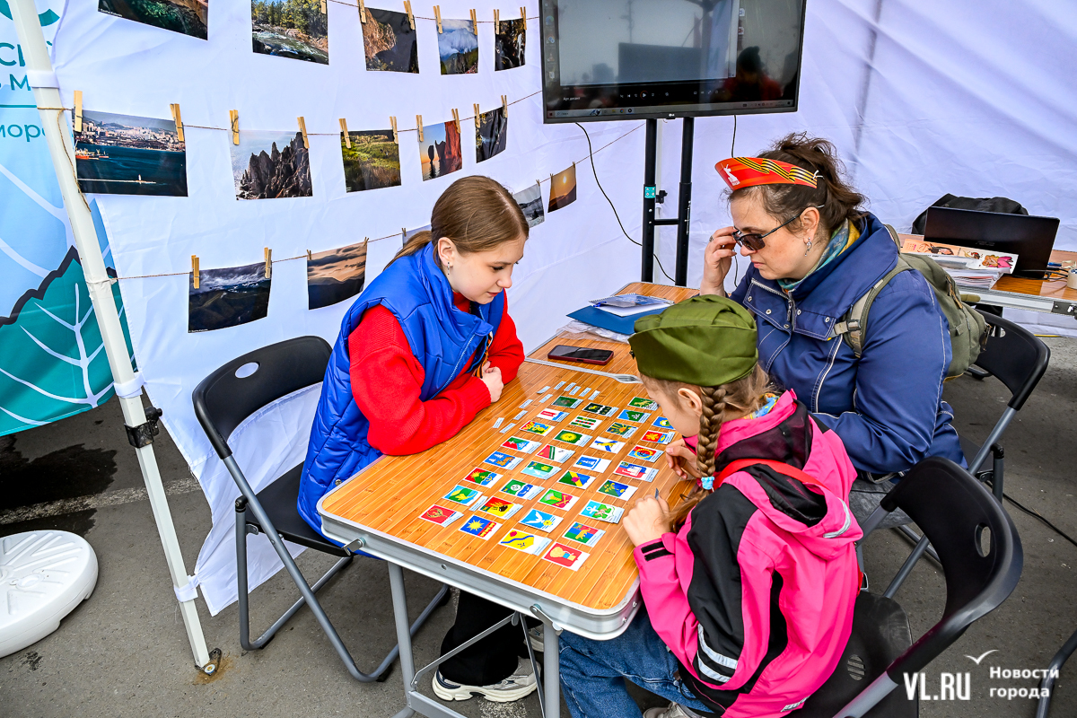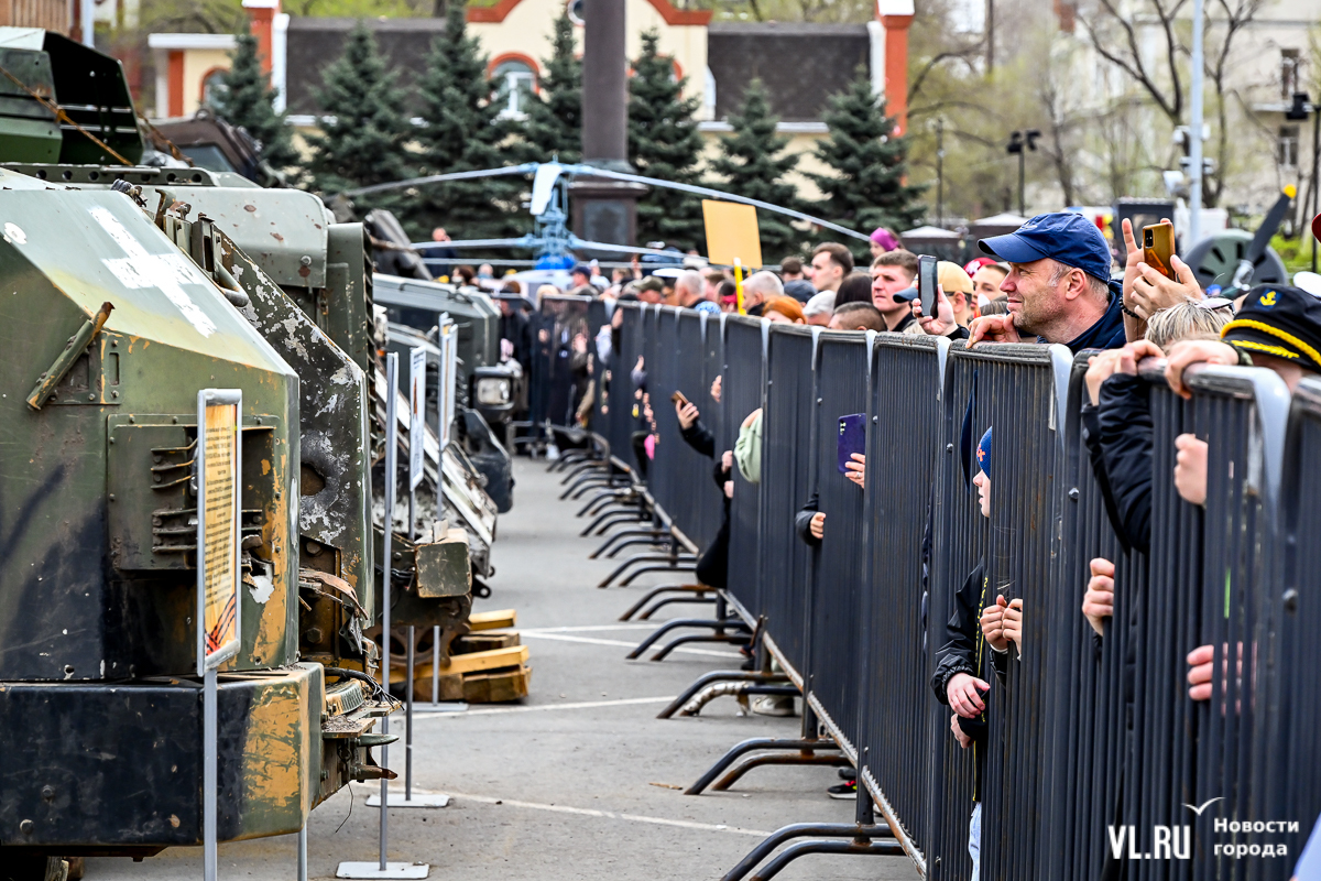 Во Владивостоке празднуют 9 Мая на центральной площади города, которую в этом году подготовили действительно масштабно и интересно. Люди начали заполнять её сразу после парада, выстраиваясь в очереди к разным интерактивным зонам: от настольных игр до авиационной техники. Среди тематических фотозон особенно выделяются парящие в небе белые журавли. А самая длинная очередь выстроилась к бесплатной солдатской каше. Но если лень стоять, можно купить её за 300 рублей.