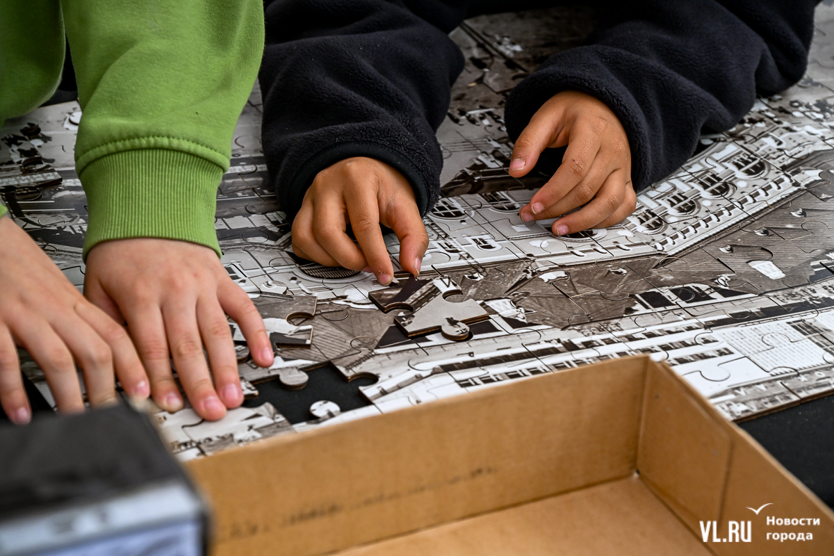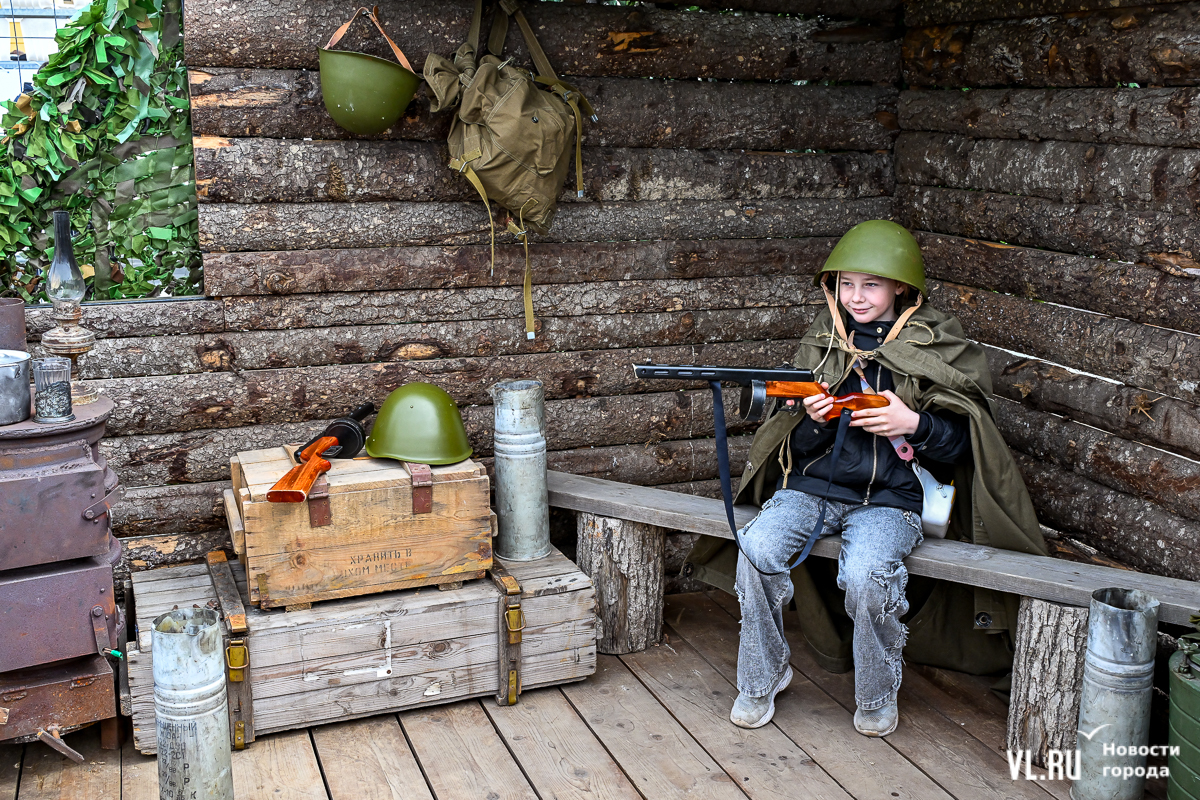 Стоит отметить шатёр с прессой военных лет. На стенах висят копии газет того времени, которые датируются 1941-1945 годами. В них рассказывается о том, когда и где началась война, что именно происходит на фронте и как Приморский край помогал солдатам в Великую Отечественную. Но главные статьи, заголовки от которых были напечатаны жирными буквами, посвящены боям времён 1938 года на озере Хасан. Про них рассказывают и во время игры в настолку или при сборе пазлов.