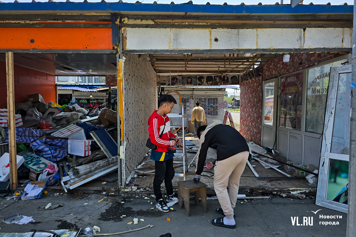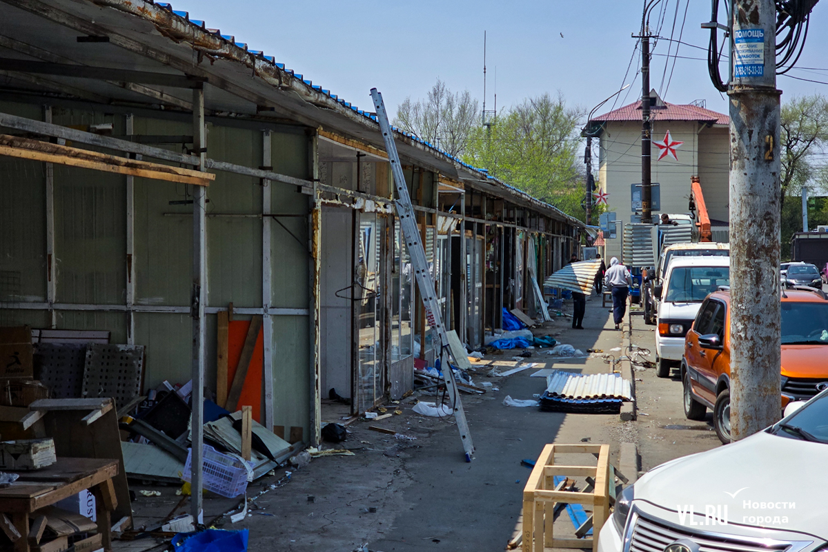Демонтажем торговых павильонов занимается сама администрация рынка – компания ООО «Дальтехресурс». Рабочие уже разобрали первую линию ларьков, которые находятся возле проезжей части. Не тронули пока только парикмахерскую «Наташа», которая стоит ближе к торговому центру «Дружба».