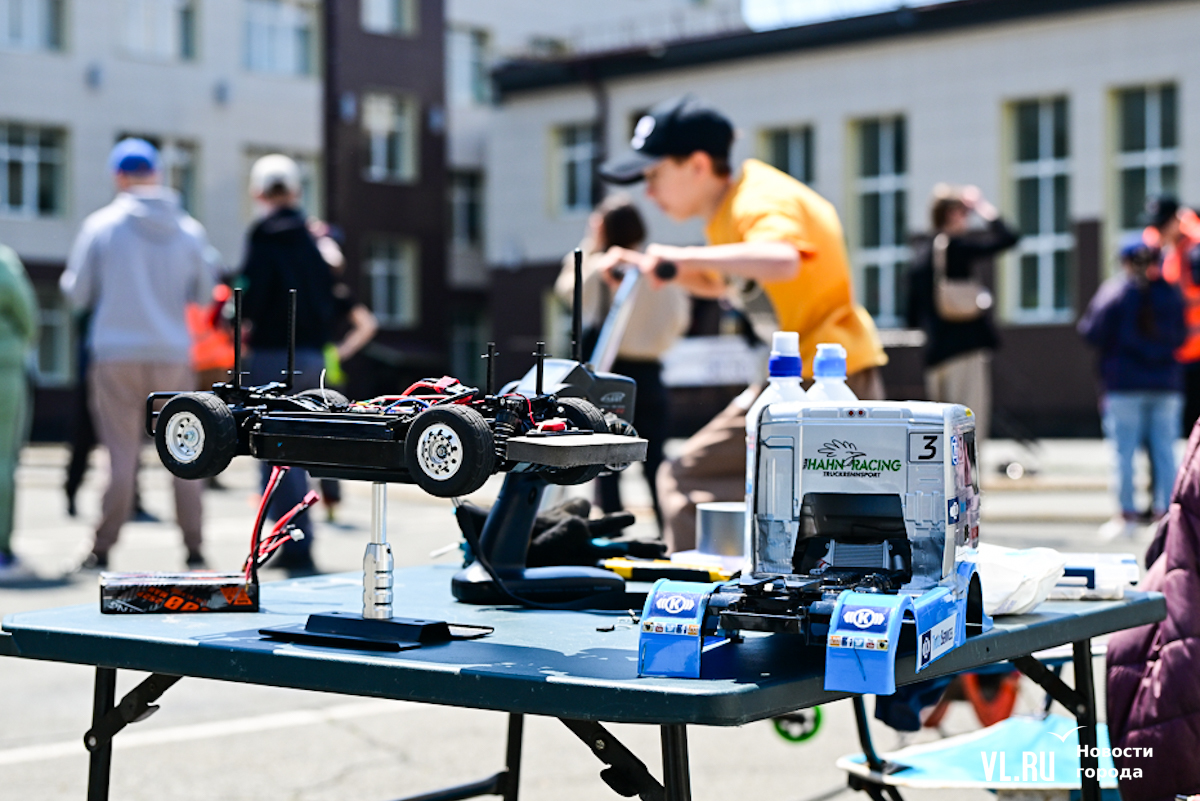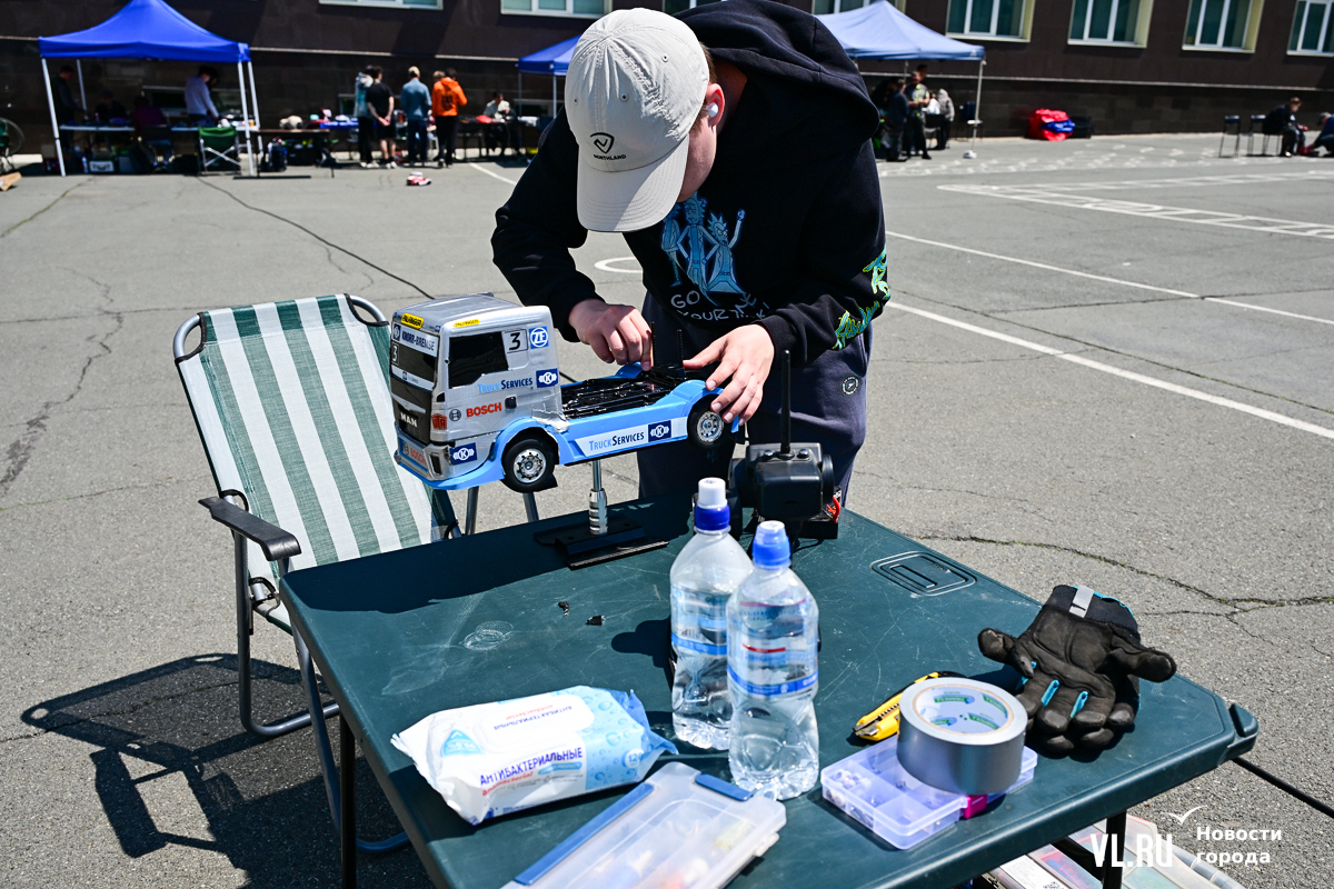 Временную трассу для автомоделей организовали на плацу МГУ им. адм. Г. И. Невельского, борты трека обозначили швартовыми канатами. По словам организаторов, одна из главных проблем автомодельного спорта во Владивостоке – отсутствие подходящих для тренировок и соревнований трасс, а также кружков для начинающих спортсменов.