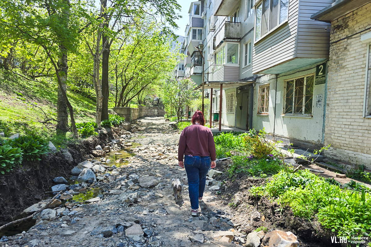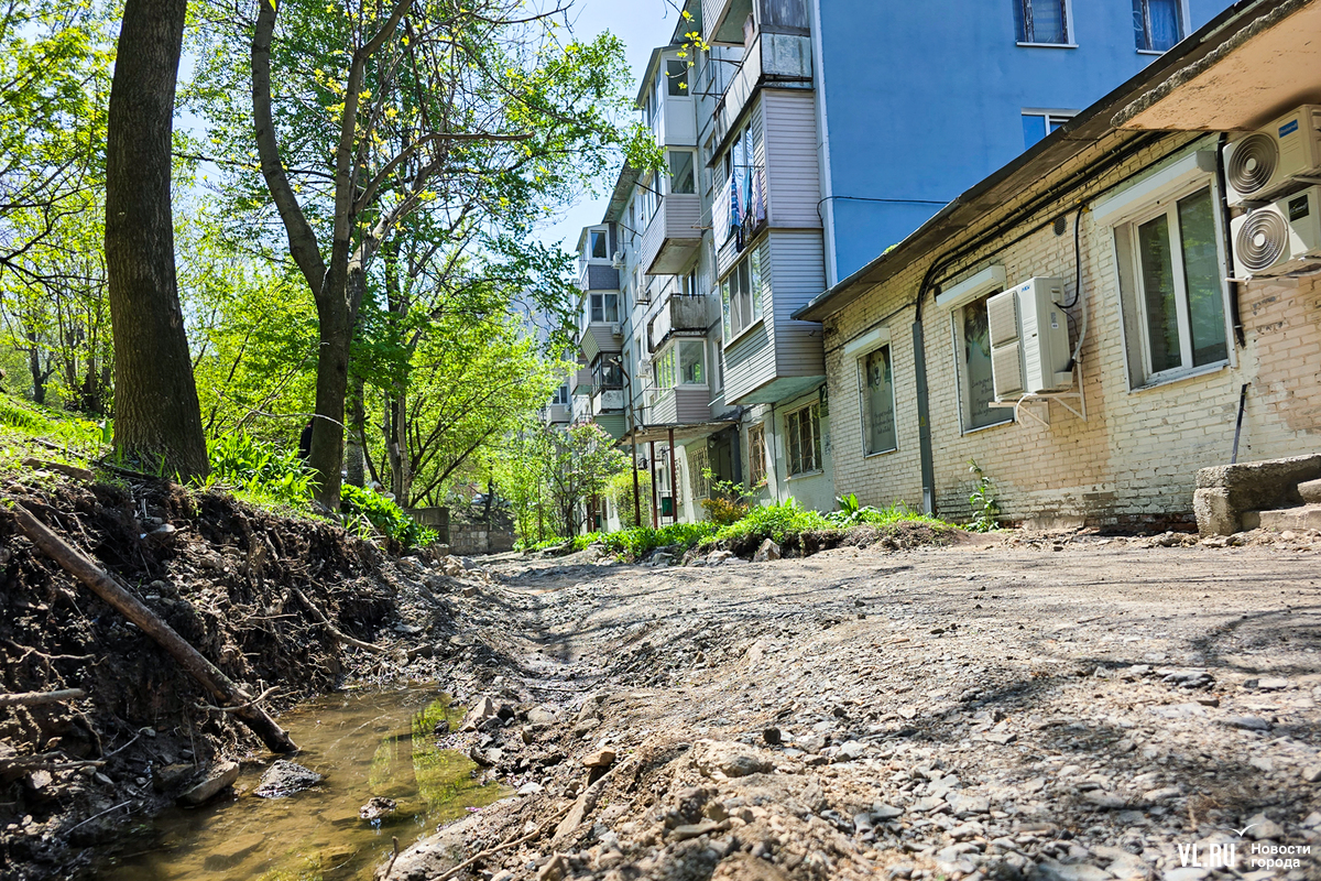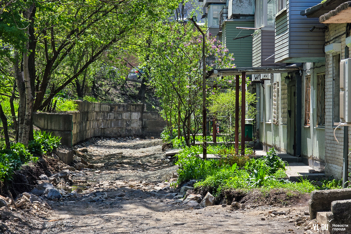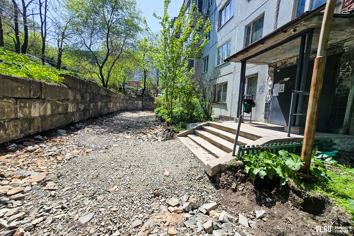 В апреле жителей пятиэтажки на Котельникова во Владивостоке обрадовали – начался долгожданный ремонт дороги перед их домом. Рабочие успели всё «разворошить», однако завершить ремонт в срок помешала найденная в коммуникациях течь. По словам жильцов, проблему так и не устранили, и всё это время им приходилось преодолевать разбитую и опасную дорогу. А сегодня напротив этого дома ещё и начали ремонтировать подпорную стену. И теперь, как говорят в мэрии, дорогу заасфальтируют, только когда закончат со стеной.