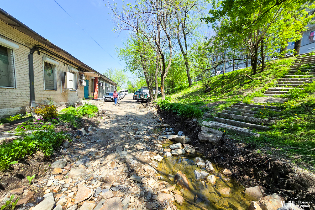 В управлении дорог администрации Владивостока корреспонденту рассказали, что на этом месте работает сетевая организация. Как только она закончит, на участок выйдут дорожники. Однако ни Примводоканал, ни ВПЭС, ни ДГК этим объектом не занимаются. Сами жители не замечали, чтобы кто-то что-то ремонтировал, лужи все на месте.