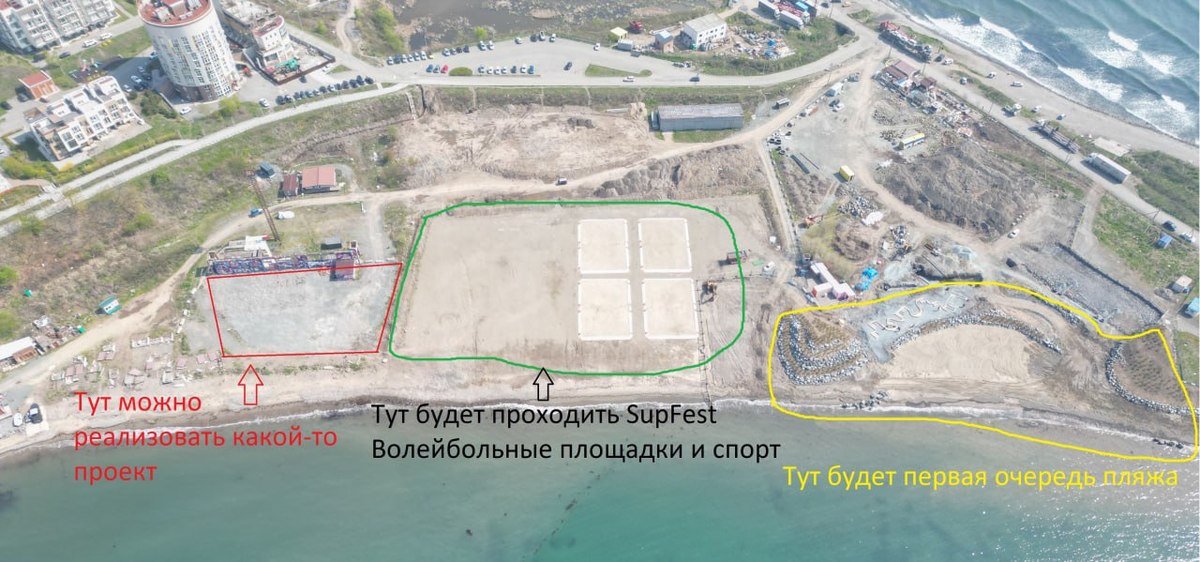 При этом значительная часть берега пока пустует. В связи с этим создатели пляжа обратились к бизнесменам Владивостока, которые хотели бы сделать что-то интересное на территории, чтобы берег уже сейчас жил в новом, пляжном формате.