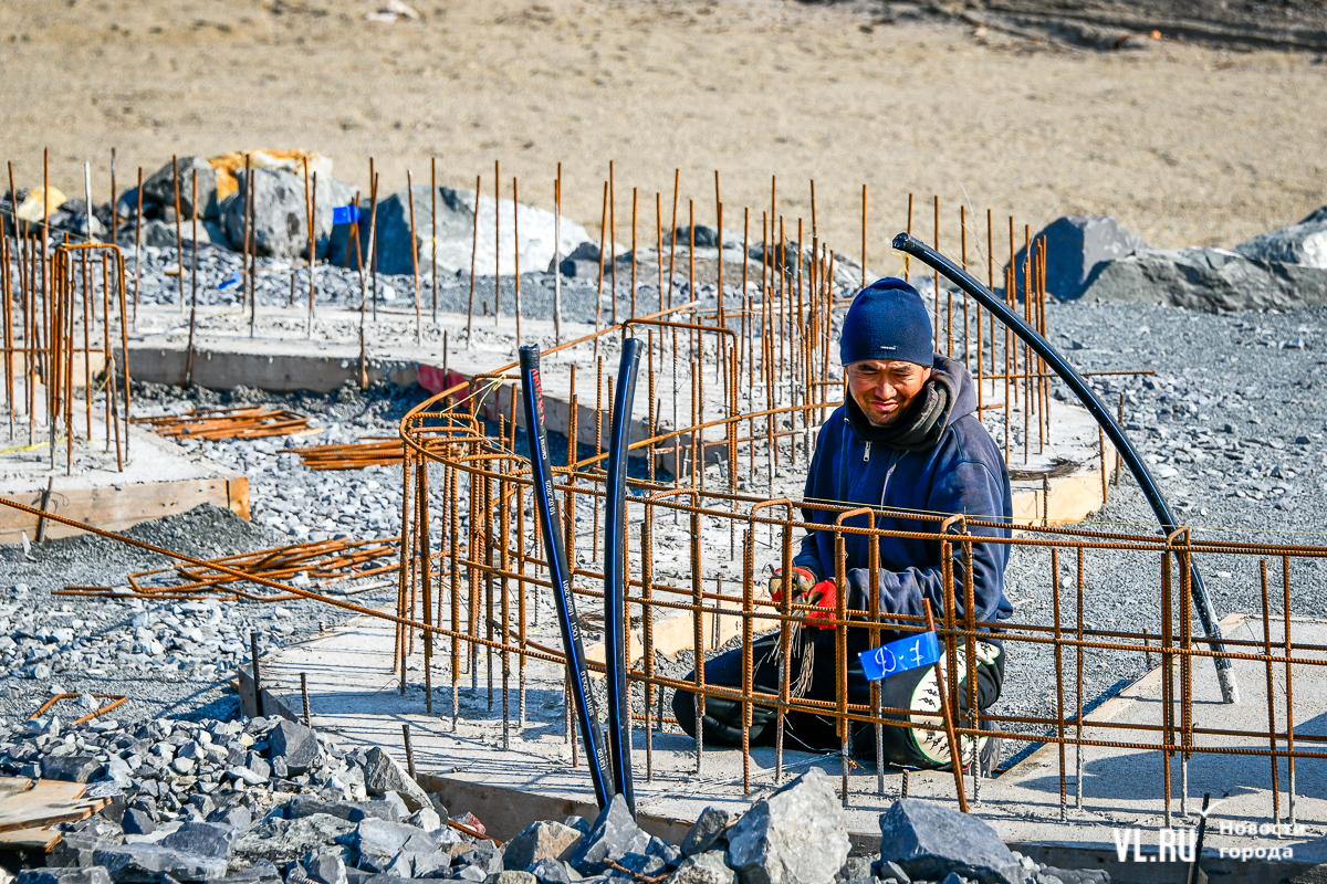 Корреспондент Новостей VL.ru застал на берегу самосвалы с песком. Естественный берег здесь каменистый и не самый приятный для отдыха. Рядом рабочие заливают бетонную конструкцию, вытянутую вдоль берега. Пока видно только основание, но в перспективе здесь появятся кабинки для переодевания, душевые элементы (холодная вода для опреснения после воды морской), а также построят пешеходные дорожки.