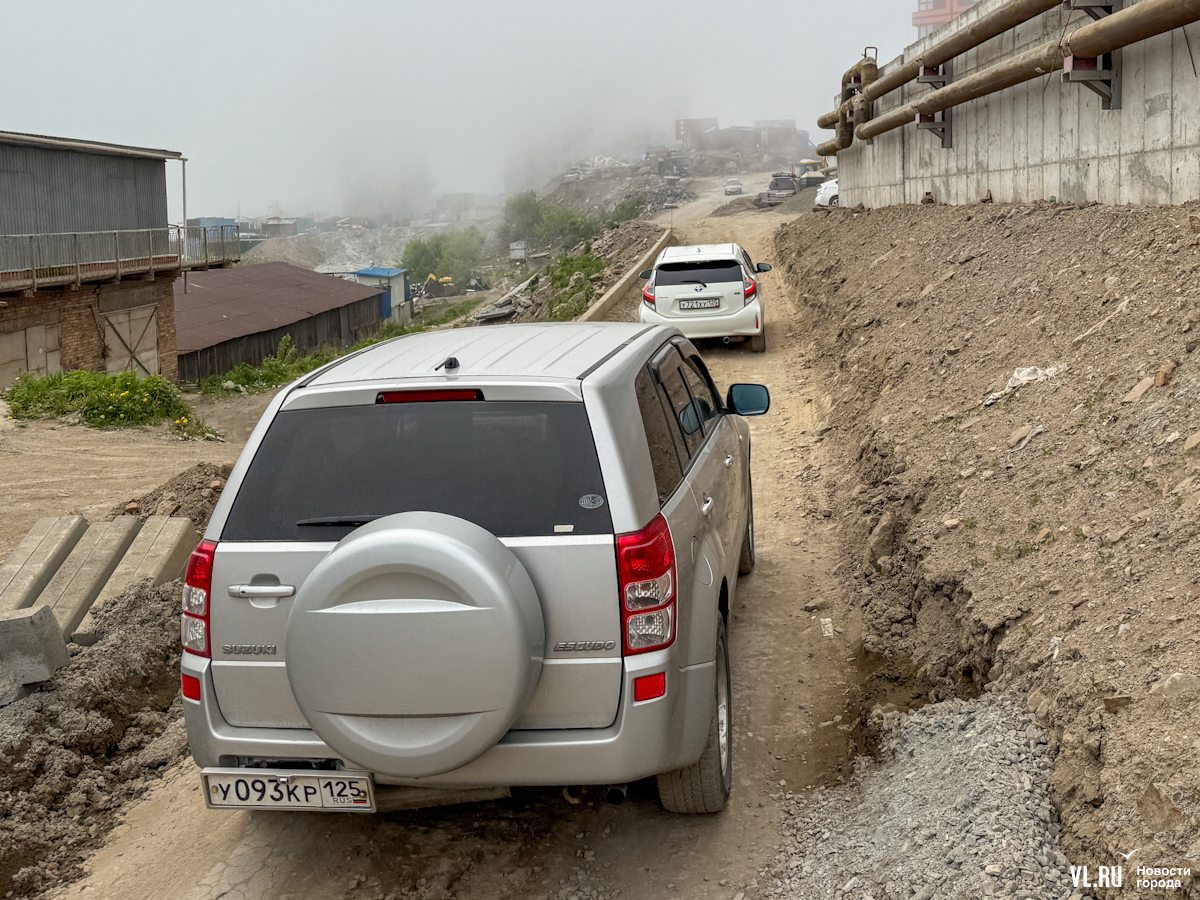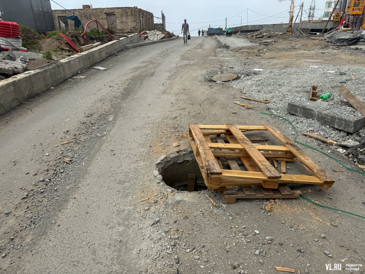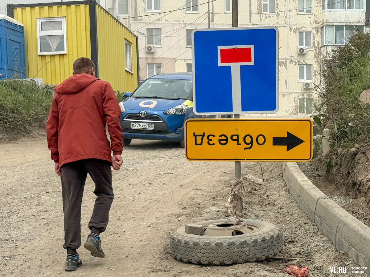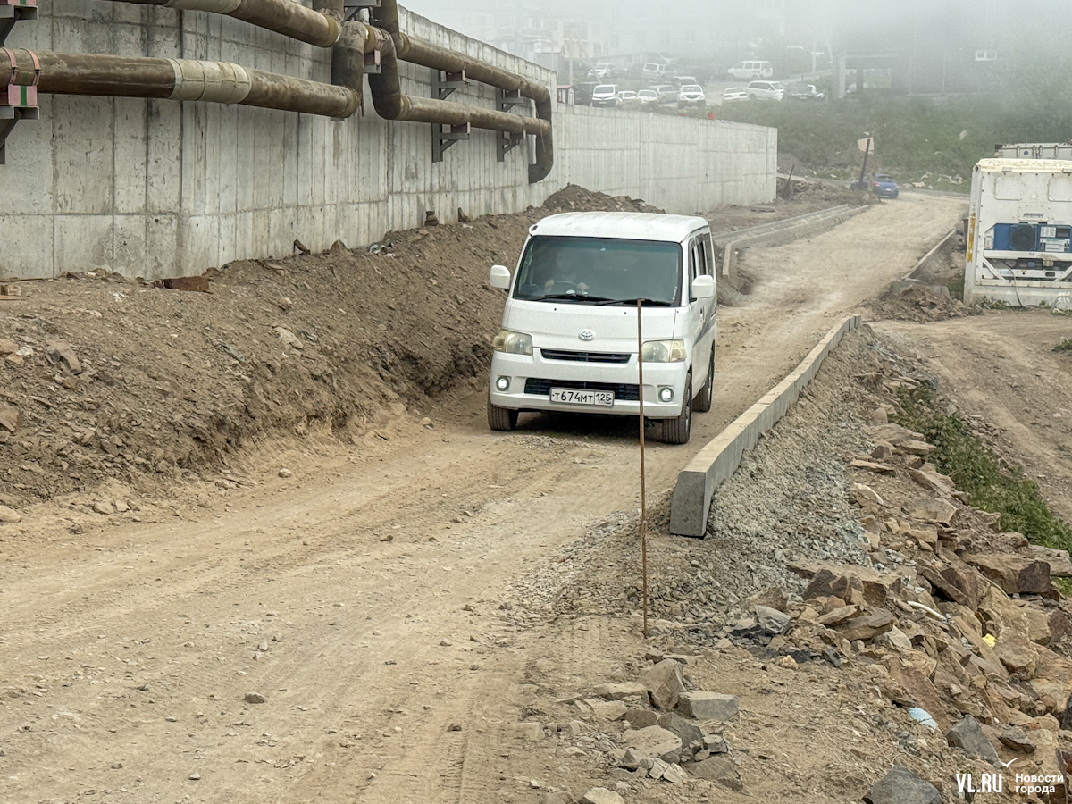 Корреспондент Новостей VL.ru проехался по новой дороге. Местами она действительно слишком узкая, чтобы на ней смогли разминуться две машины. В некоторых местах вдоль подпорной стены навален песок, сузив объездную до одной полосы, а где-то не закрыт люк, его прикрыли деревянными палетами, но дорога от этого свободнее не стала.