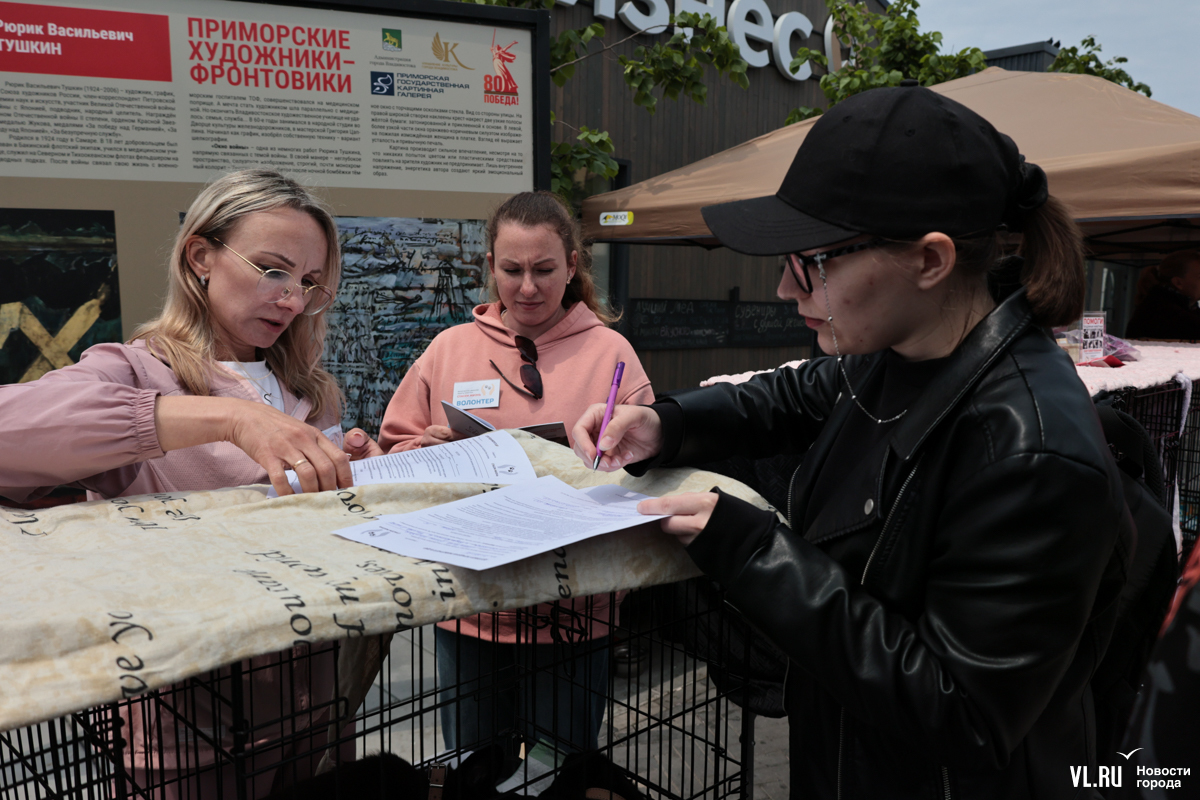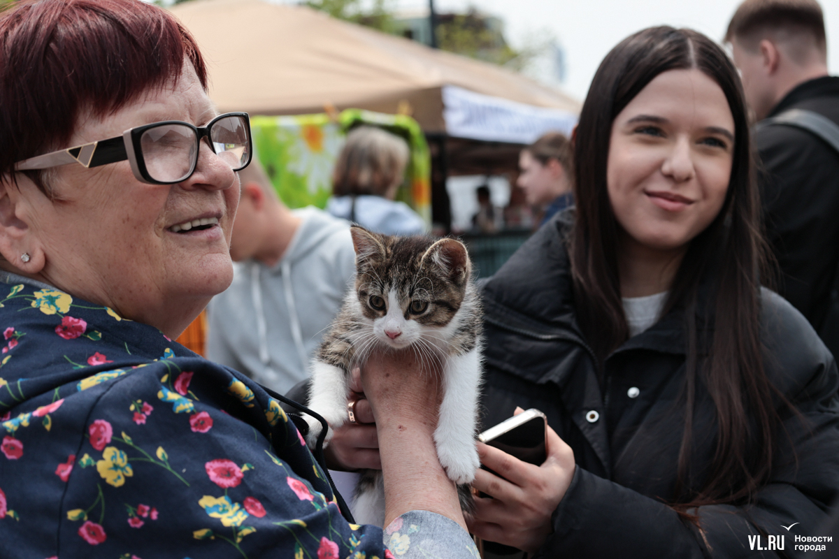 Около 100 пока ещё бездомных кошек и собак привезли на первую в этом году уличную выставку-раздачу хвостатых пушистиков. Мероприятие организовали в центре Владивостока в сквере Фокина. Животных полностью подготовили к переезду в новую семью. Обычно за один день на таких мероприятиях удаётся пристроить от 35 до 70 питомцев.