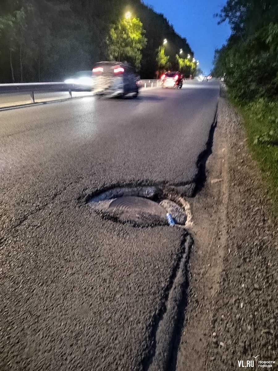 На улице Выселковой во Владивостоке появилось ещё одно опасное место. По правой полосе, если подниматься от Днепровской в сторону Рудневского моста, провалился люк. Издалека яма почти незаметная, но если в неё попасть, можно не только порвать шину, но и погнуть диск. Дорожники ранее обещали отремонтировать улицу в этом году, но без конкретных дат.