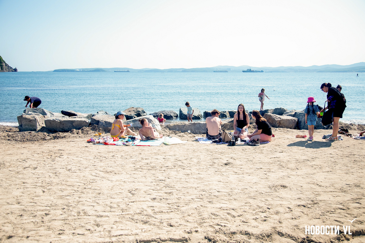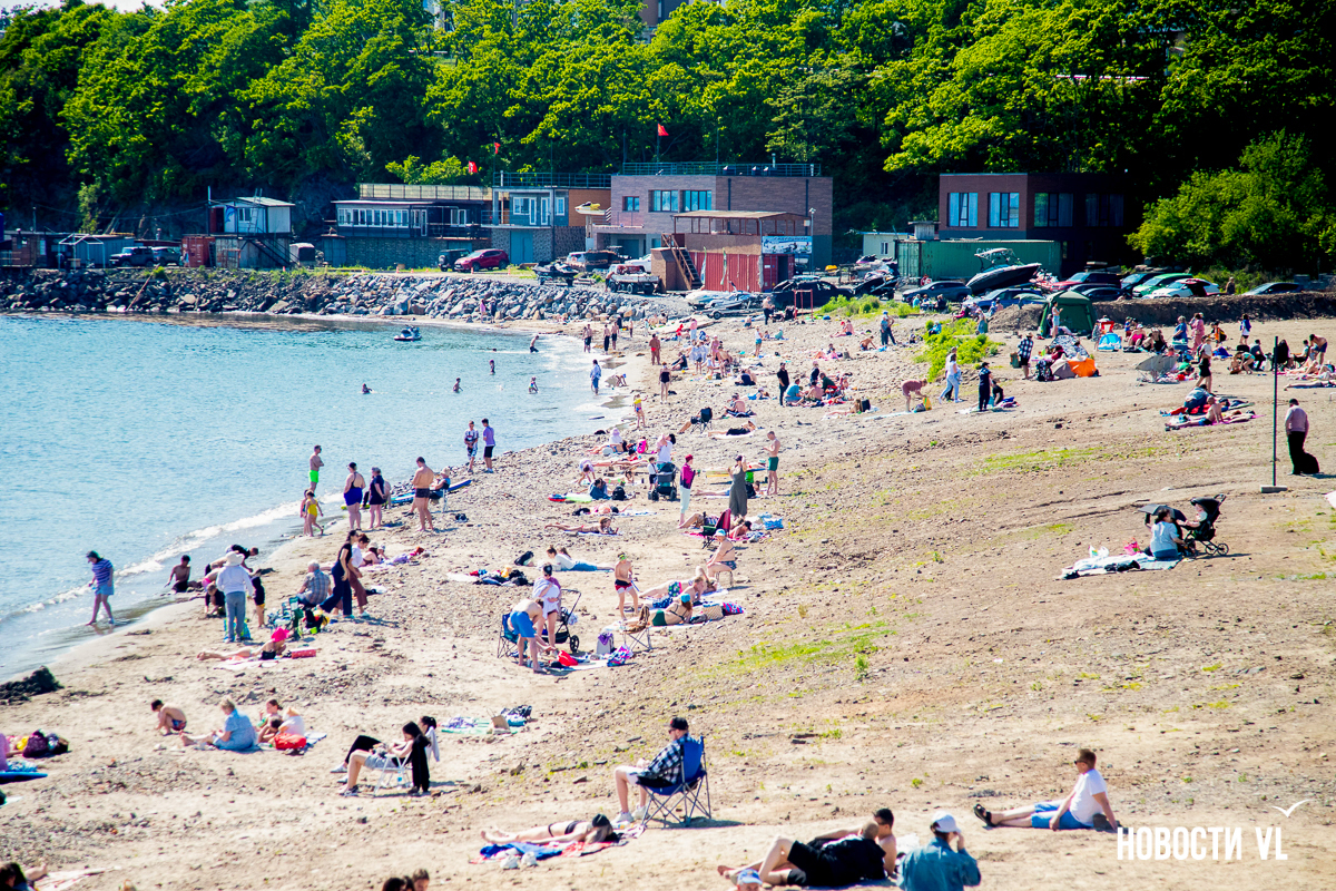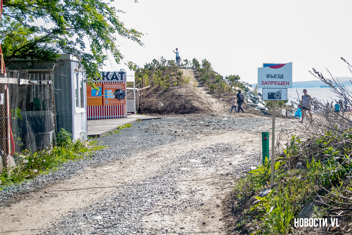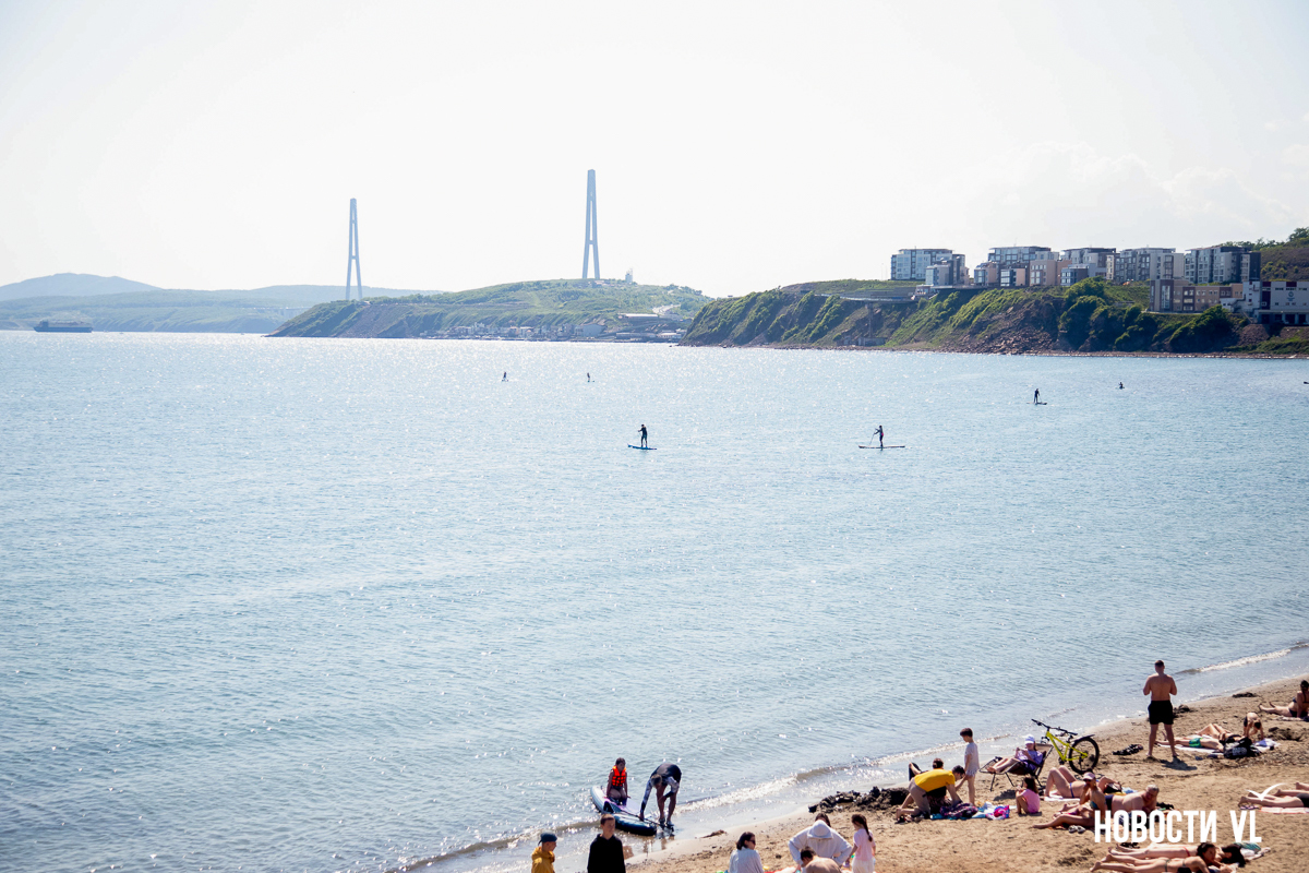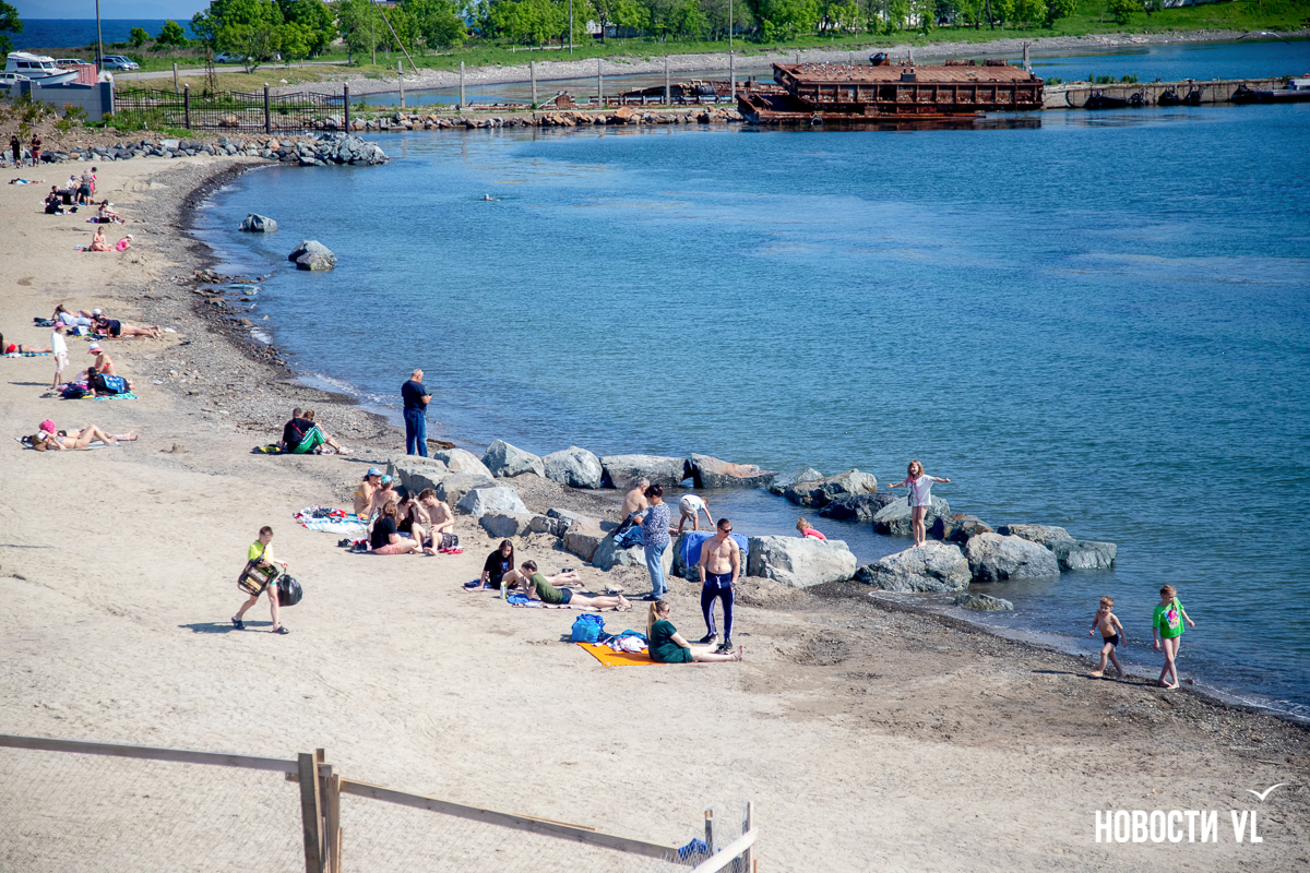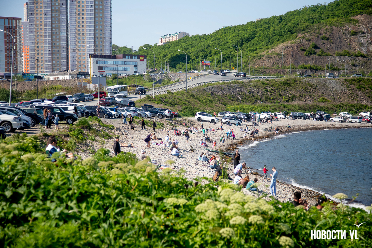 На берегу бухт Патрокл и Соболь АНО «Открывая море Владивостоку», ДНС и «Конкрит Джангл» продолжают возводить «лучший пляж России». Первую очередь пляжа, как и обещали, открыли к нынешнему купальному сезону. Работы здесь ещё не окончены – местами продолжают возводить «малые архитектурные формы», местами тропы остаются грунтовыми. Но отдыхать и купаться уже можно, и горожане как раз этим и занимаются – раскладывают пледы во всей прибрежной зоне и оглядывают обновлённые детали ещё не до конца завершённого благоустройства.
