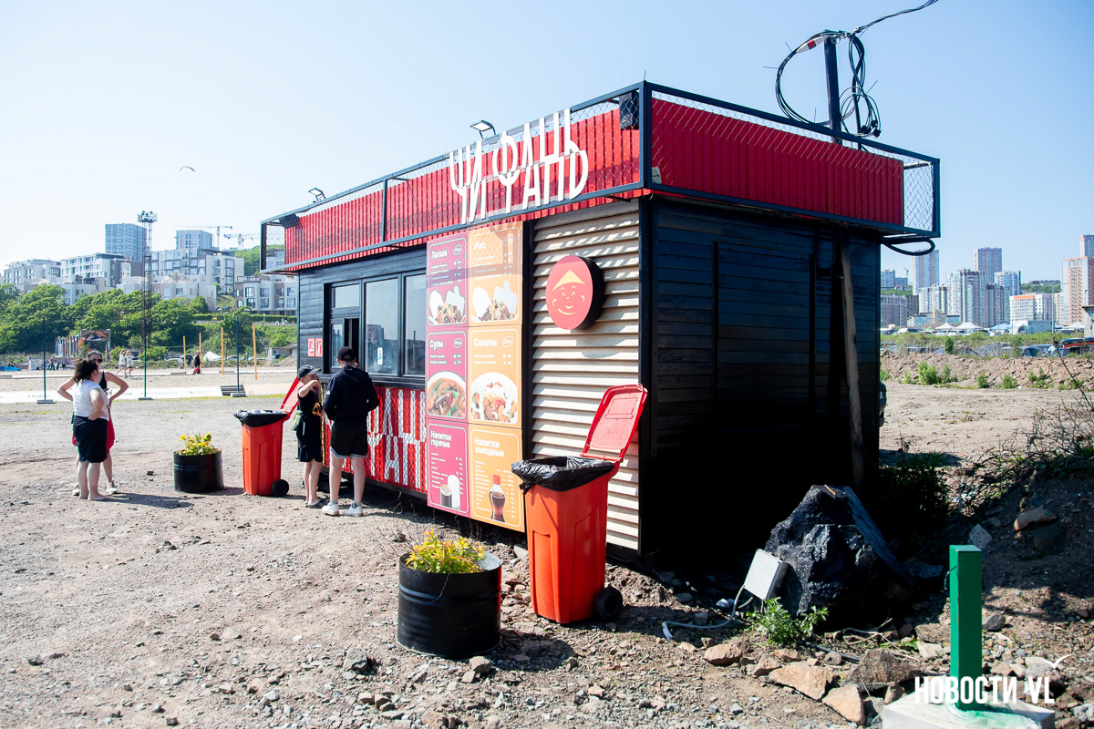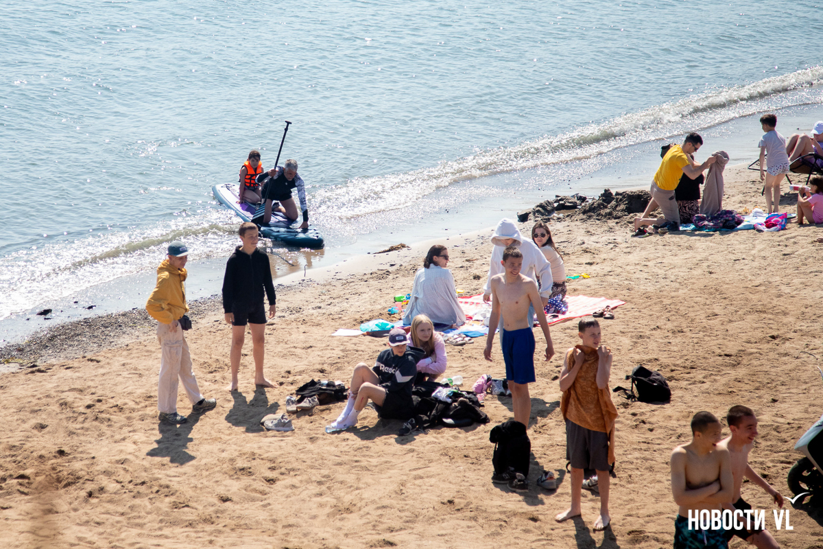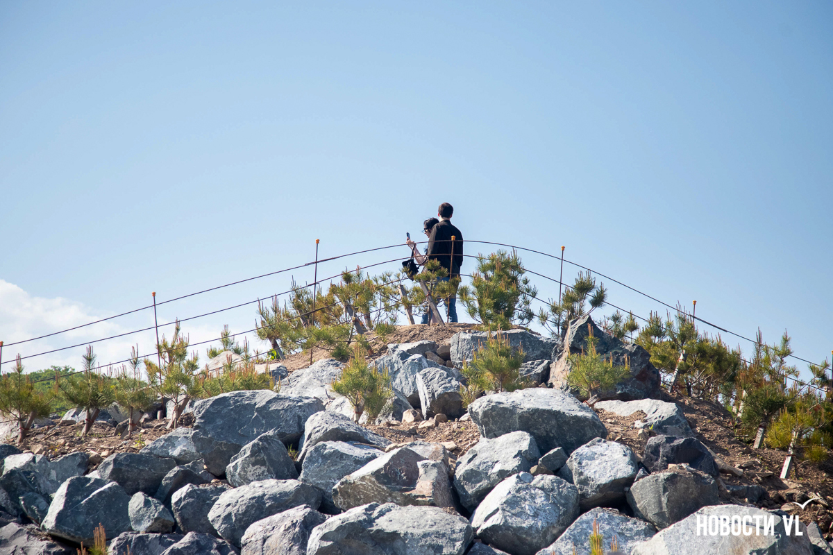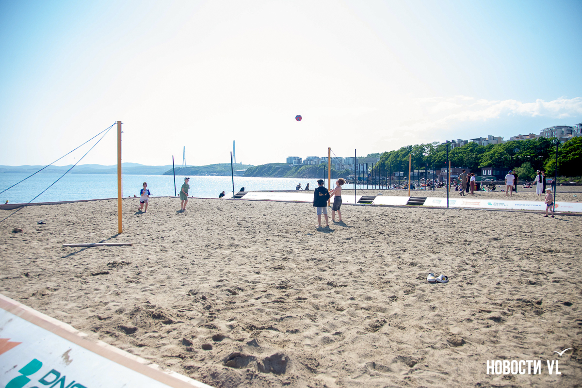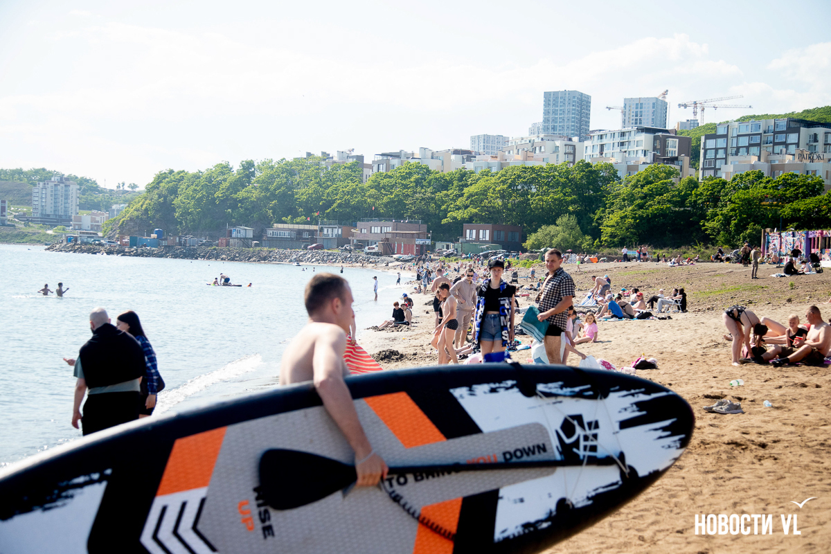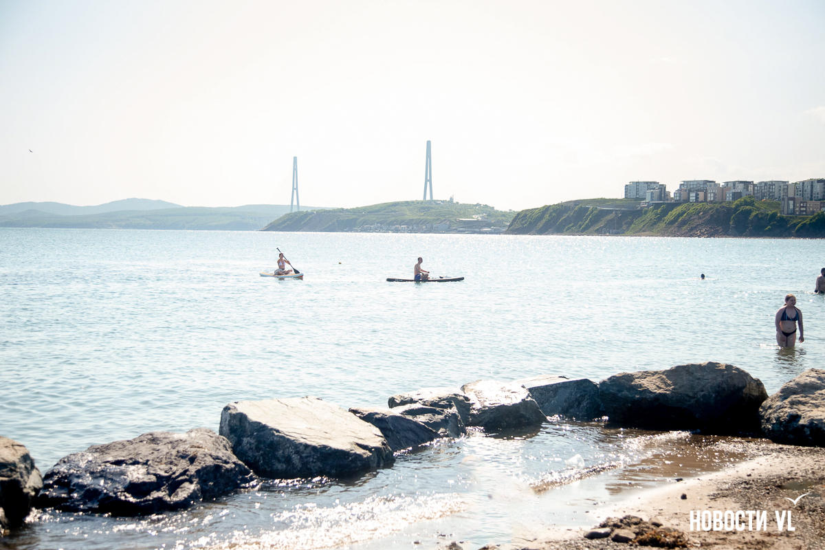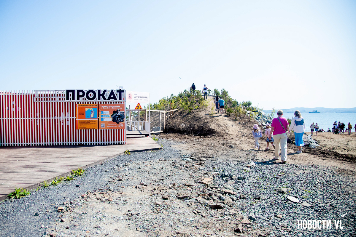 На берегу бухт Патрокл и Соболь АНО «Открывая море Владивостоку», ДНС и «Конкрит Джангл» продолжают возводить «лучший пляж России». Первую очередь пляжа, как и обещали, открыли к нынешнему купальному сезону. Работы здесь ещё не окончены – местами продолжают возводить «малые архитектурные формы», местами тропы остаются грунтовыми. Но отдыхать и купаться уже можно, и горожане как раз этим и занимаются – раскладывают пледы во всей прибрежной зоне и оглядывают обновлённые детали ещё не до конца завершённого благоустройства.